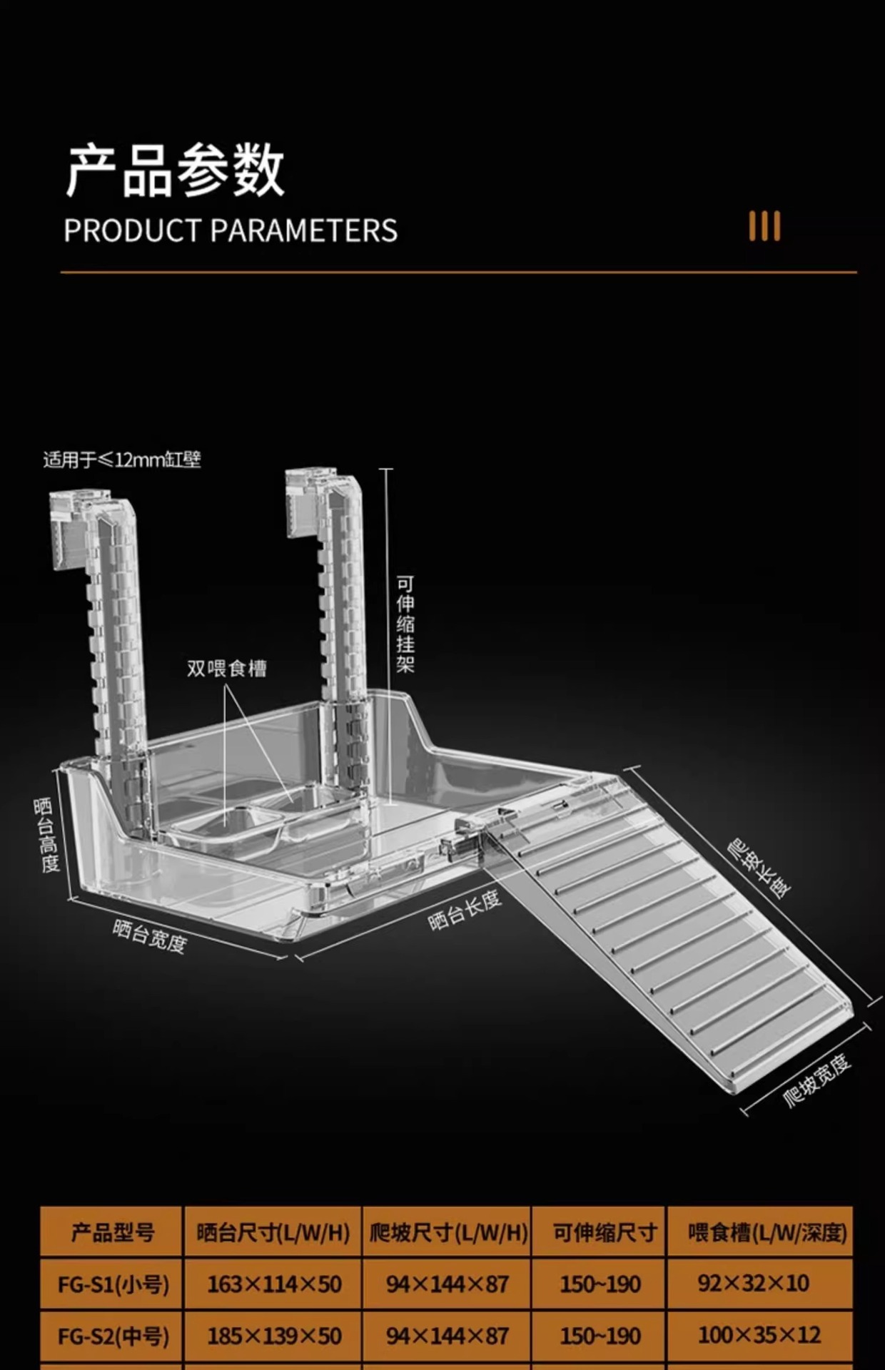 거북이 건조 테이블 등반 테이블 벽에 걸려있는 아크릴 건조 다시 테이블 높은 수위 물고기 거북이 탱크 나머지 테이블 등반 사다리 플로팅 테이블