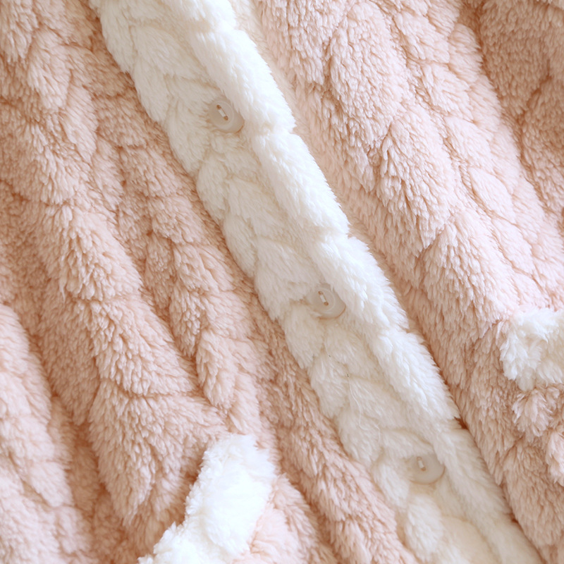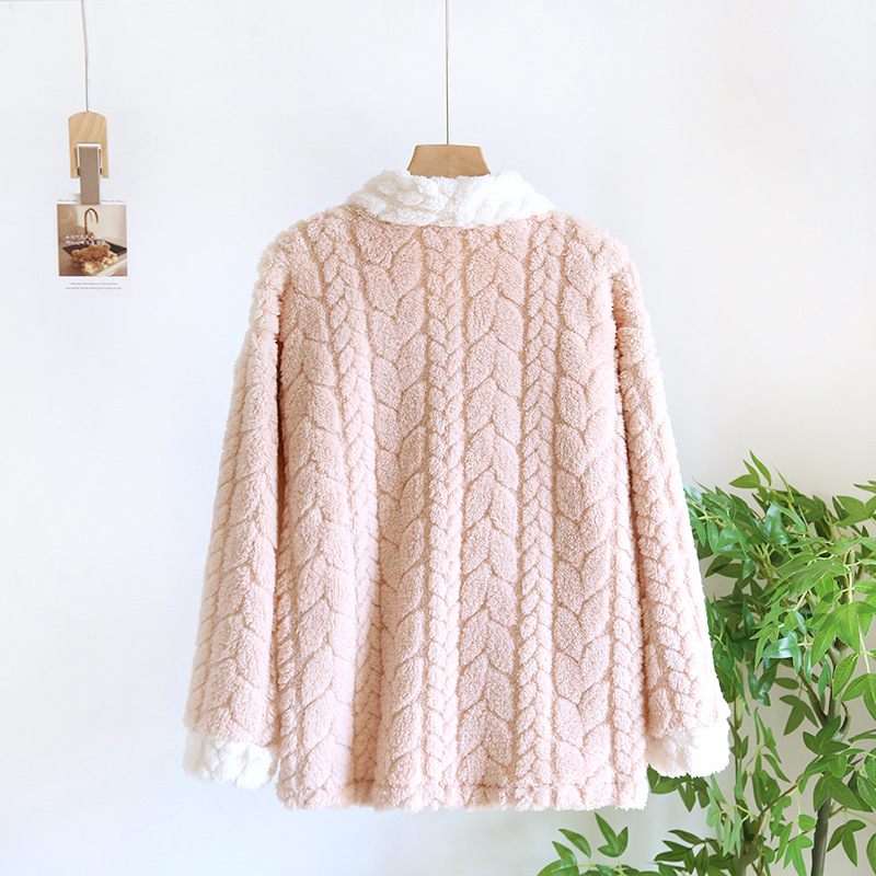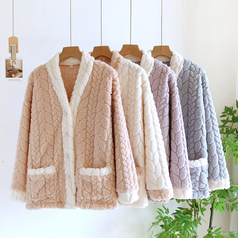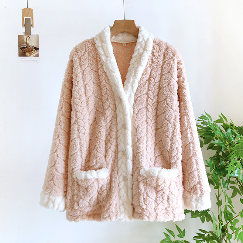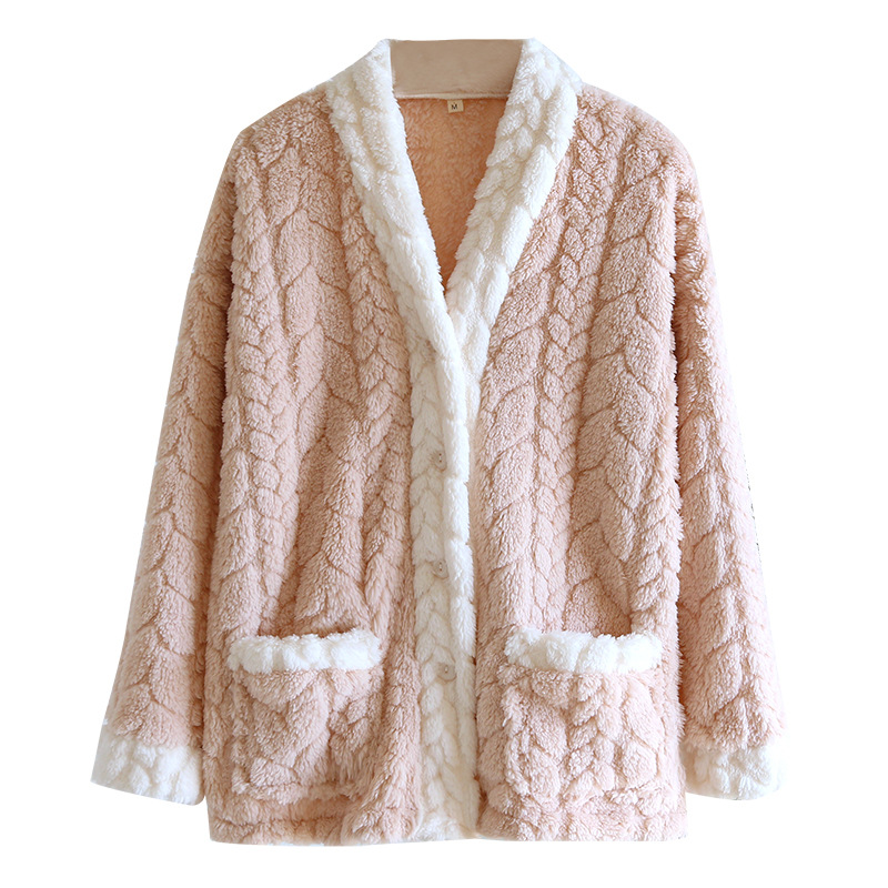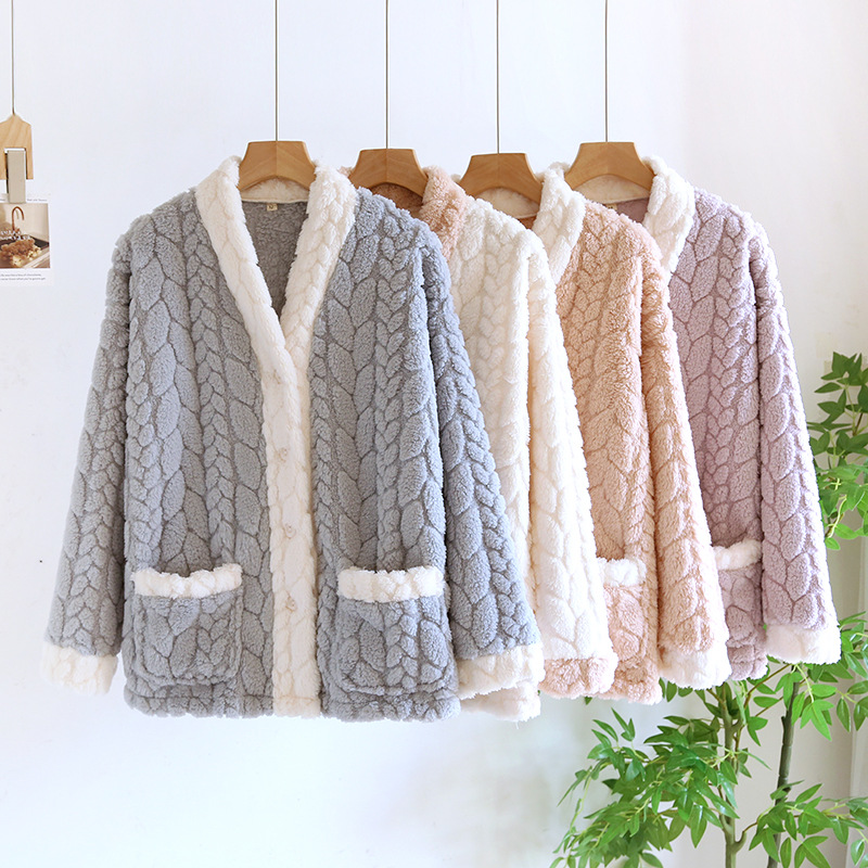 잠옷 탑 싱글 피스 여성의 두꺼운 플란넬 따뜻한 산호 양털 간단한 캐주얼 V-넥 두꺼운 긴 소매 탑