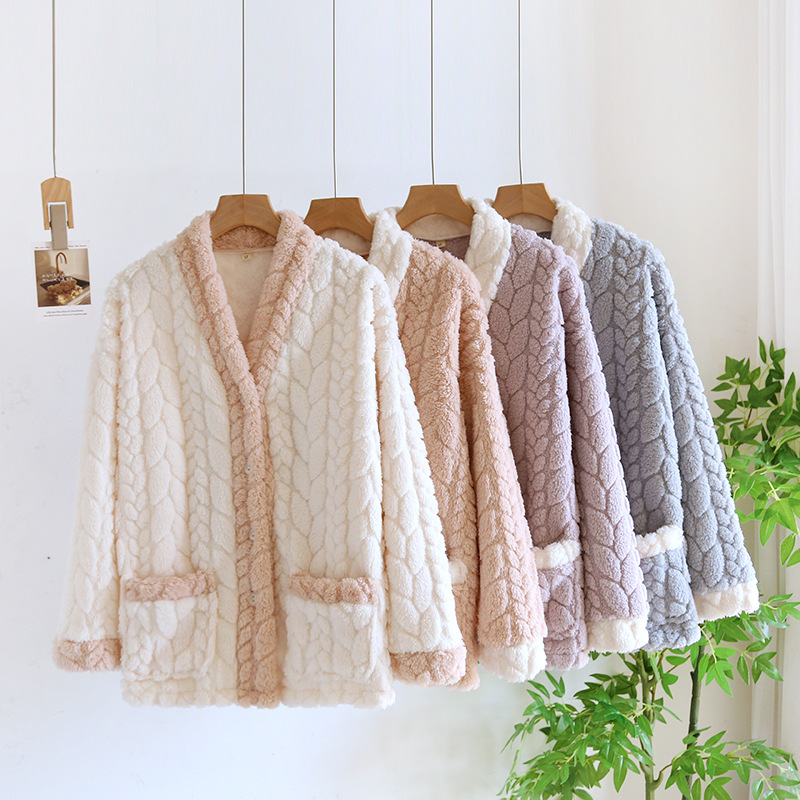 잠옷 탑 싱글 피스 여성의 두꺼운 플란넬 따뜻한 산호 양털 간단한 캐주얼 V-넥 두꺼운 긴 소매 탑스토어 가기