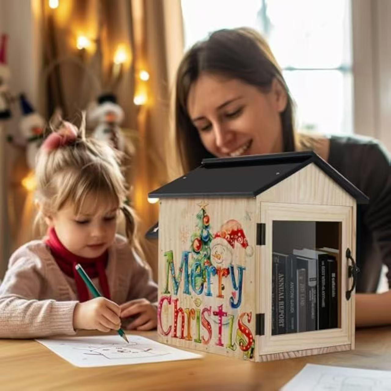나무 책 저장 상자 야외 교수형 잡지 마무리 상자 정원 장식 어린이 손으로 그린 단단한 나무 저장 상자스토어 가기