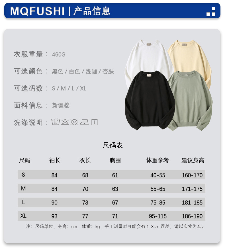 맞춤형 460g 헤비급 대형 드롭 숄더 테리 코튼 라운드 넥 스웨트셔츠 풀오버 솔리드 컬러 래글런 긴팔 유럽 사이즈 남성용스토어 가기