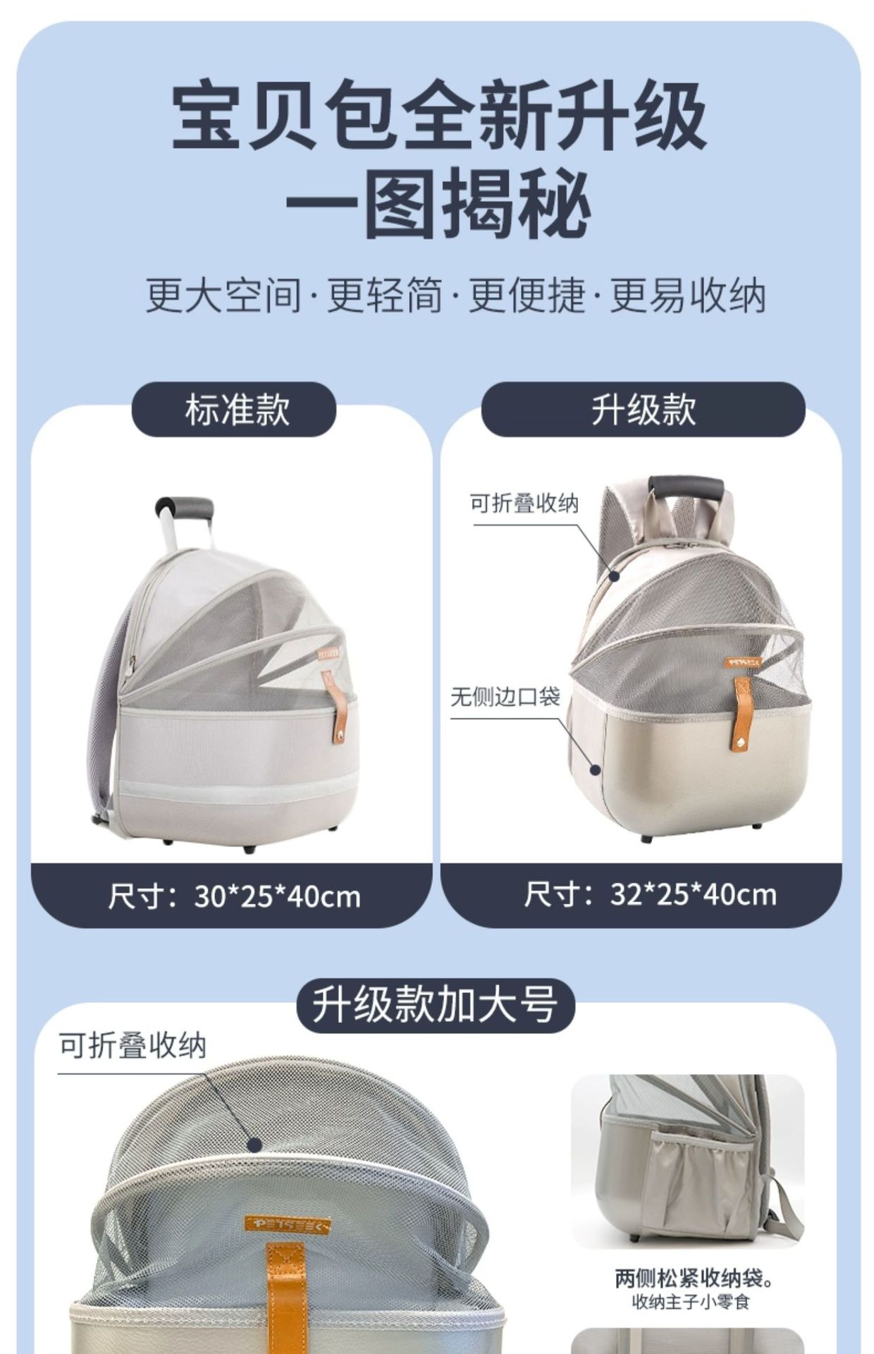 펫미 고양이 가방 백팩 고양이 강아지 대용량 보온 통기성 애완동물 가방 특허 디자인 휴대용스토어 가기