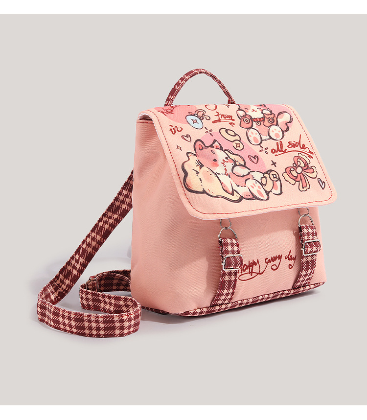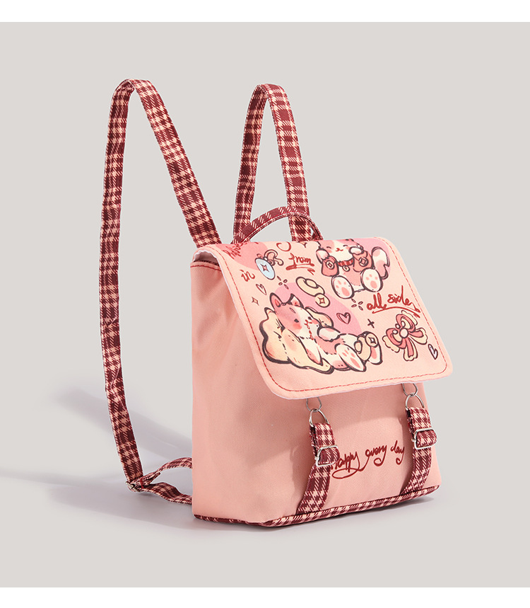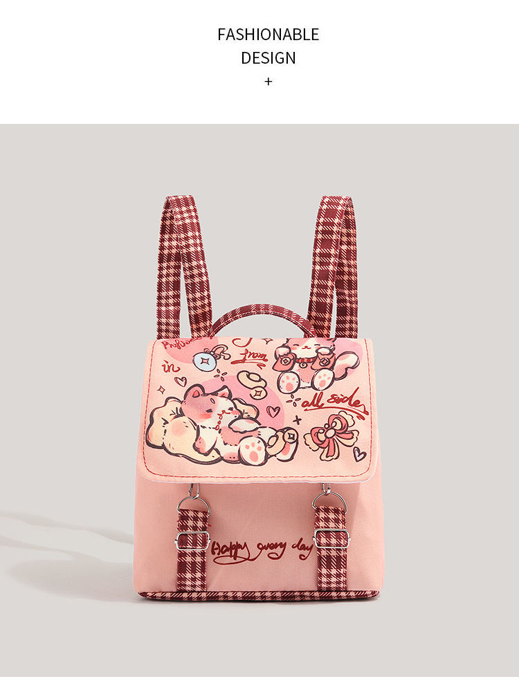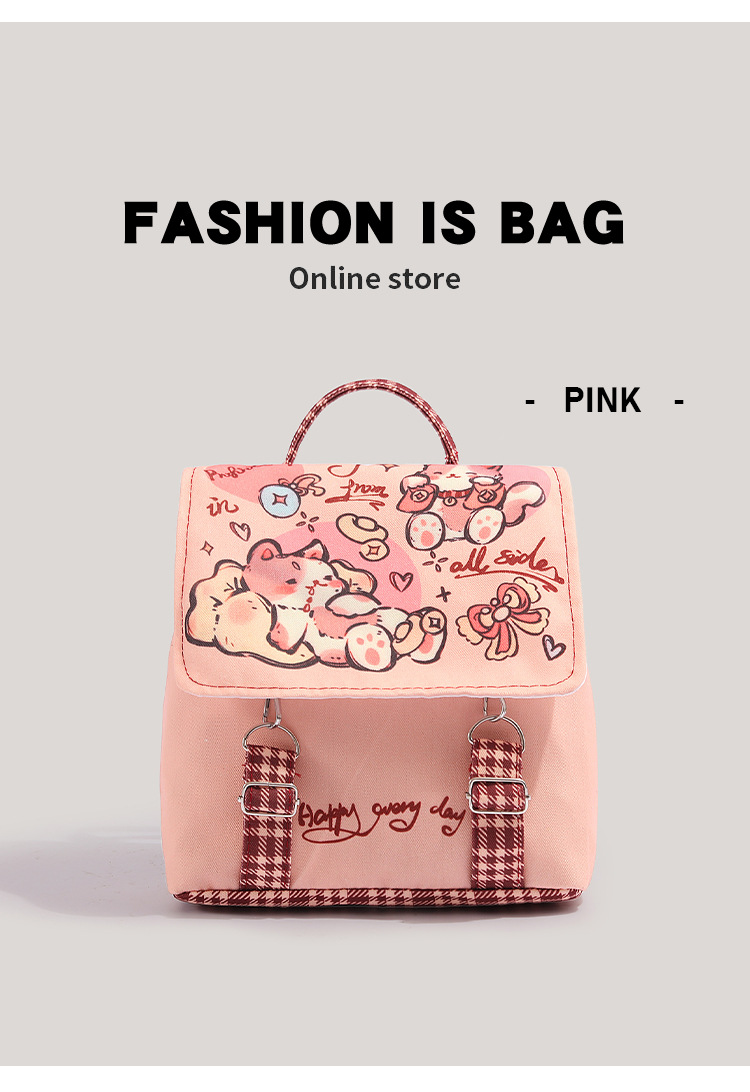 CHARHP & KEJNT 고양이 핑크 어린이 디자인 센스 캔버스 여자를위한 귀여운 미니 트렌디 배낭