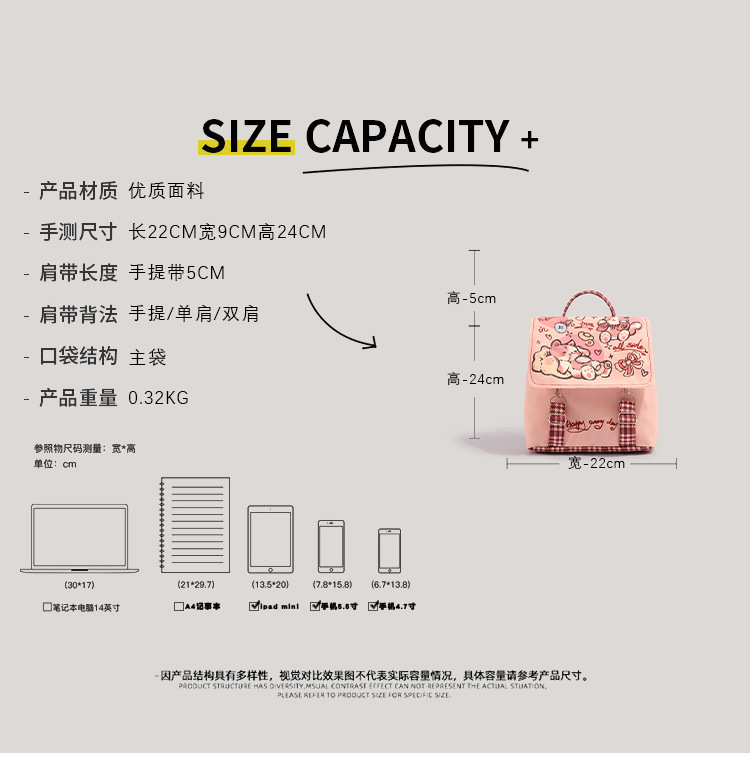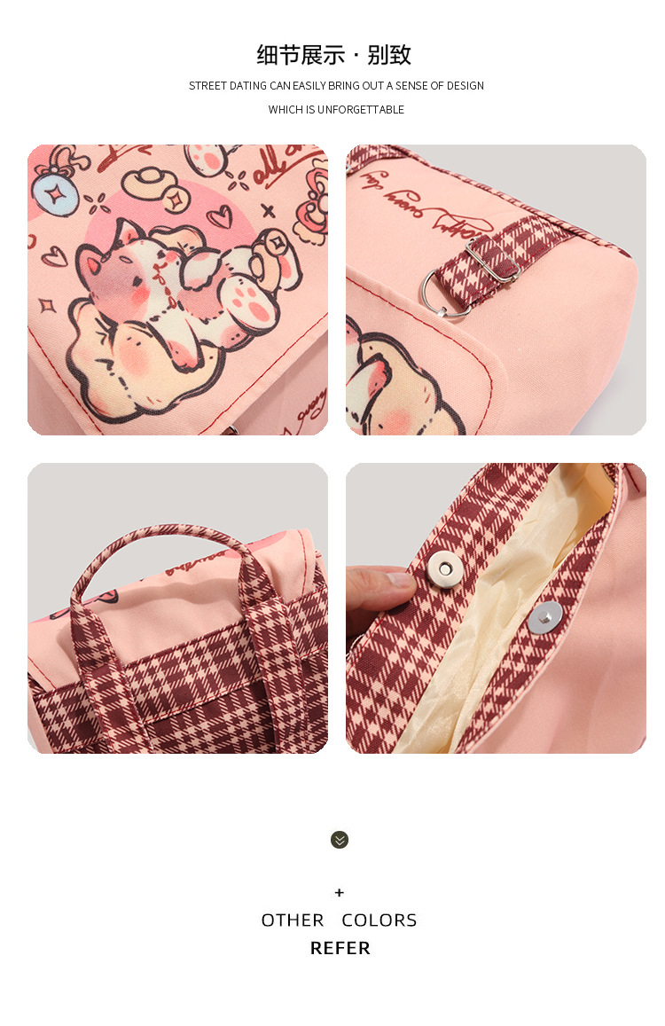 CHARHP & KEJNT 고양이 핑크 어린이 디자인 센스 캔버스 여자를위한 귀여운 미니 트렌디 배낭스토어 가기