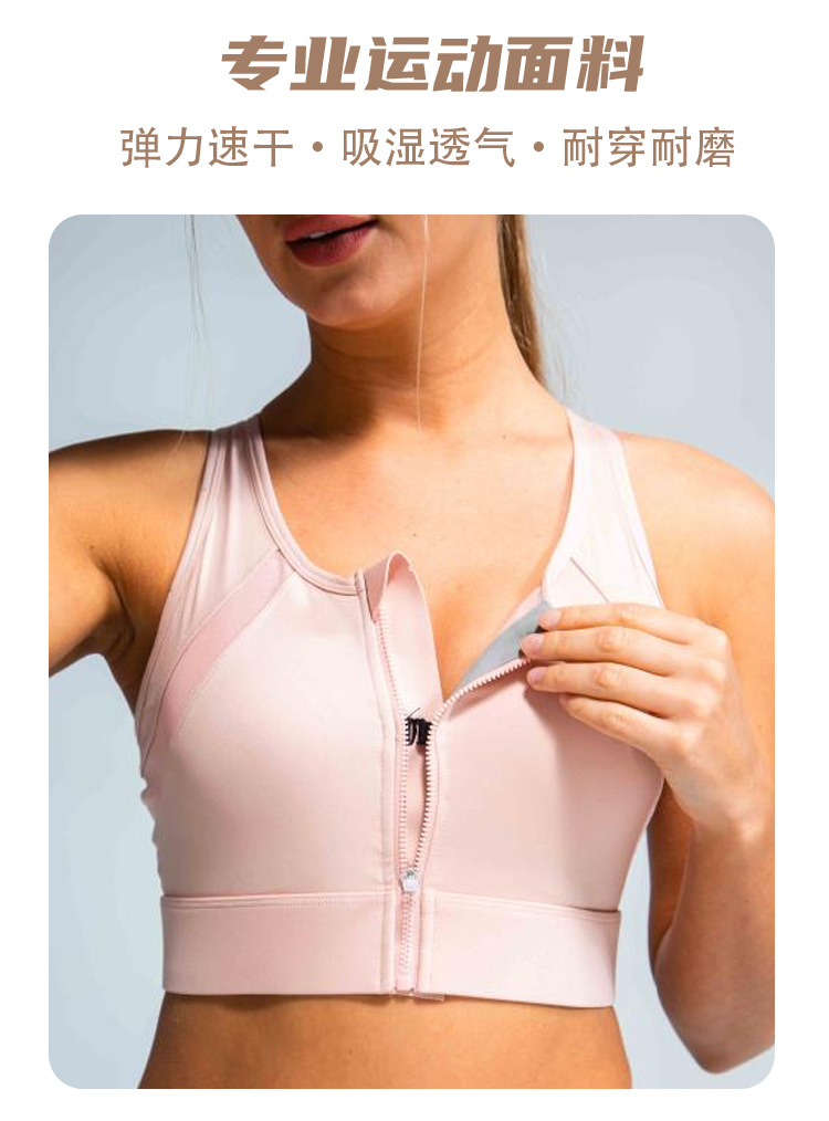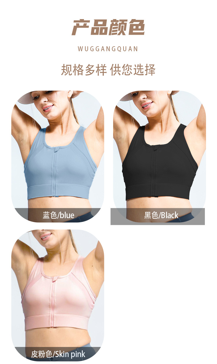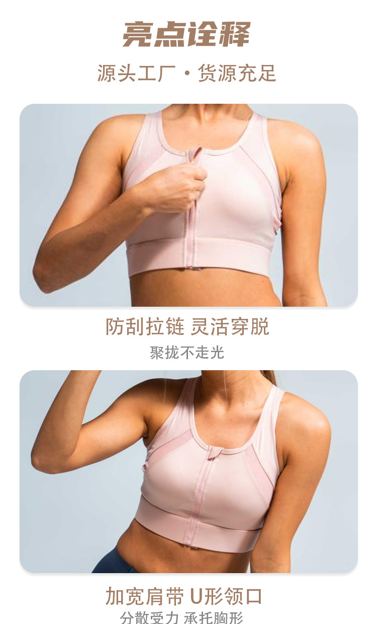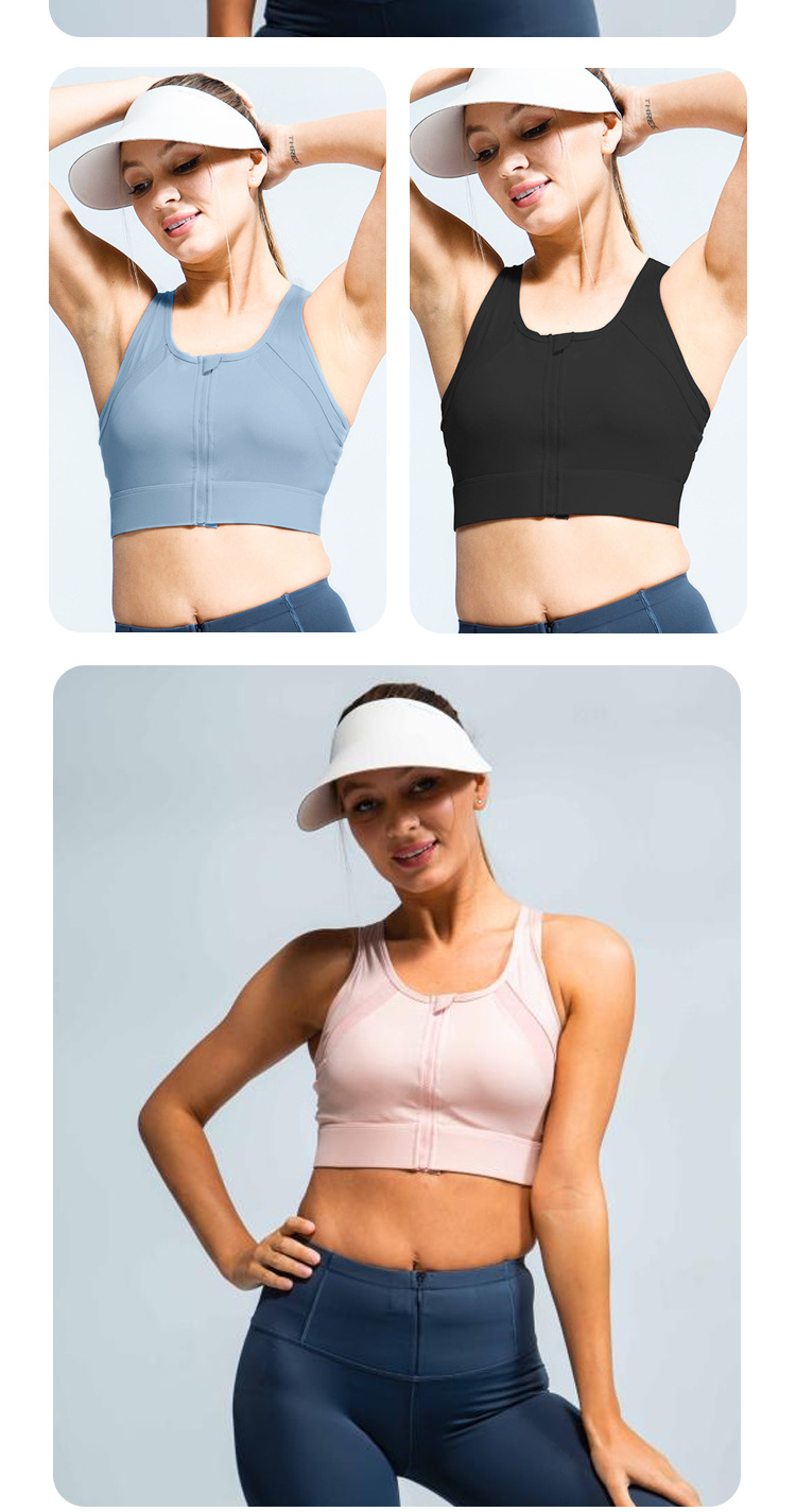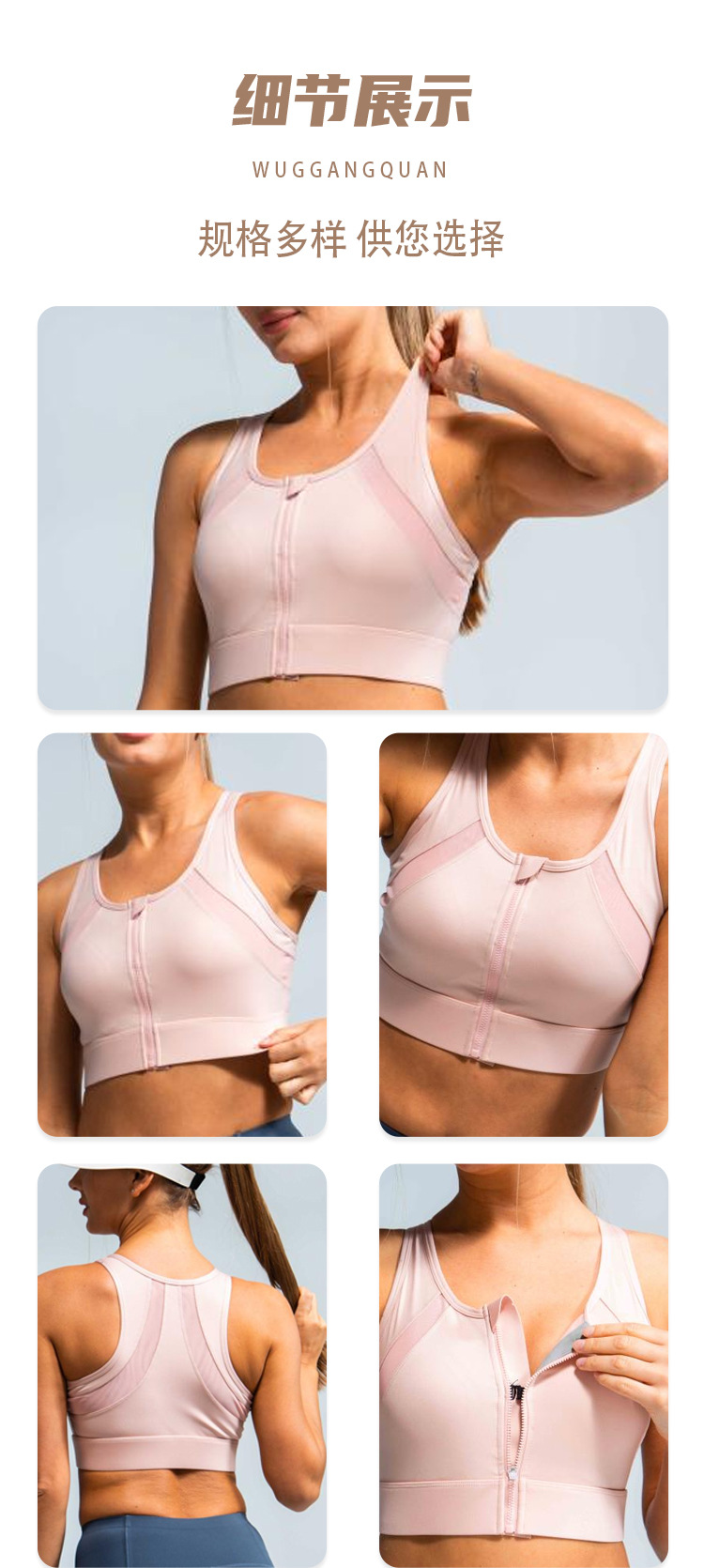 고강도 일체형 스포츠 피트니스 조끼 충격 흡수 요가 브라 앞지퍼 방진 속옷 여성용 통기성 속건