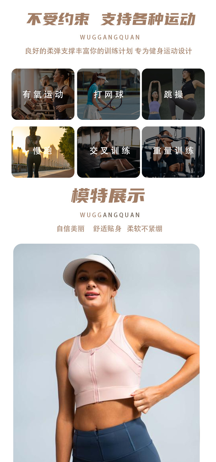고강도 일체형 스포츠 피트니스 조끼 충격 흡수 요가 브라 앞지퍼 방진 속옷 여성용 통기성 속건스토어 가기