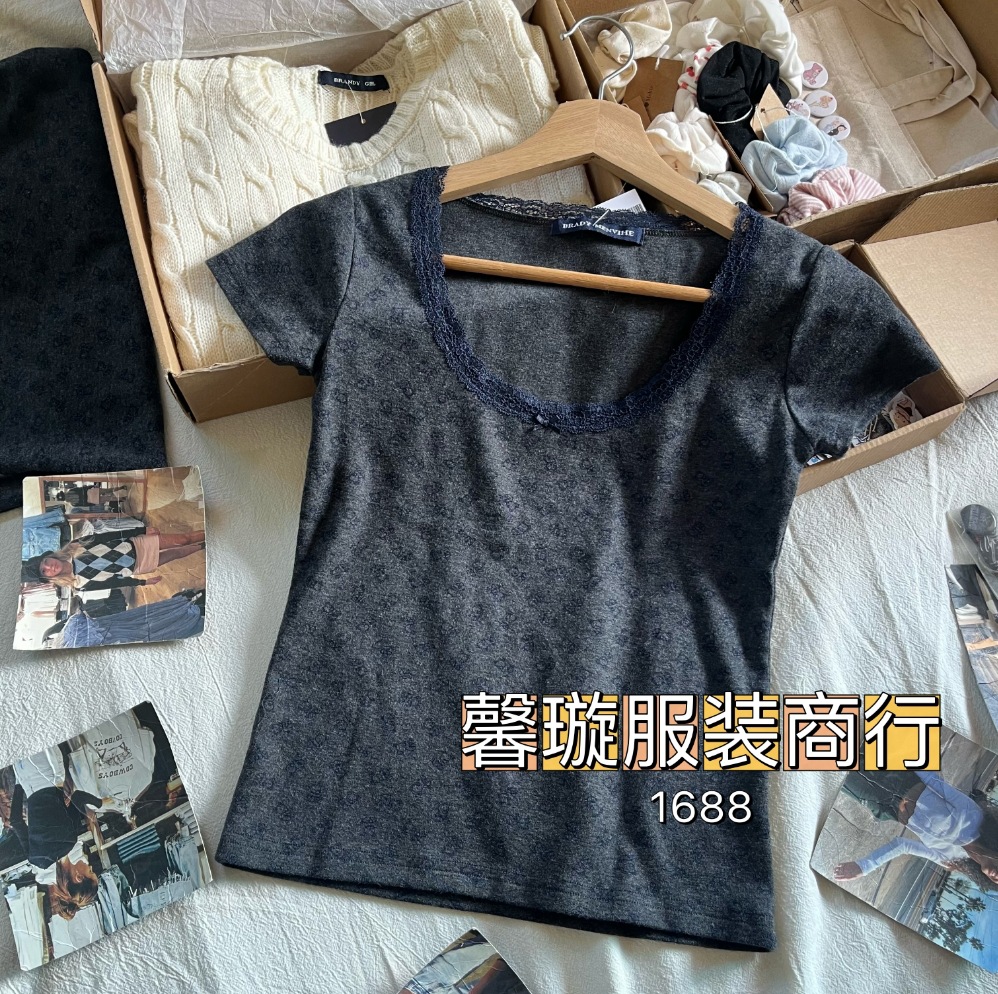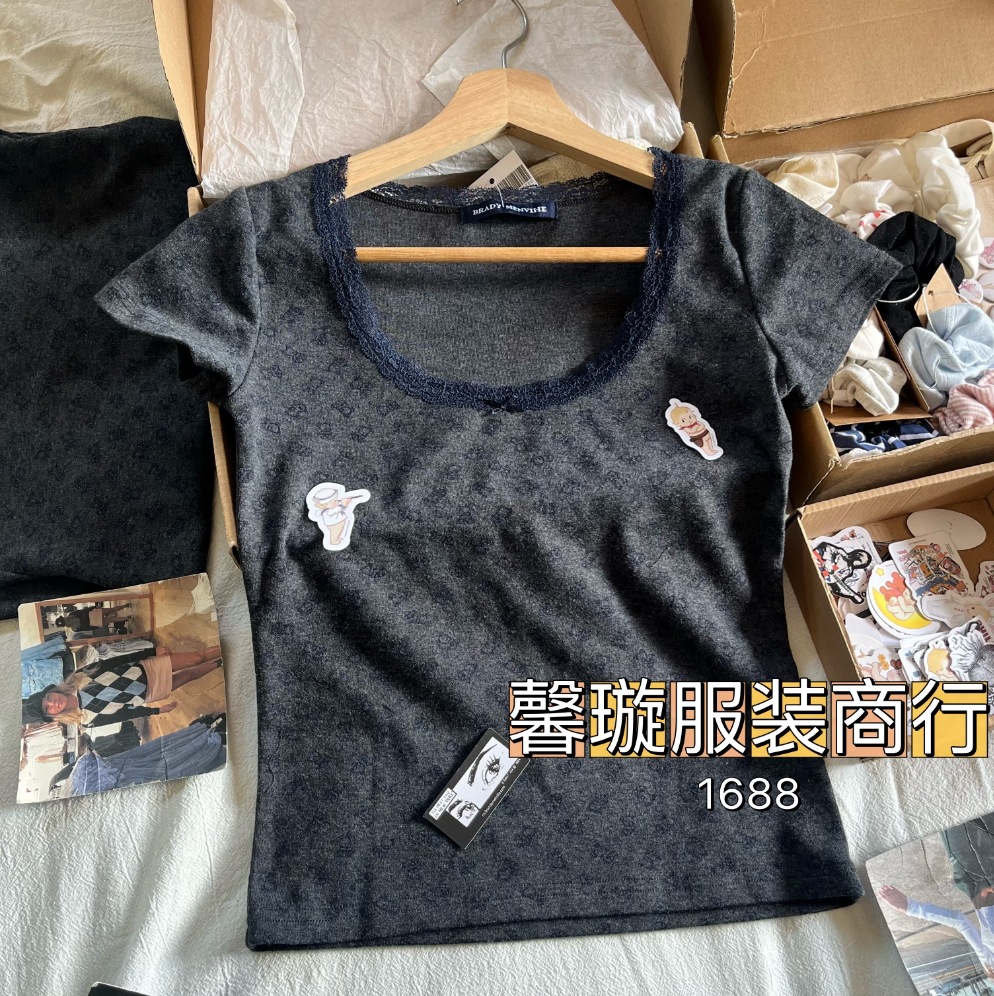 BM 스타일 다크 그레이 레이스 베어 프린트 반팔 티셔츠 여성용 BM 새로운 슬림 핏 베이스 셔츠 아메리칸 스타일 스파이스 스타일 탑
