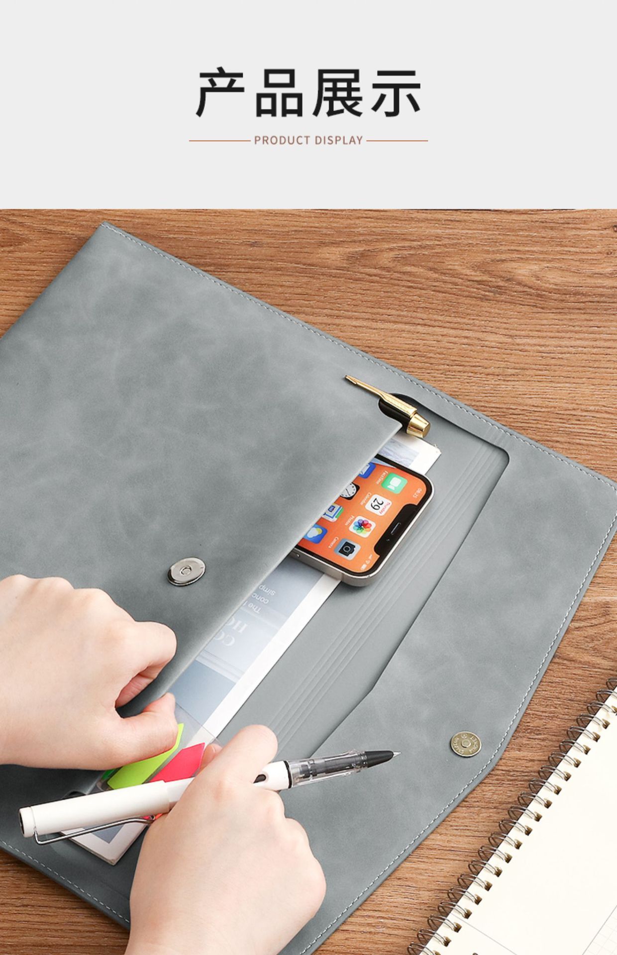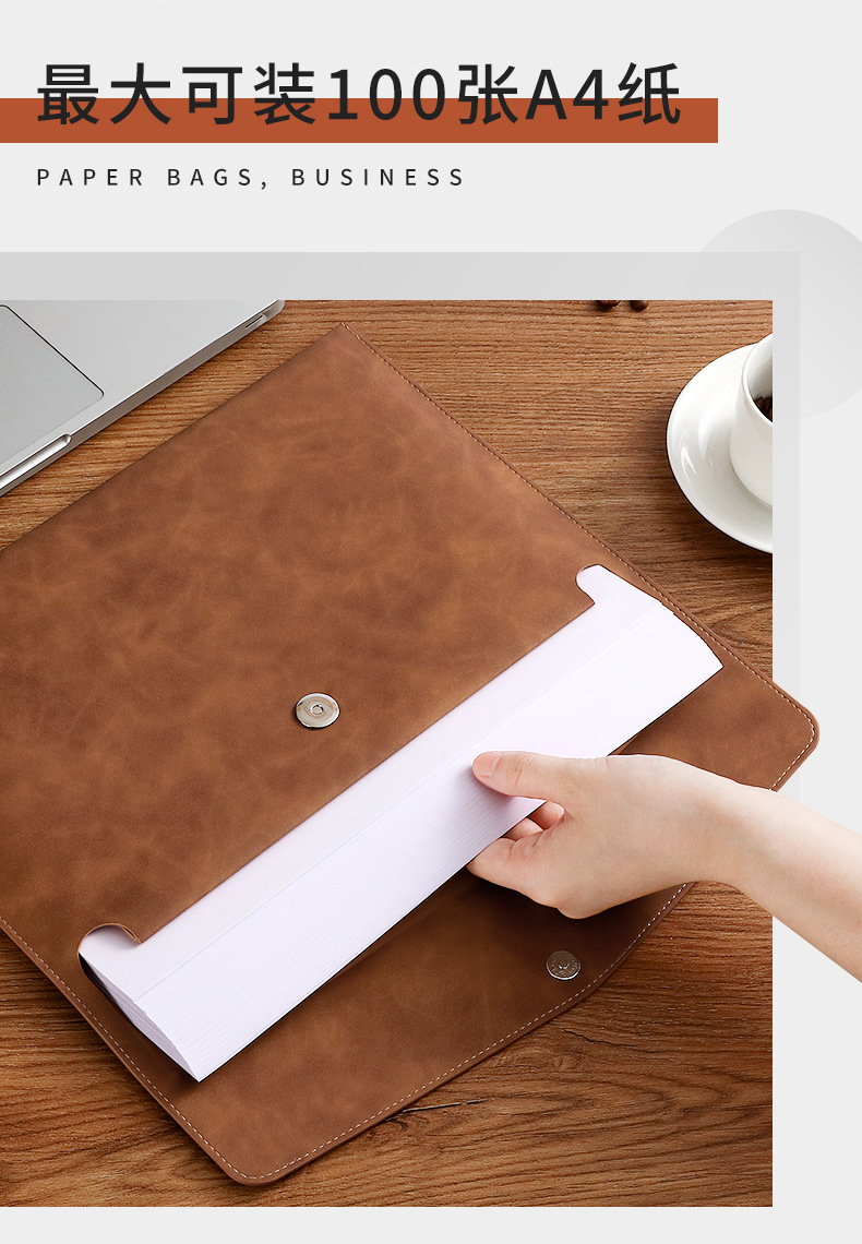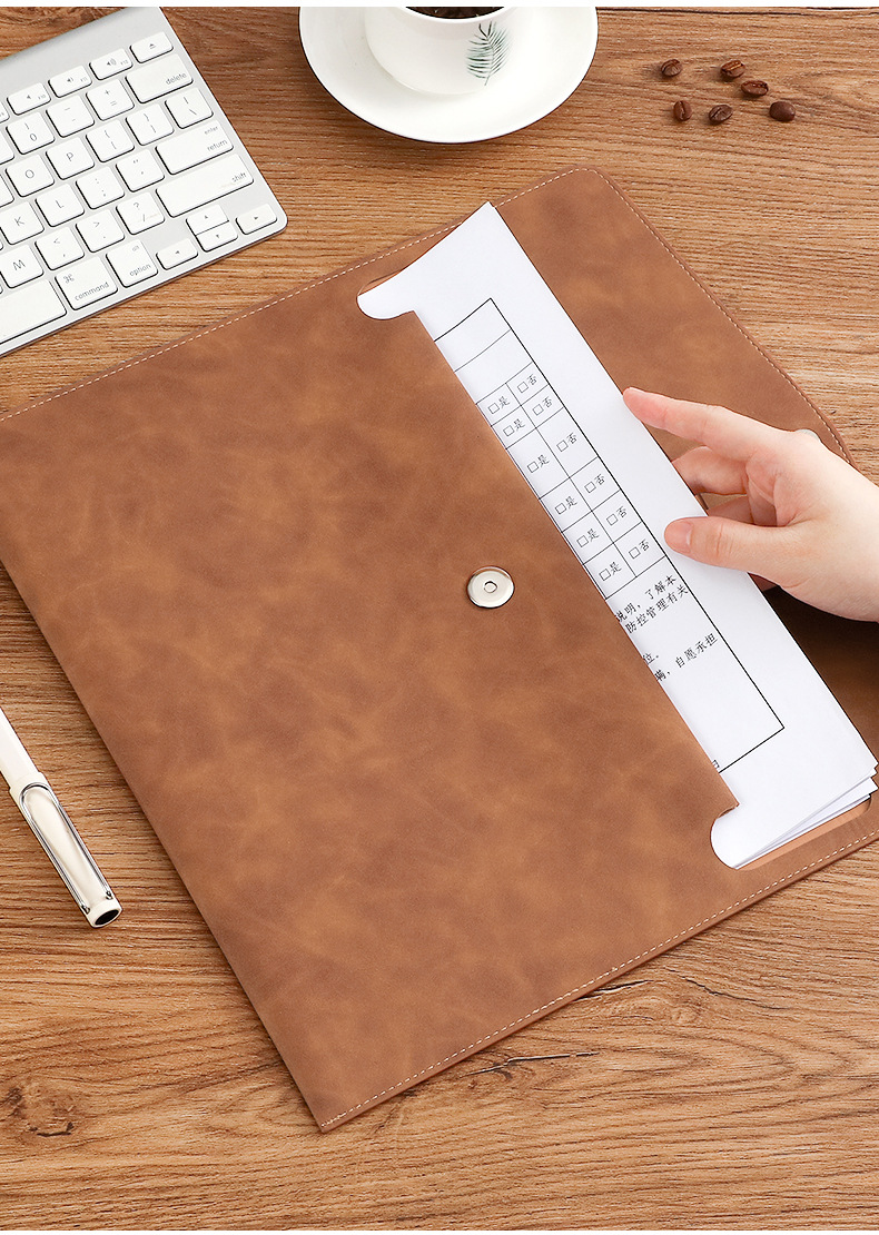 파일 가방 A4 대용량 데이터 저장 가방 마그네틱 버클 가죽 폴더 비즈니스 서류 가방 파일 가방 사용자 정의스토어 가기