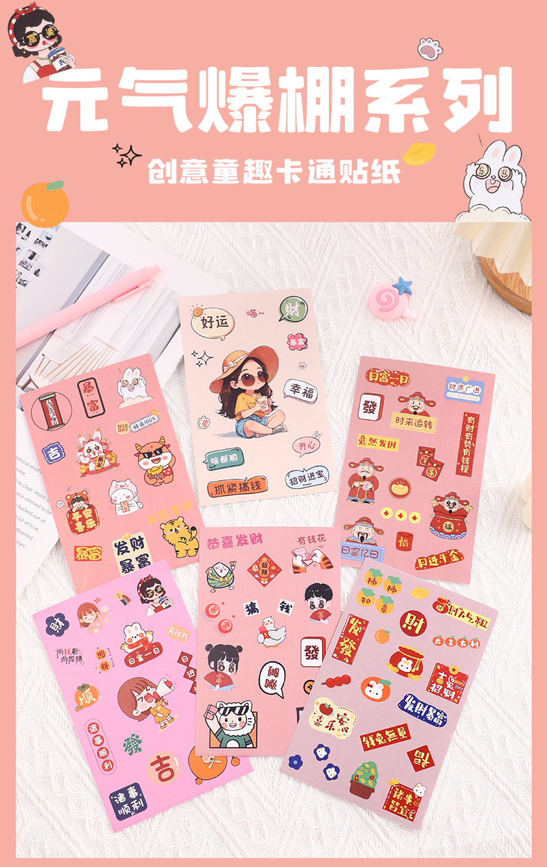 2026 인터넷 유명인 부자 스티커, 접착식 광고 라벨, 만화 크리스마스 스티커, 방수 투명 스티커, 인쇄된 로고