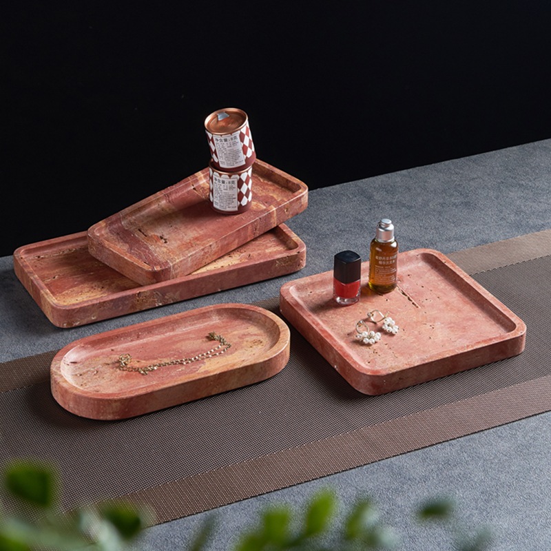 북유럽 Ins 창조적 인 간단한 천연 붉은 돌 보석 화장품 저장 트레이 욕실 트레이 공예 장식품스토어 가기