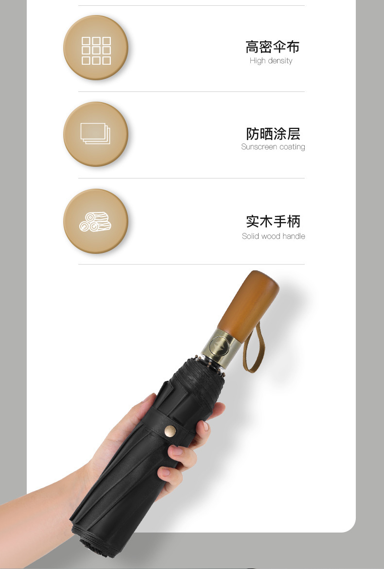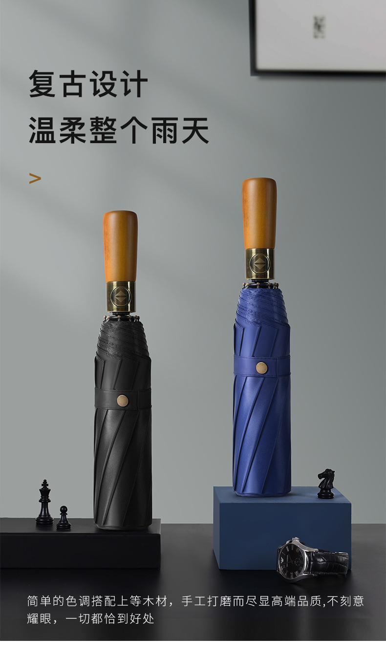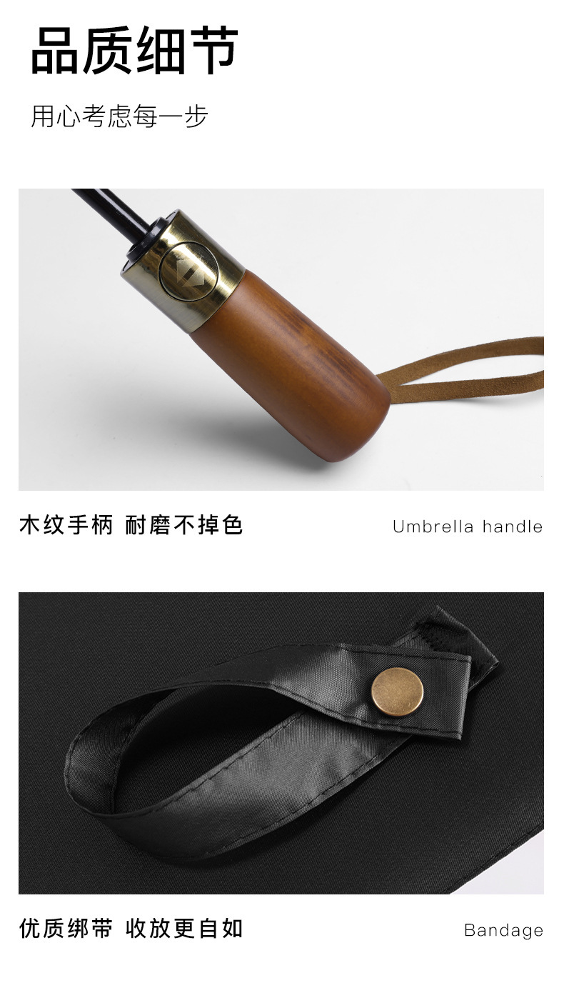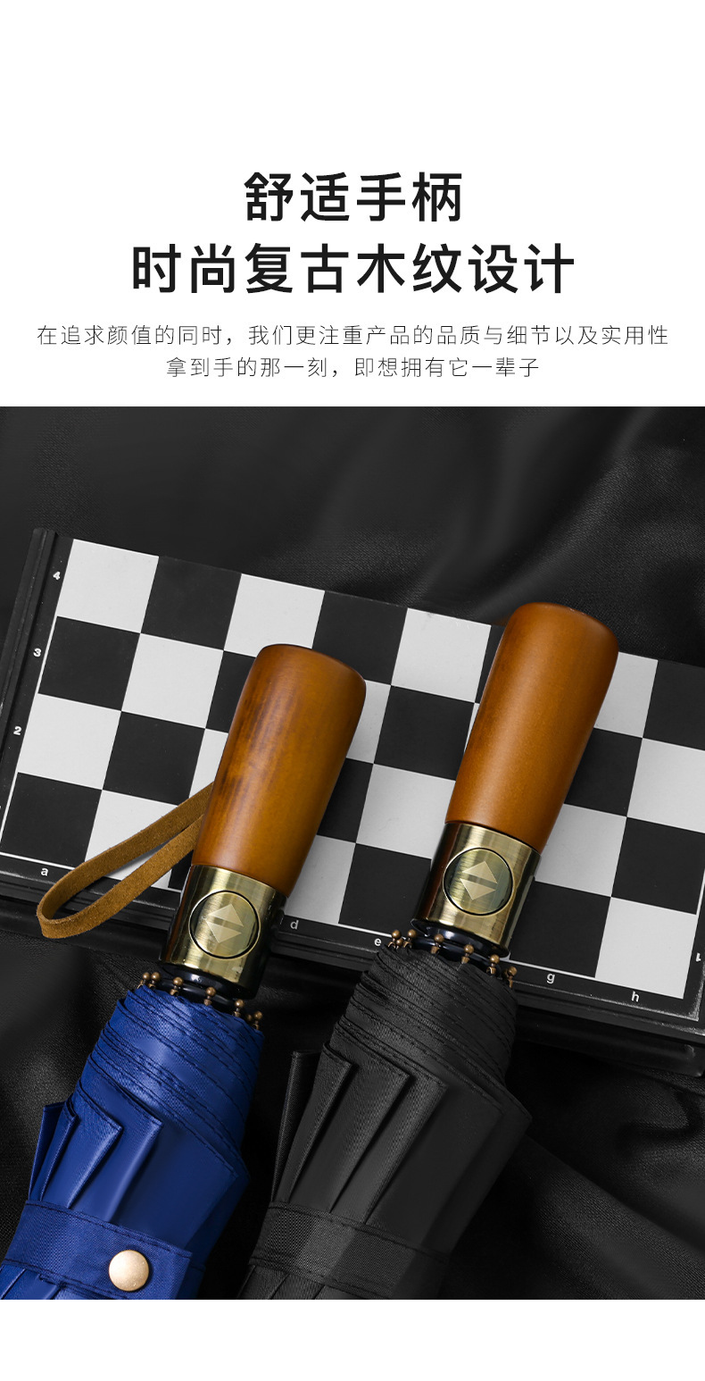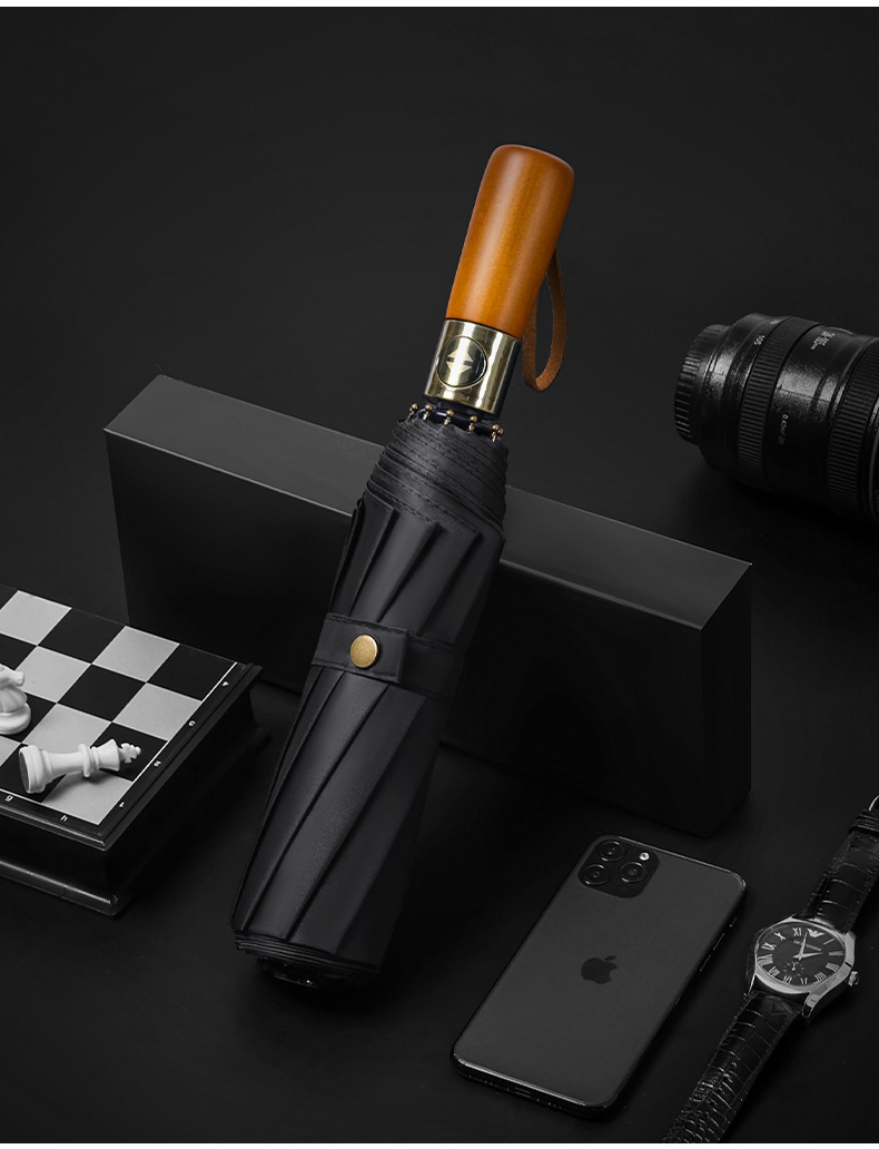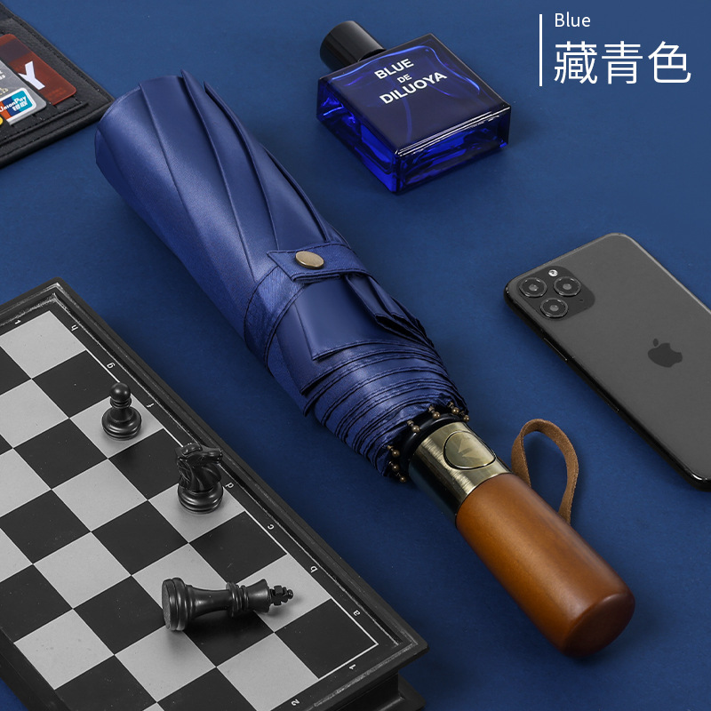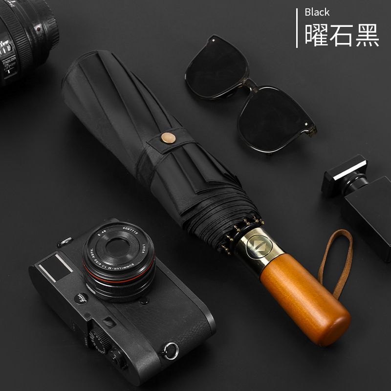 남성 비즈니스 열 뼈 접이식 우산 검은 고무 자외선 차단제 3 배 우산 자동 복고풍 단단한 나무 손잡이 광고 우산 사용자 정의
