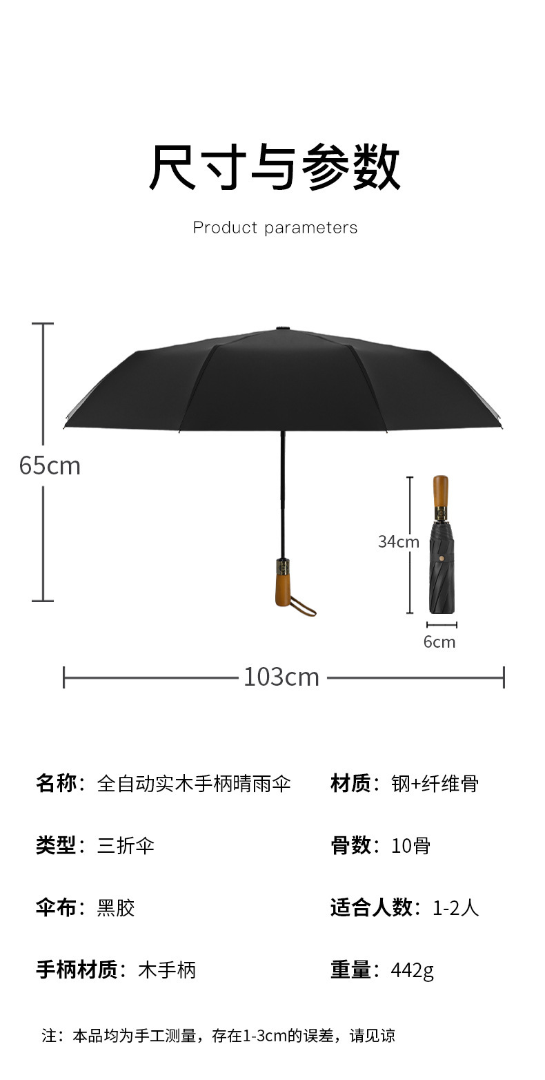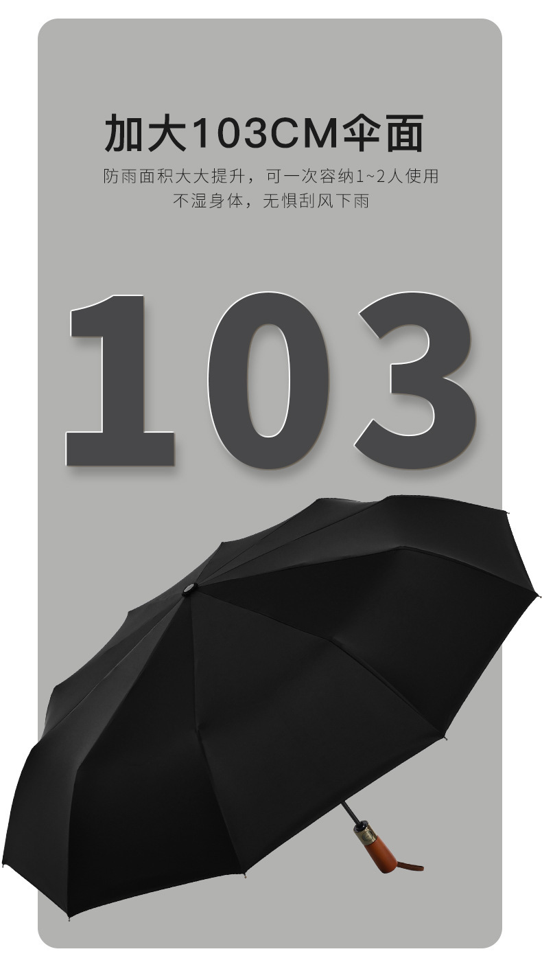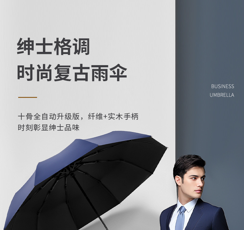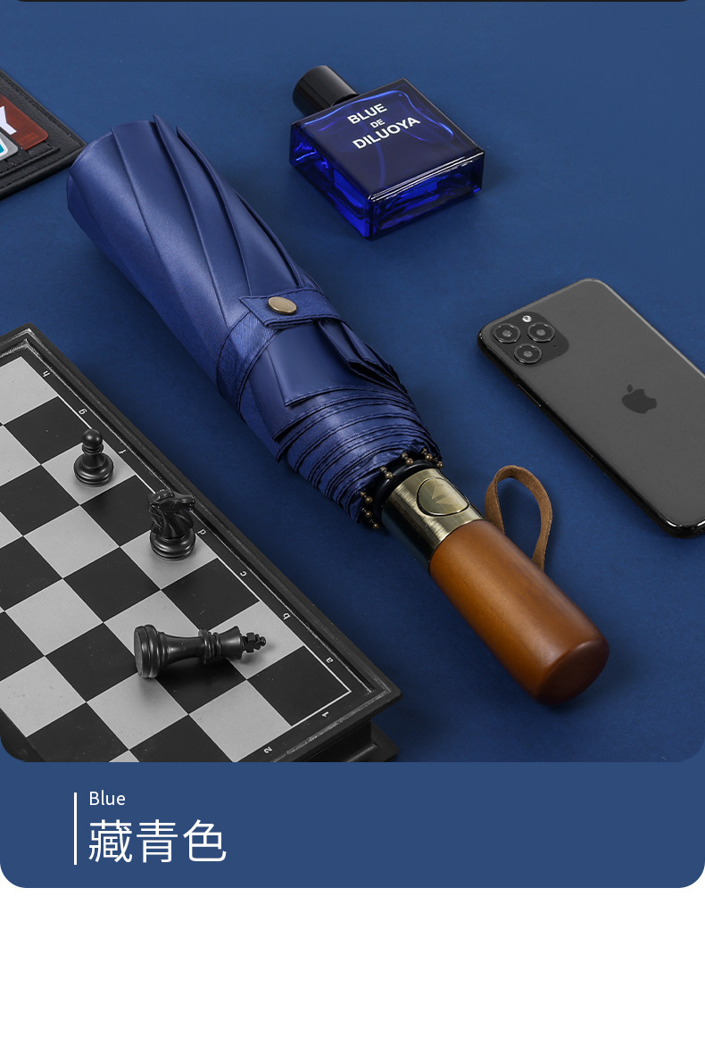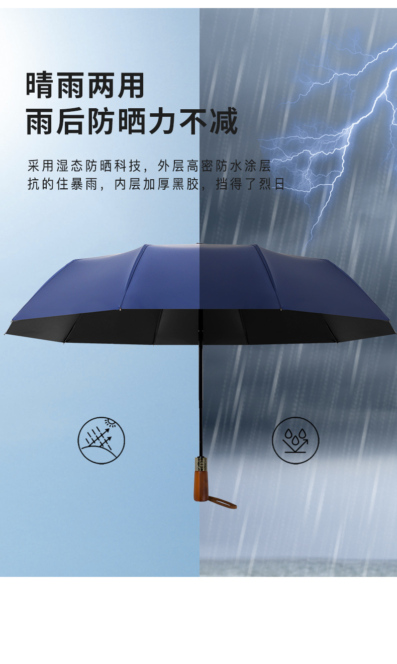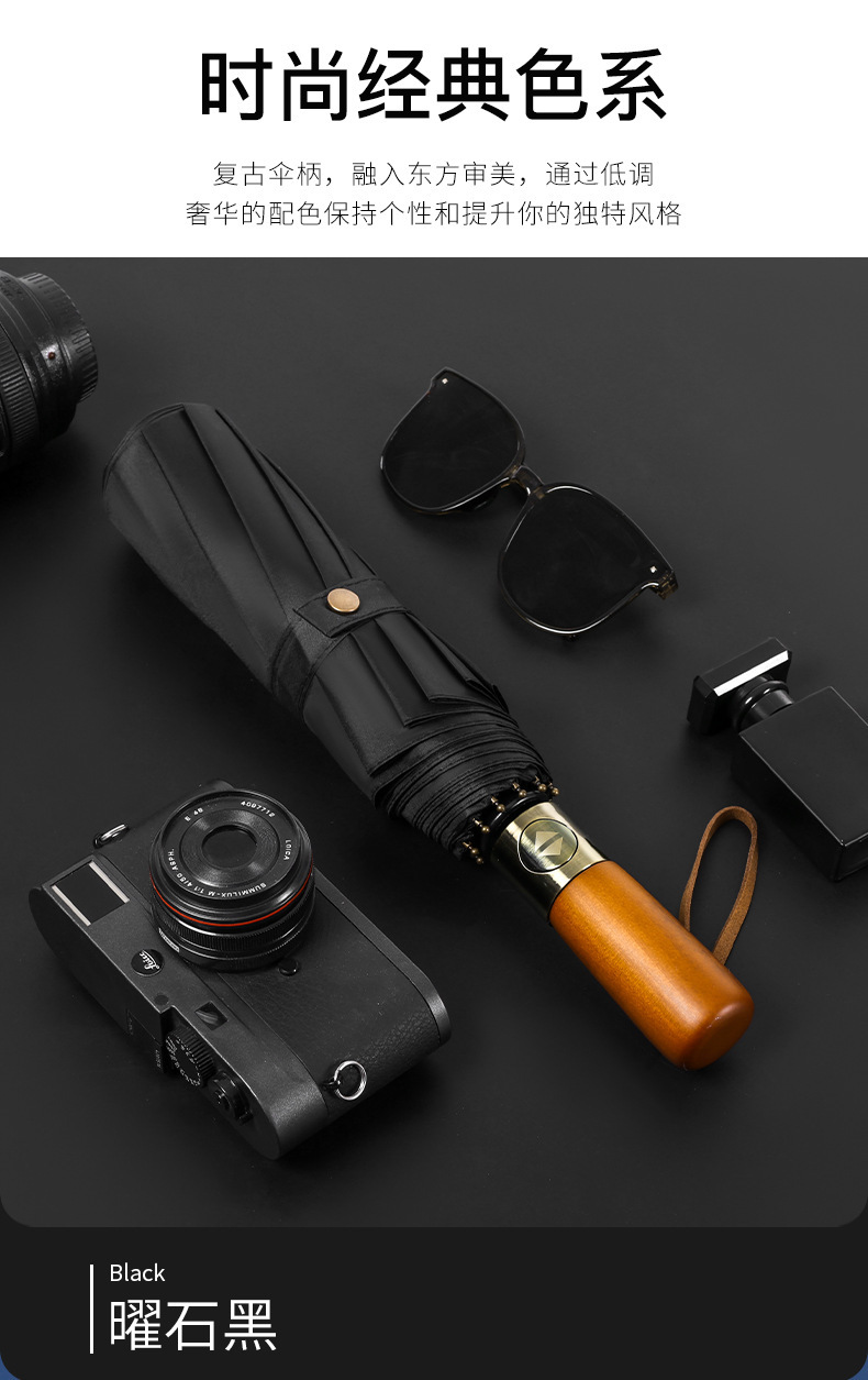 남성 비즈니스 열 뼈 접이식 우산 검은 고무 자외선 차단제 3 배 우산 자동 복고풍 단단한 나무 손잡이 광고 우산 사용자 정의