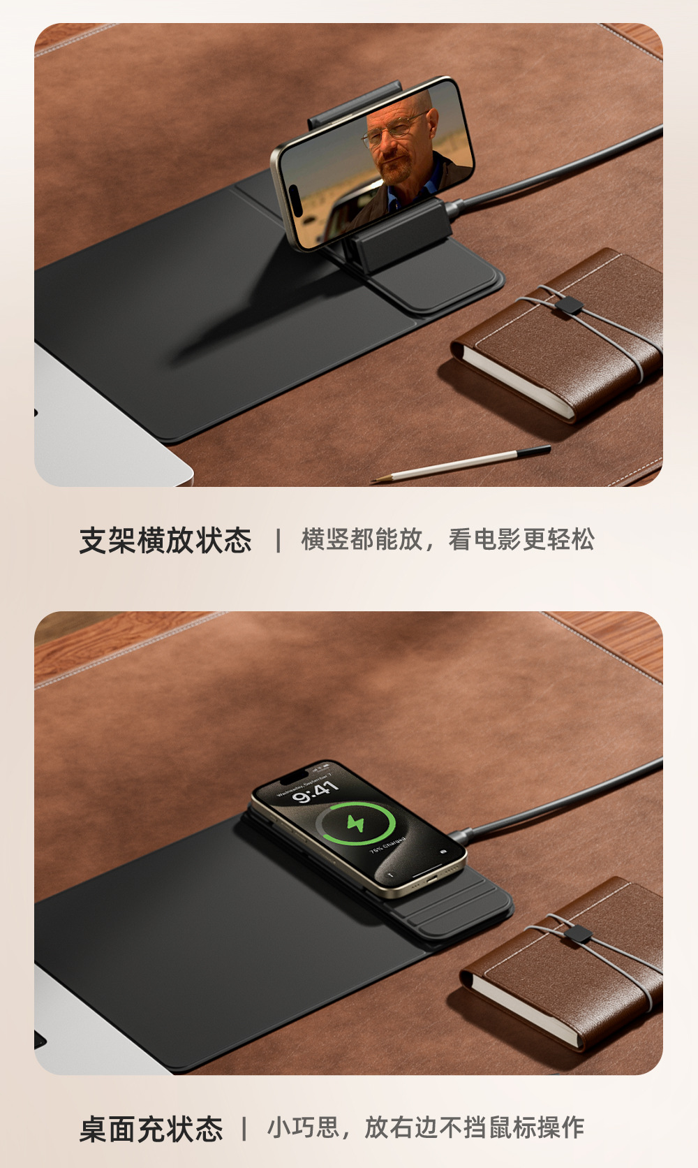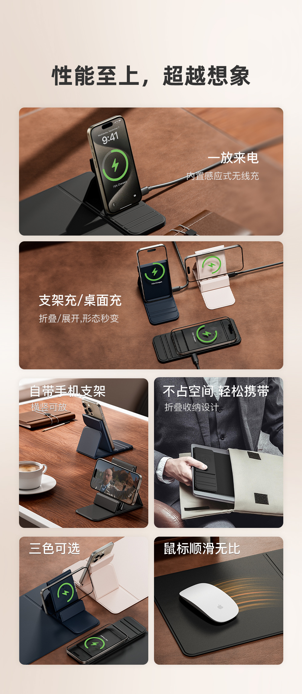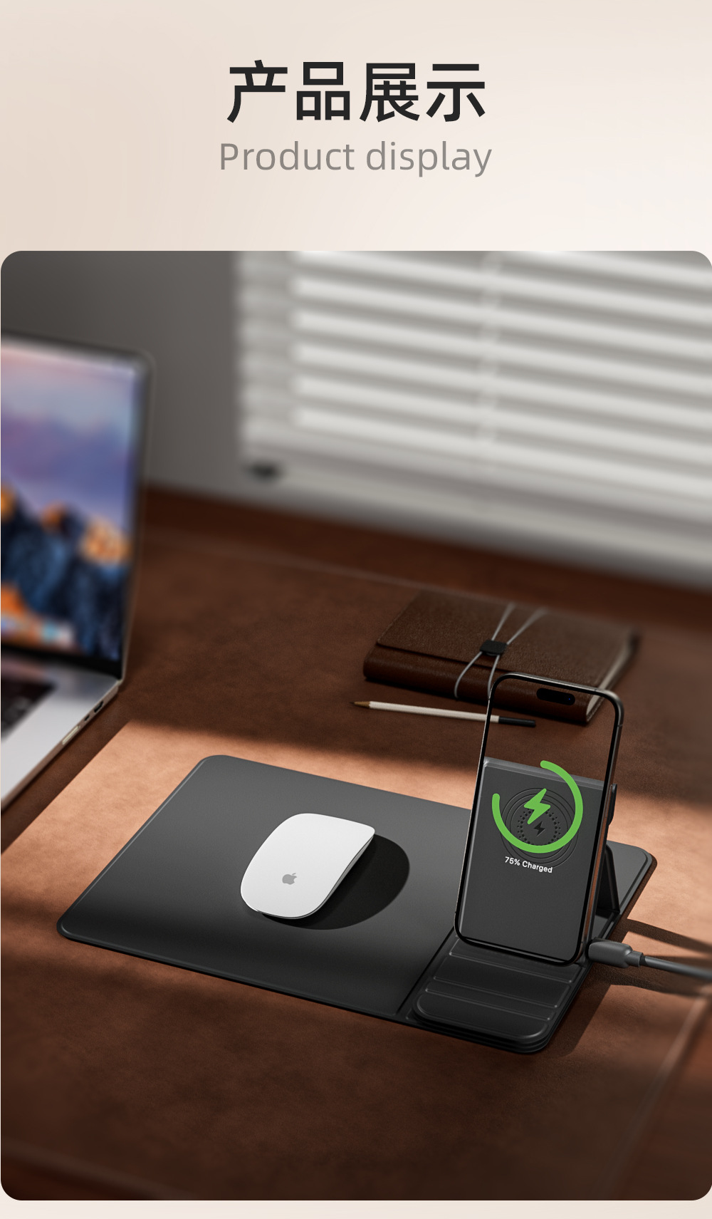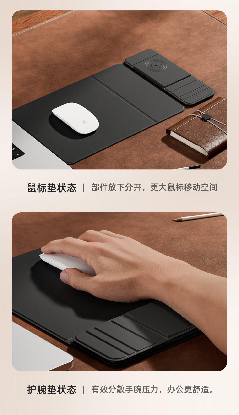 국경 간 새로운 다기능 빠른 충전 휴대 전화 무선 충전 마우스 패드 스몰 사이즈 사무실 PU 미끄럼 방지 비즈니스 마우스 패드