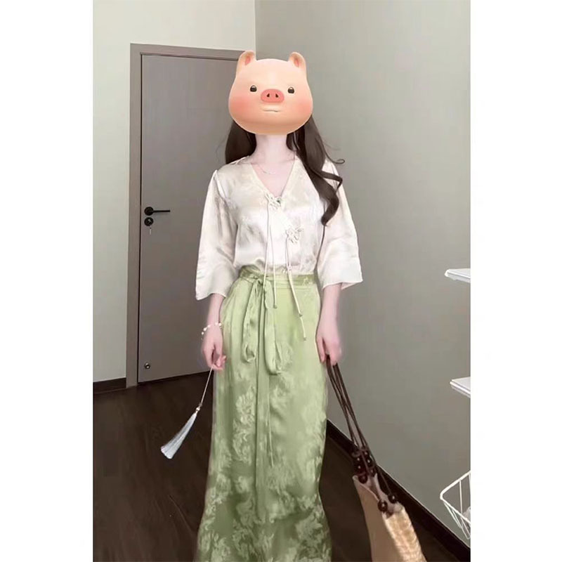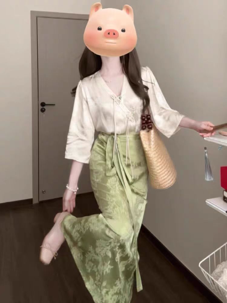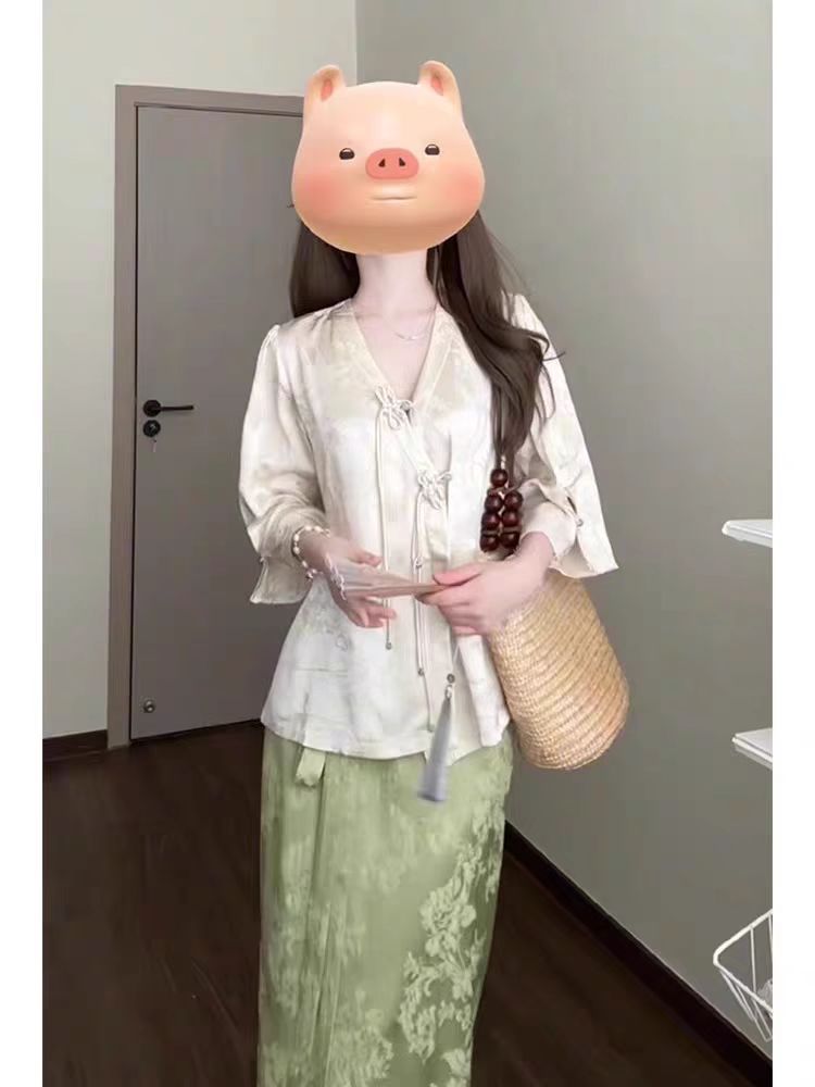 가을과 겨울은 새로운 중국 여성 의류 국가 스타일 올드 머니 스타일 중국 스타일 개선 치삼 투피스 세트 3671 을 착용합니다.