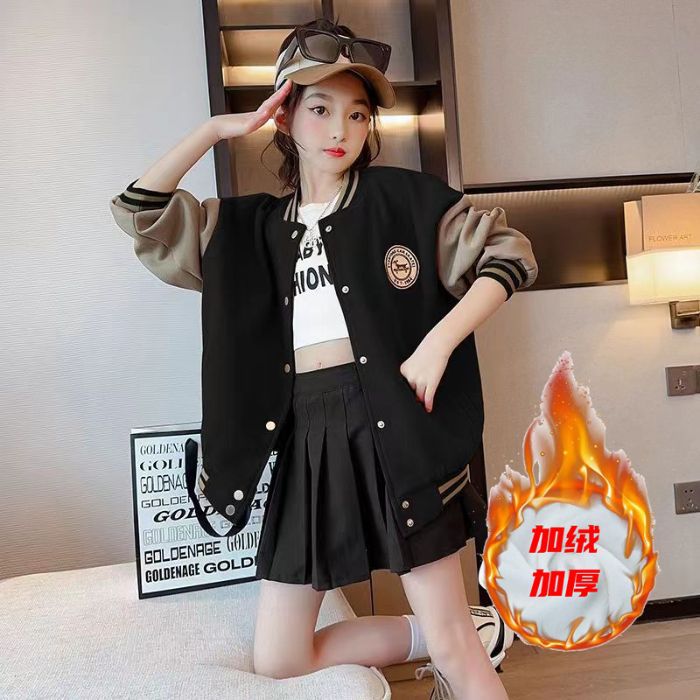 소녀 코트 2024 가을 겨울 새로운 어린이 겨울 야구 세트 걸스 기모 두꺼운 자켓 탑