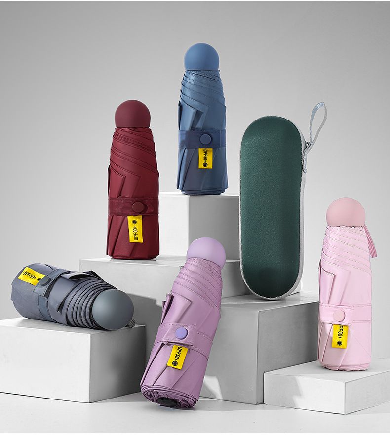 엄밀히 선정된 초경량 소형 휴대용 캡슐 5 배 우산 태양 우산 태양 보호 자외선 보호 써니 우산 미니 우산