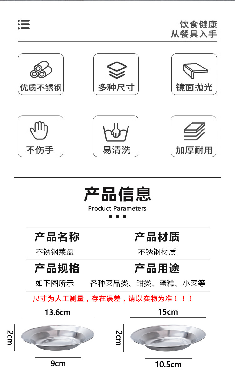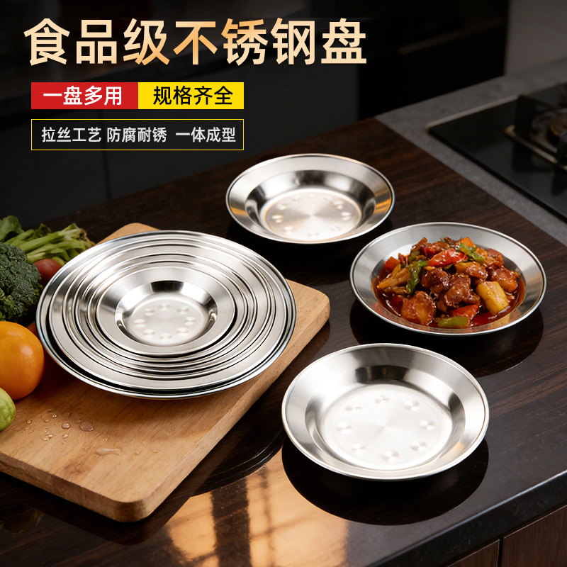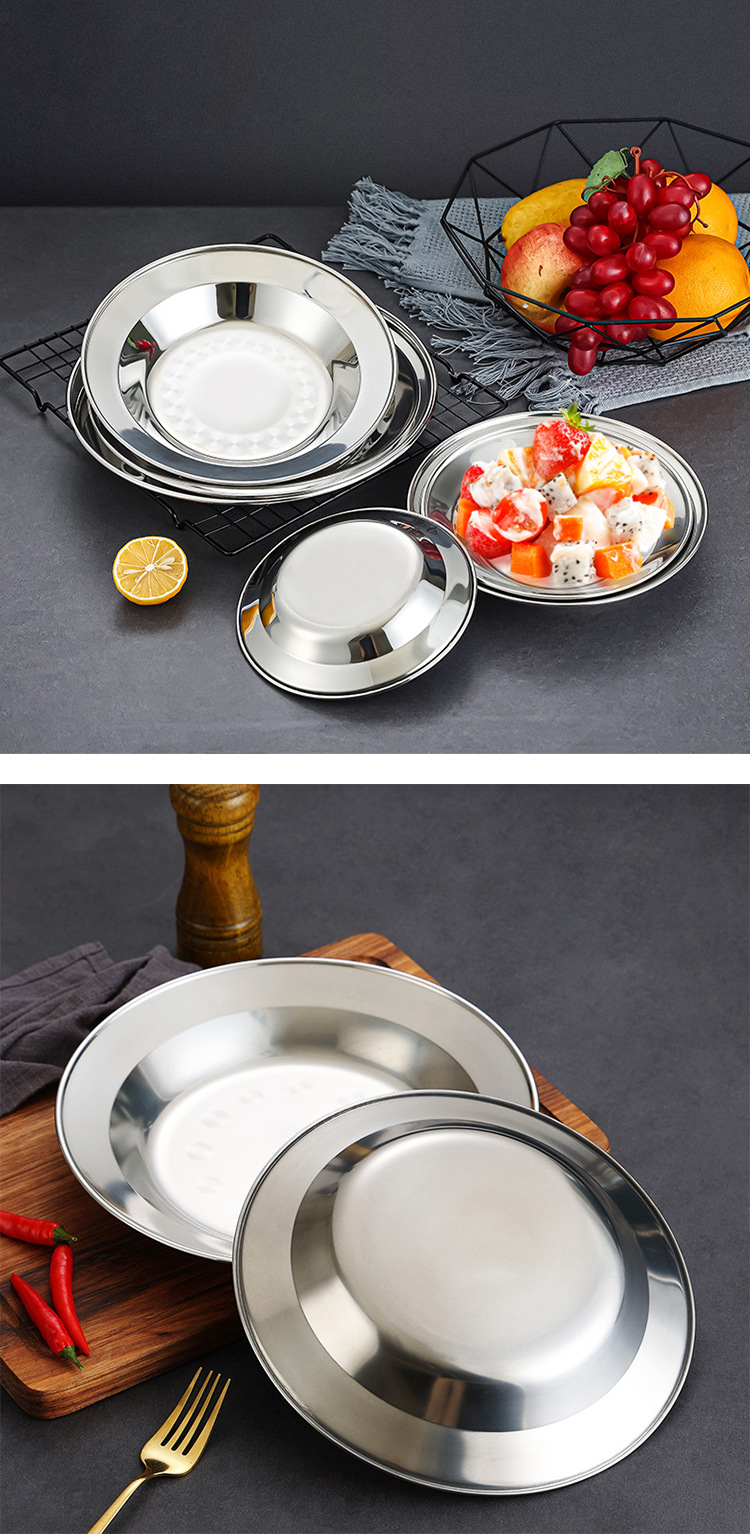 스테인레스 스틸 접시 통조림 요리 가정용 접시 심화 비 자기 접시 바베큐 플레이트 다이닝 디스크