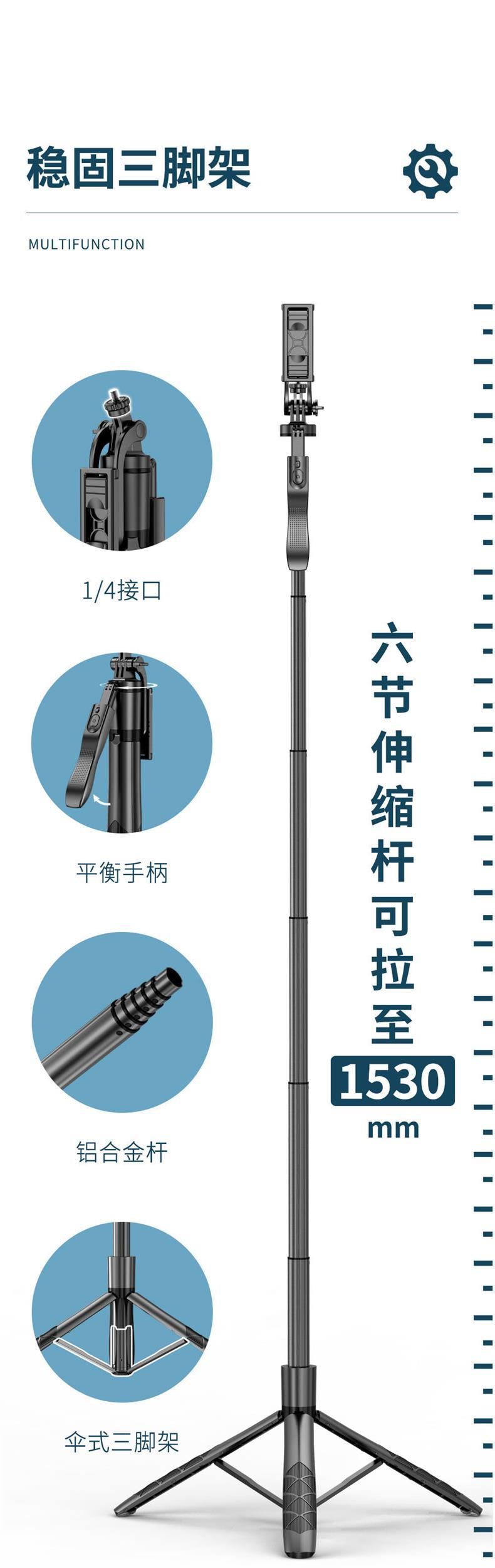 휴대 전화 블루투스 셀카 레버 L16 더블 필 라이트 핸드 헬드 스태빌라이저 바닥 텔레스코픽 로드 라이브 브라켓 삼각대