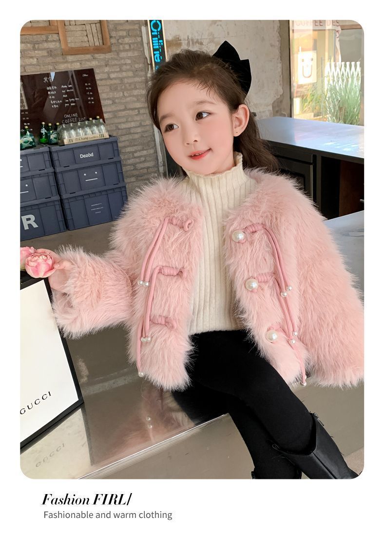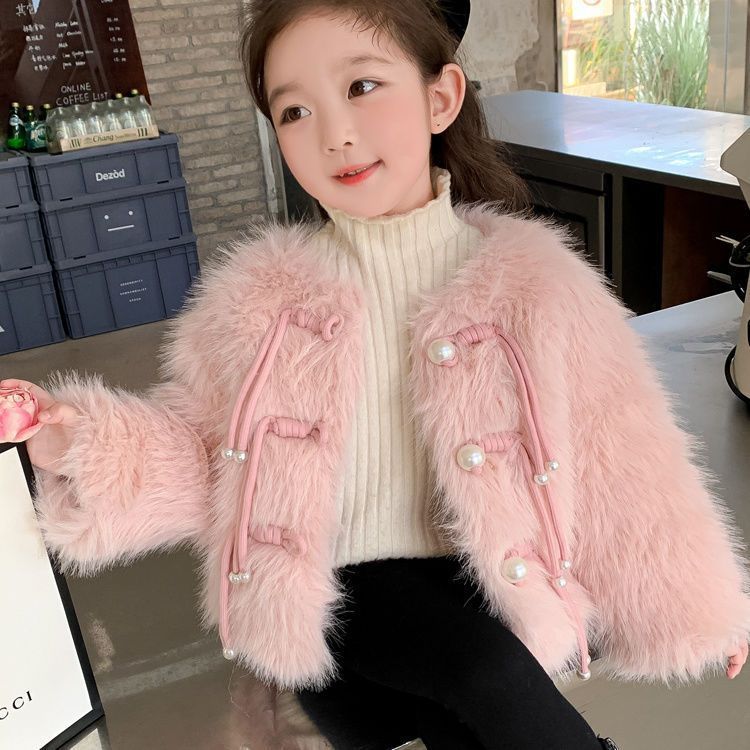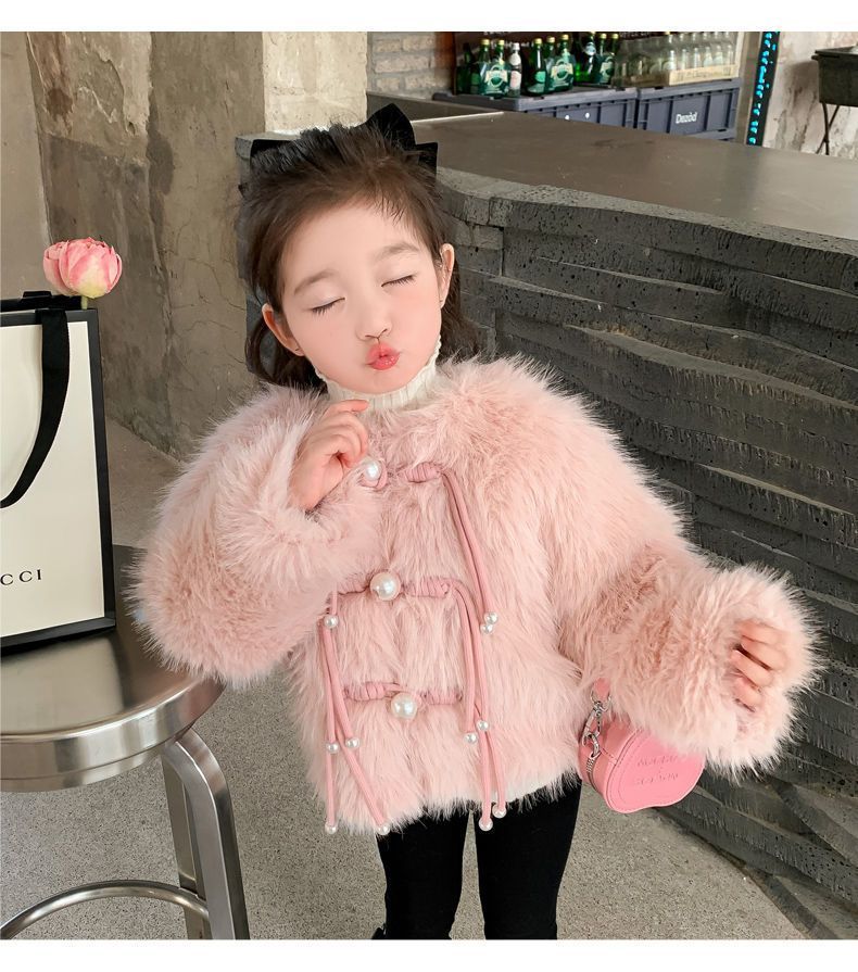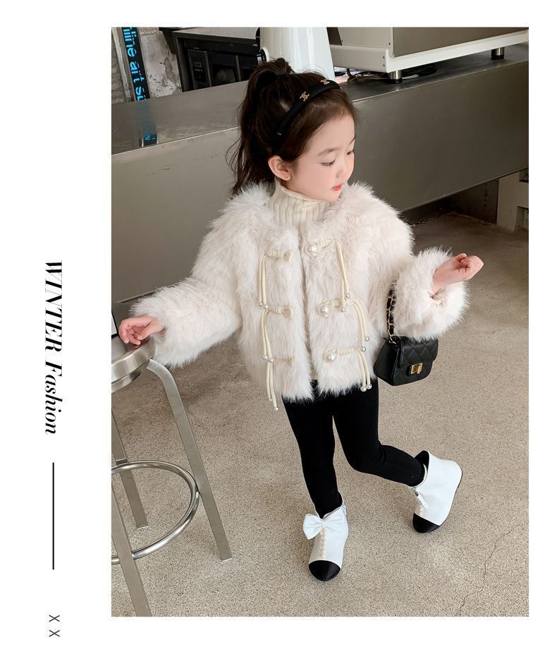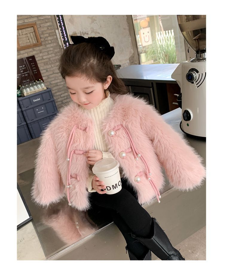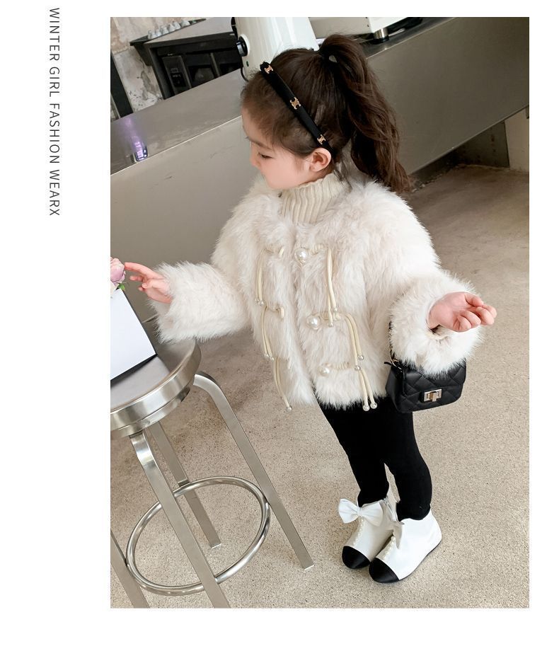 겨울 새 스타일 샤넬 스타일 모직 스웨터 아기 소녀 긴 소매 진주 버클 코트 어린이 한국 스타일 우아한 퀼트 탑스토어 가기