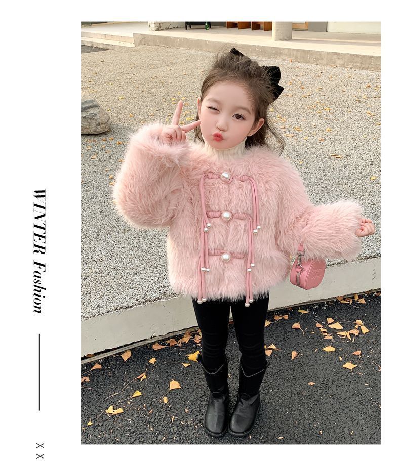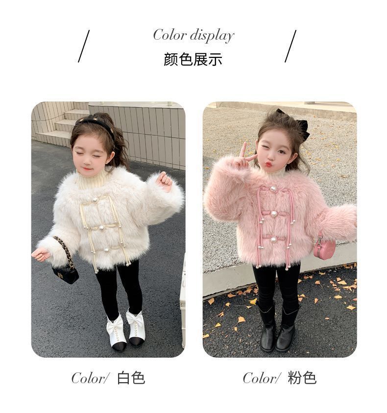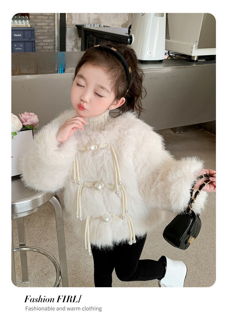 겨울 새 스타일 샤넬 스타일 모직 스웨터 아기 소녀 긴 소매 진주 버클 코트 어린이 한국 스타일 우아한 퀼트 탑