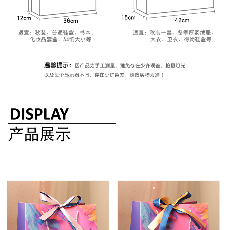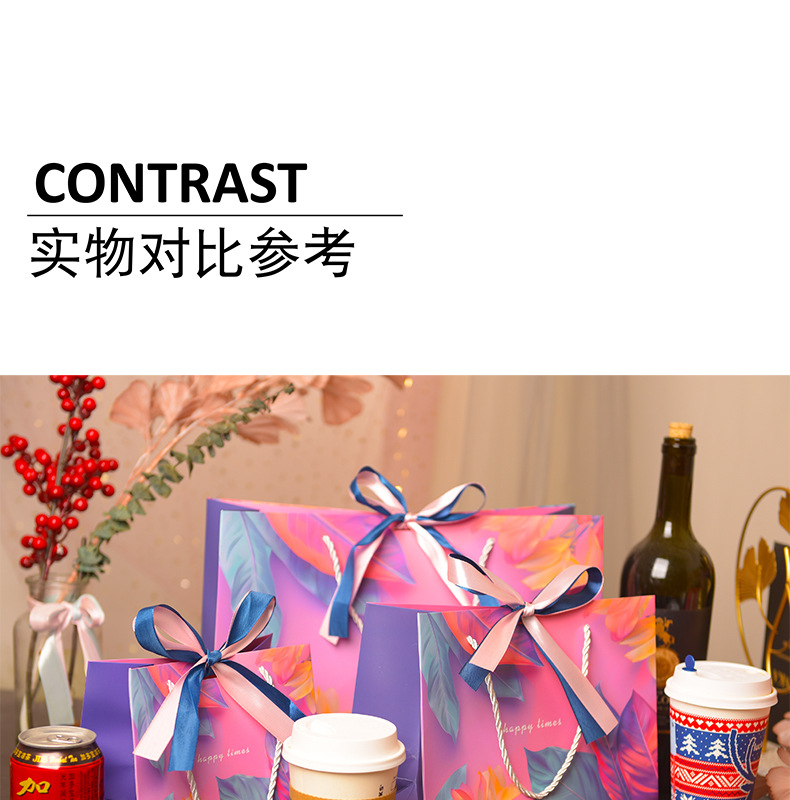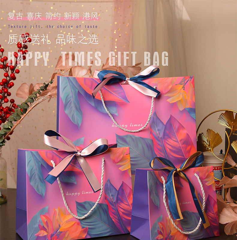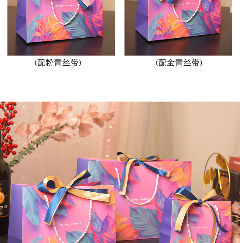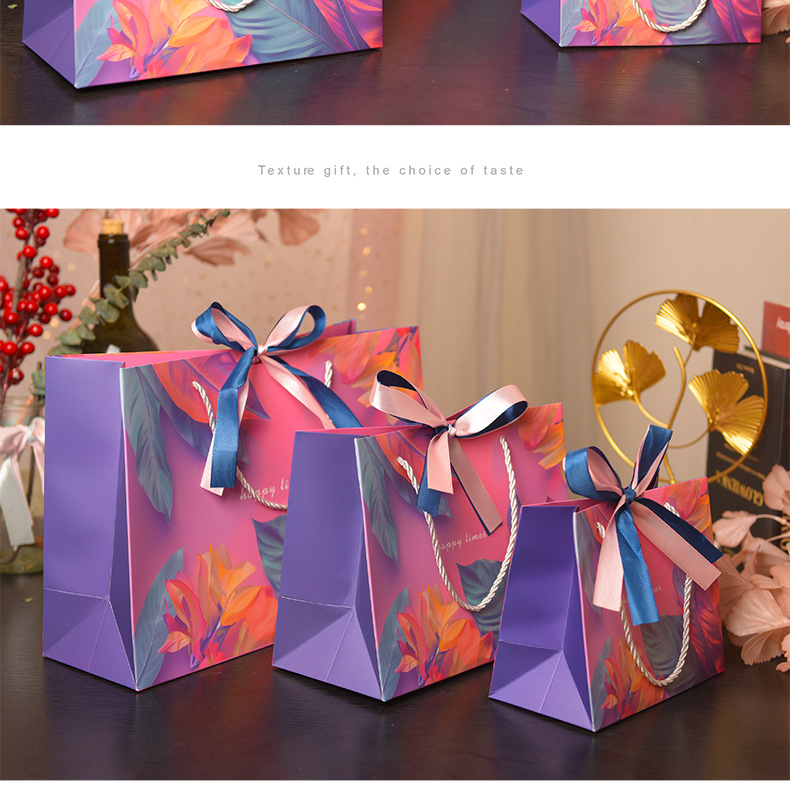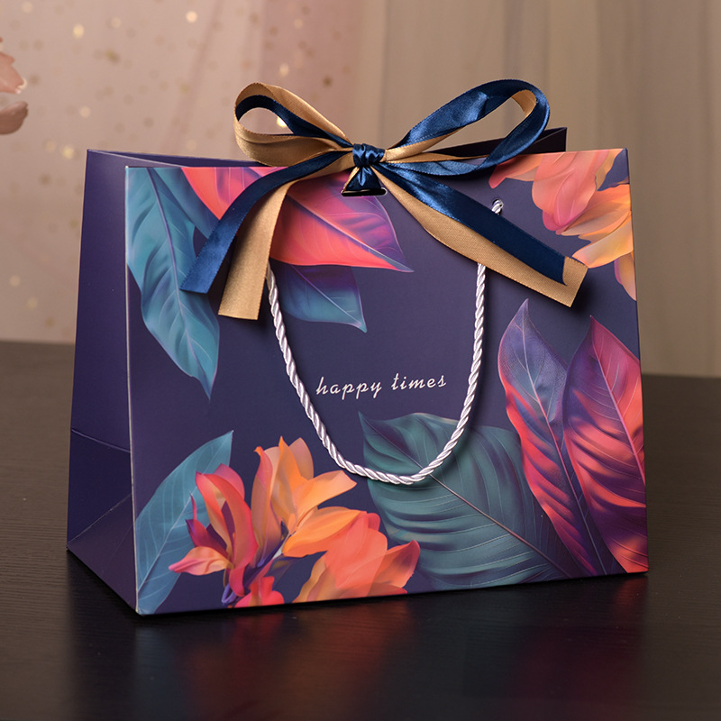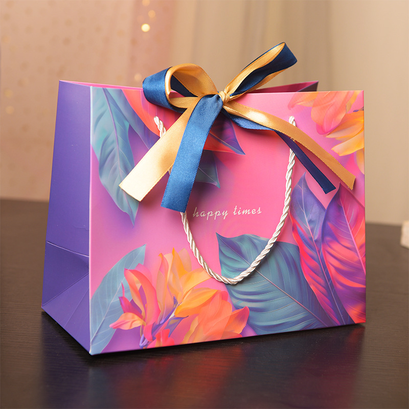 다채로운 선물 가방 크로스 국경 핸드백 화장품 포장 가방 유니버설 종이 가방 더블 리본
