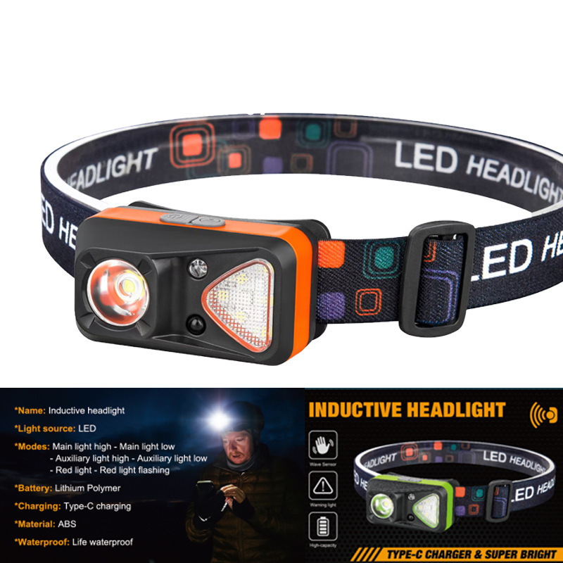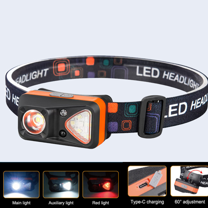 국경 간 새로운 밝은 헤드 라이트 충전식 led 야간 손전등 야간 낚시 유도 미니 빨간색 경고등스토어 가기