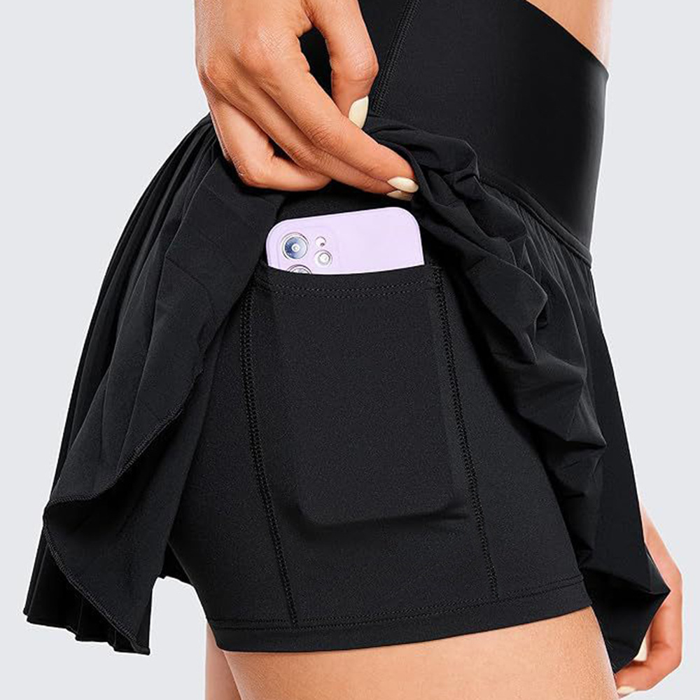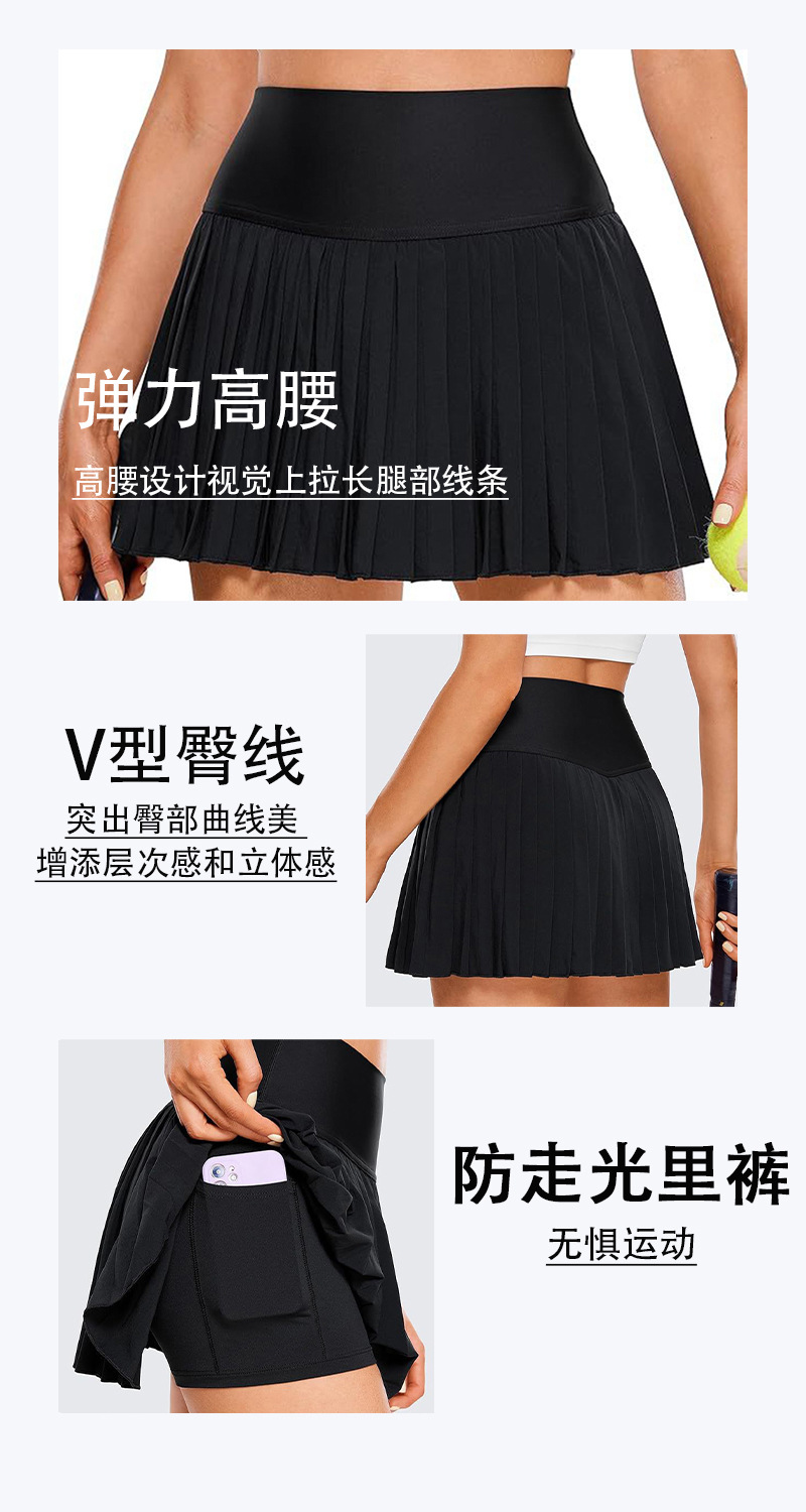 아코디언 플리츠 스커트 여성용 런닝 피트니스 통기성 노출방지 야외 속건 스커트 팬츠 테니스 스커트