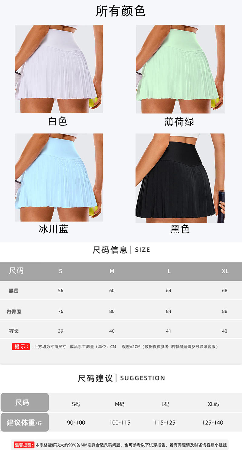 아코디언 플리츠 스커트 여성용 런닝 피트니스 통기성 노출방지 야외 속건 스커트 팬츠 테니스 스커트스토어 가기