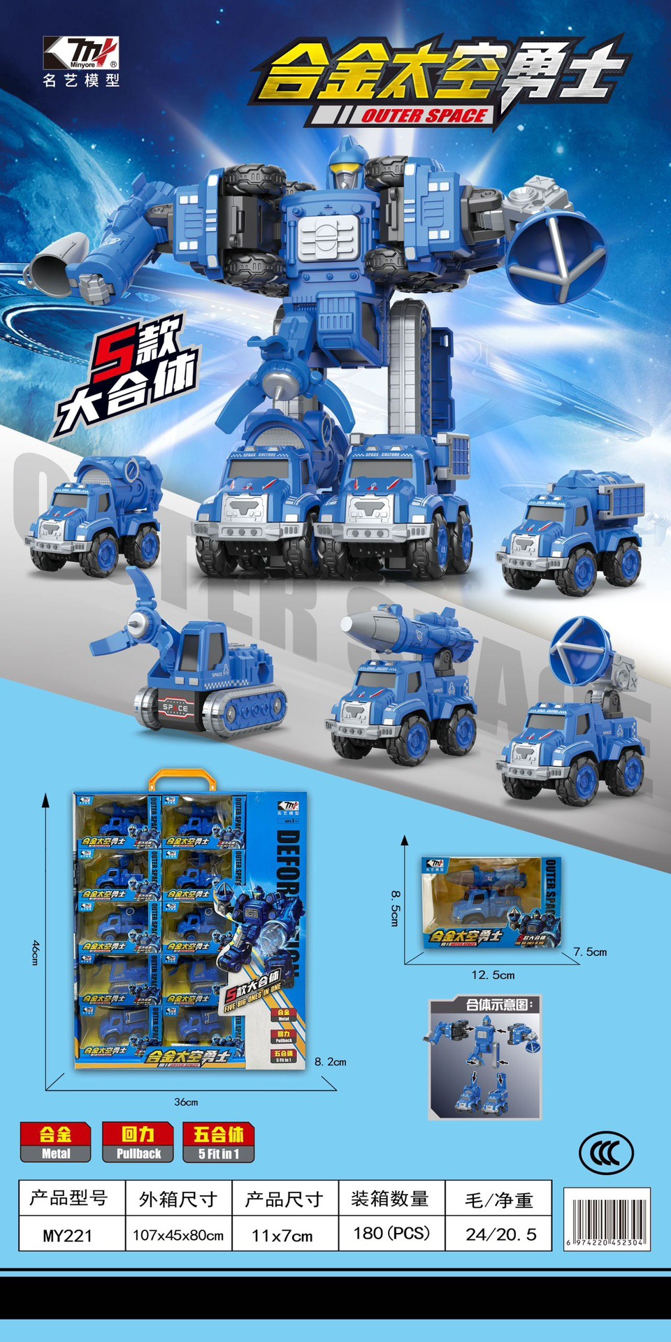 MY221 合金材質太空車戰隊 五合體 兩總變形狀態(5款混裝)