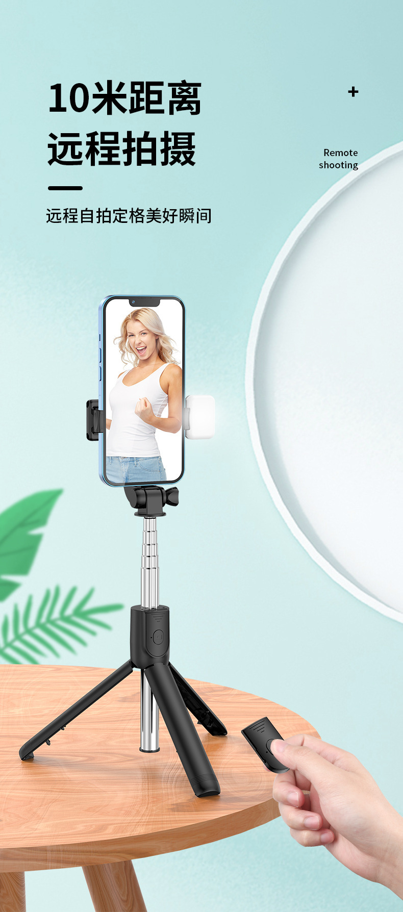 공장 직접 휴대 전화 블루투스 셀카 스틱 삼각대 빛 채우기 라이트 셀카 스틱 미니 휴대용 휴대용 카메라 아티팩트스토어 가기