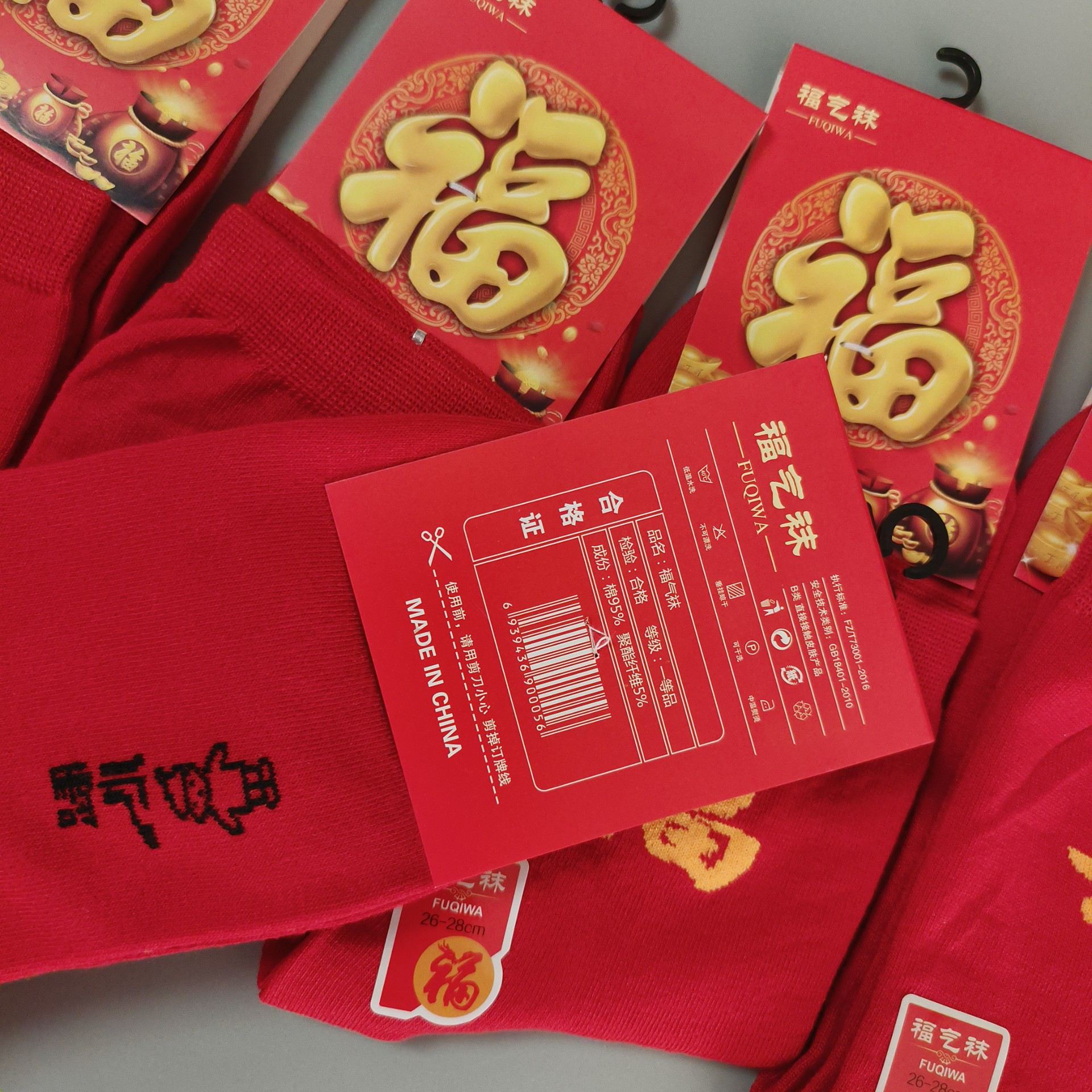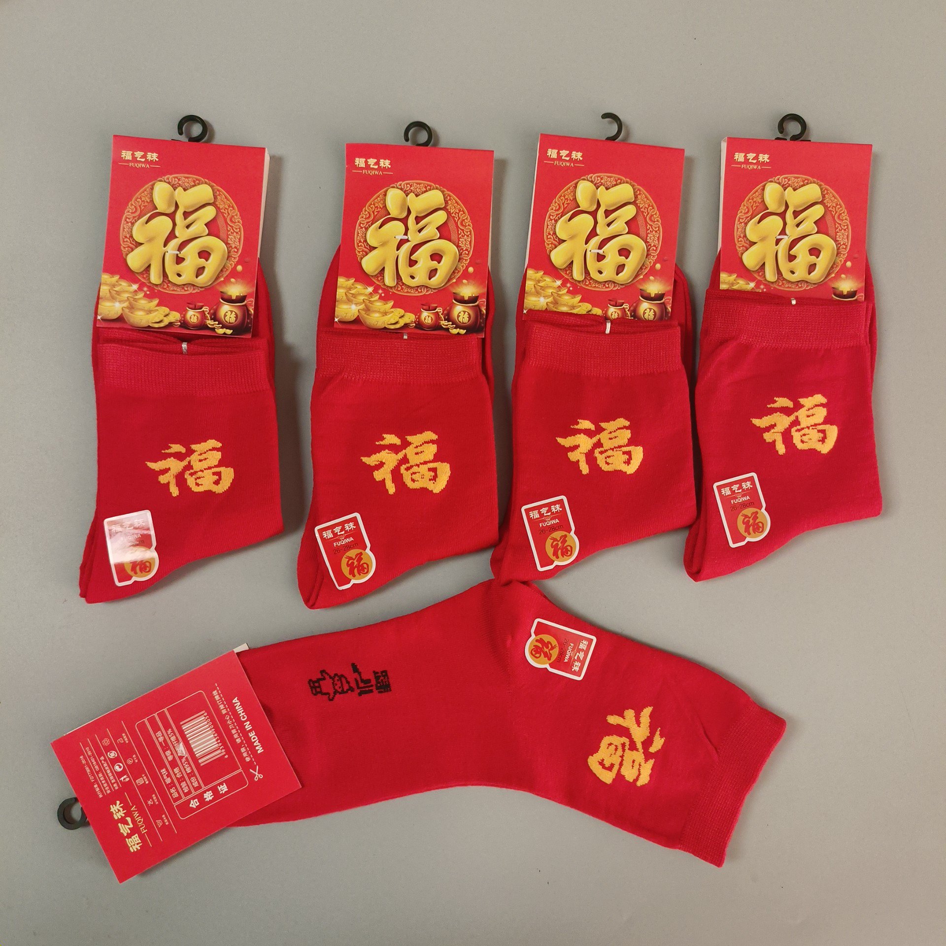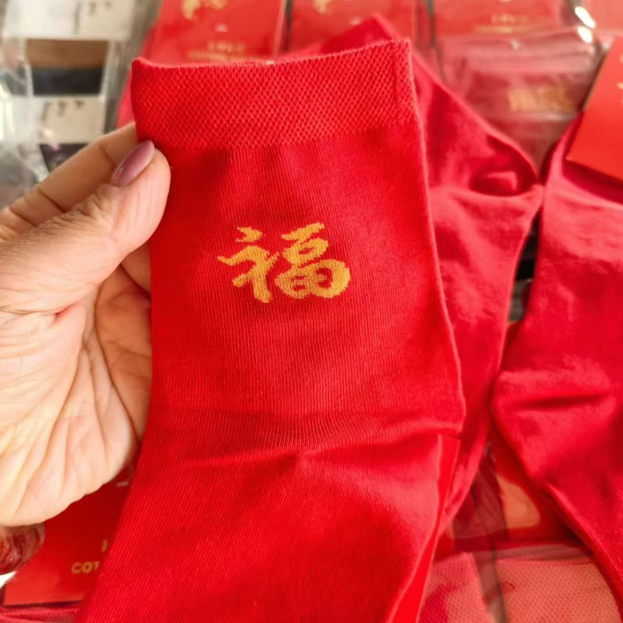 가을 겨울 신상품, 본년을 위한 중목형 빨간 면양말, 설날, 결혼식, 축하용, 행운의 글자가 새겨진 빨간 양말, 남녀 커플용스토어 가기