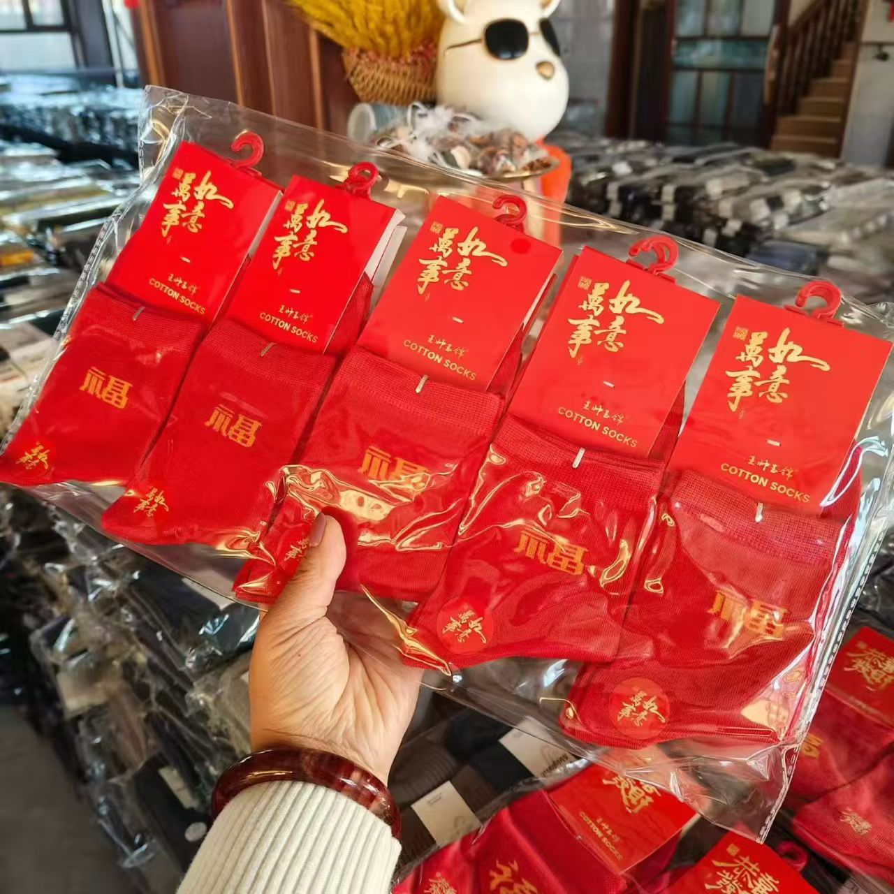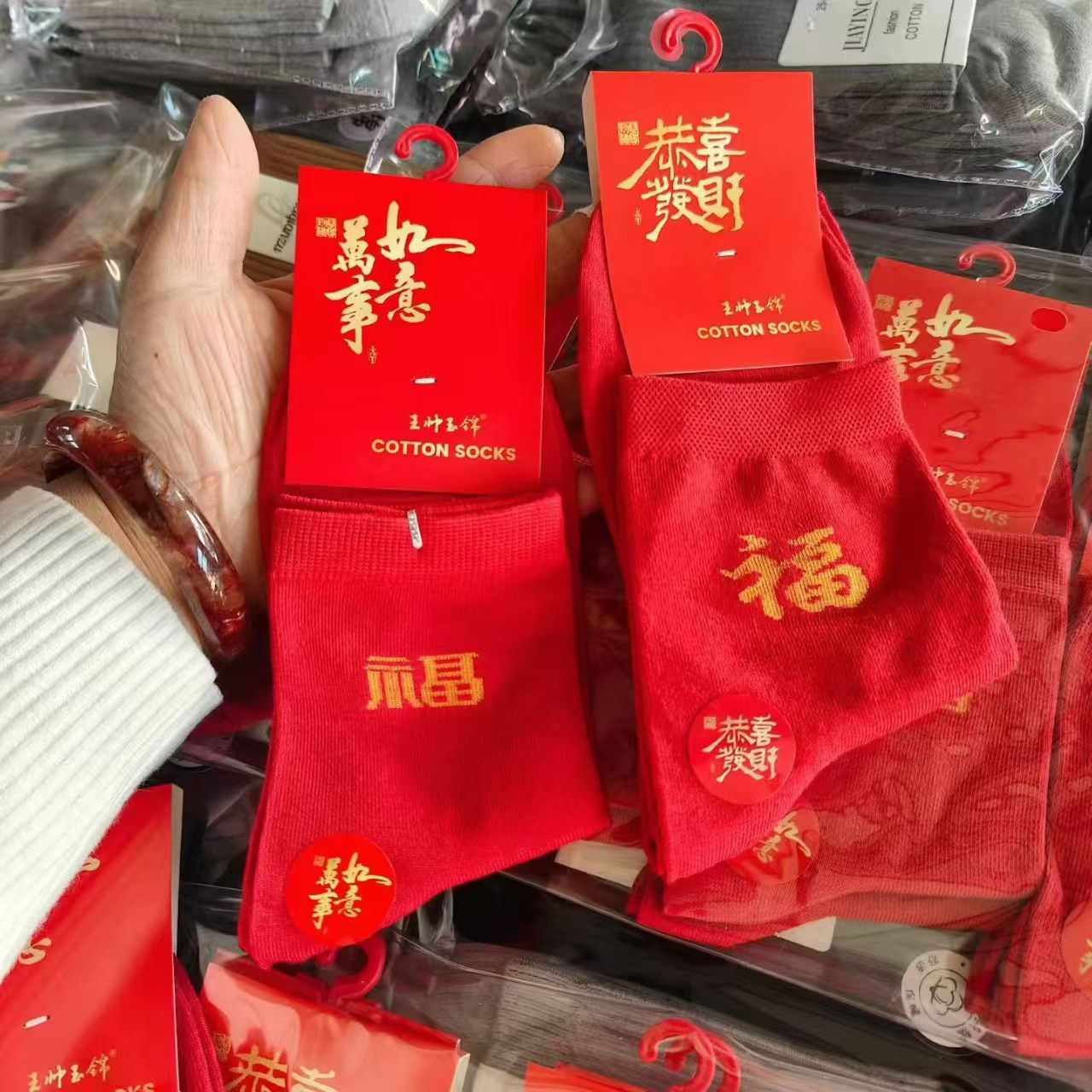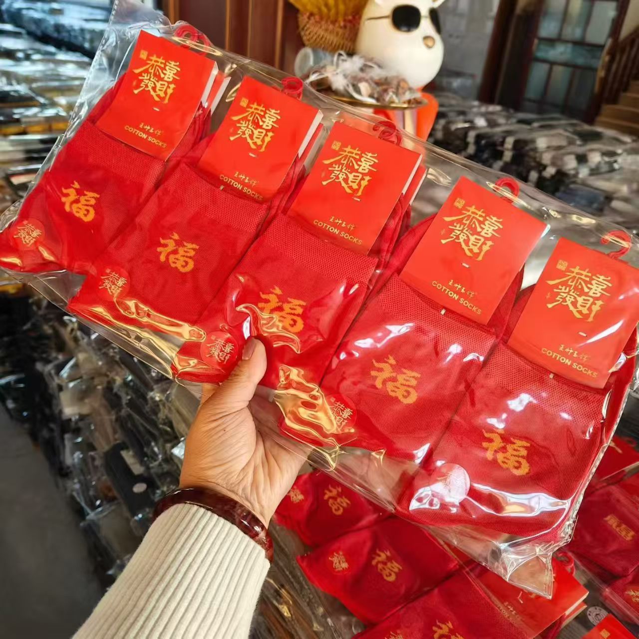 가을 겨울 신상품, 본년을 위한 중목형 빨간 면양말, 설날, 결혼식, 축하용, 행운의 글자가 새겨진 빨간 양말, 남녀 커플용스토어 가기