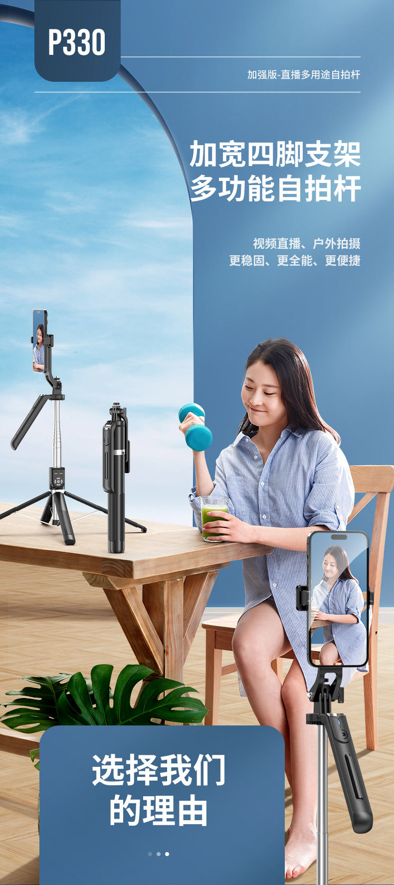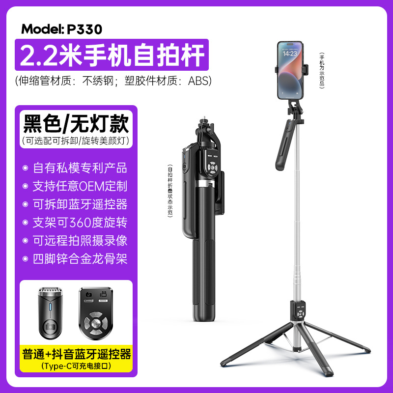 맞춤형 P330 확장 휴대 전화 셀카 스틱 듀얼 블루투스 원격 제어 라이브 방송 스탠드 짐벌 핸들 셀카 스틱 손떨림 방지