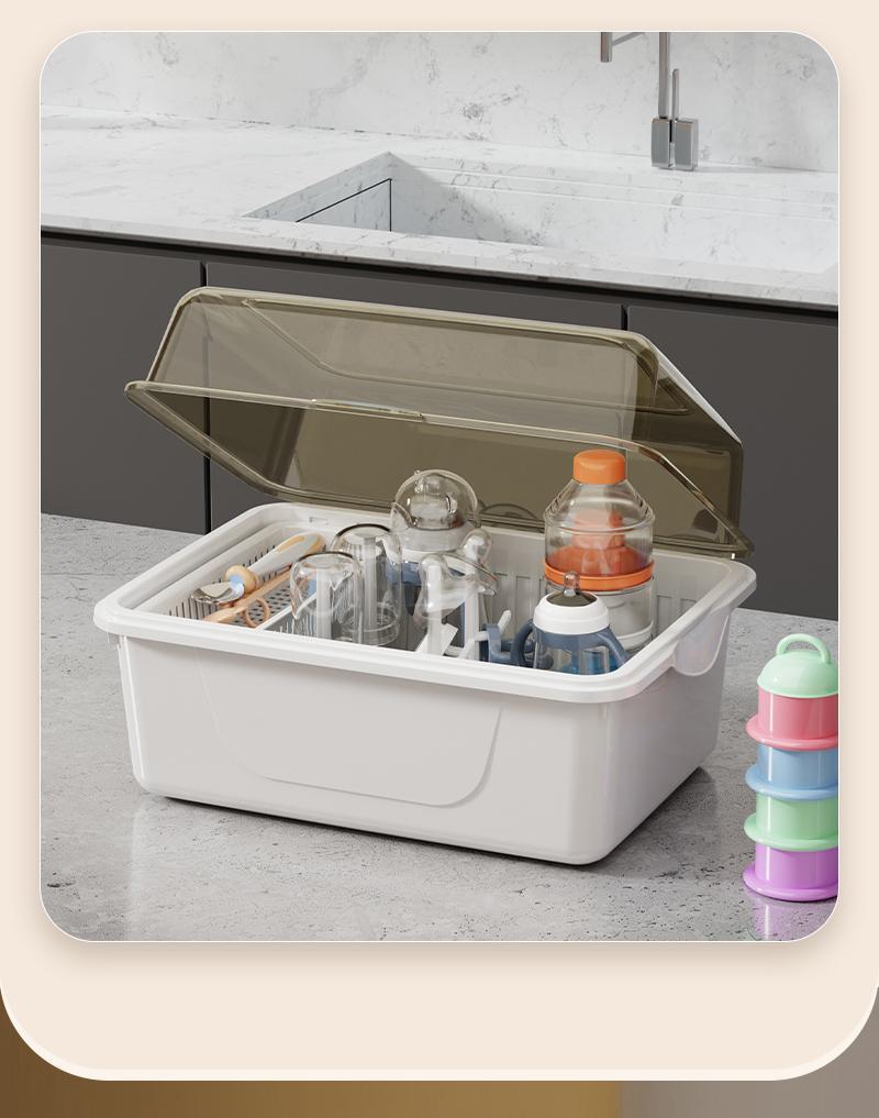 아기 먹이 병 저장 상자 그릇 젓가락 드레인 랙 아기 제품 신생아 식품 식기 방진 보관 상자 뚜껑스토어 가기