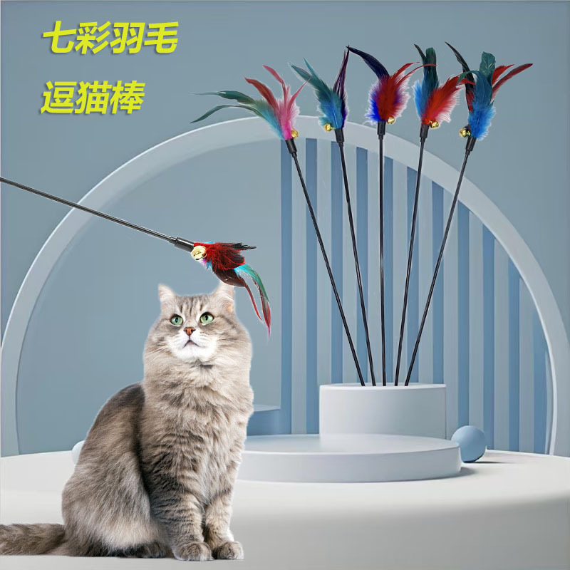 애완 동물 재미 고양이 스틱 고양이 장난감 대화 형 엔터테인먼트 재미있는 고양이 장난감 애완 동물 장난감 다채로운 깃털 장난감스토어 가기