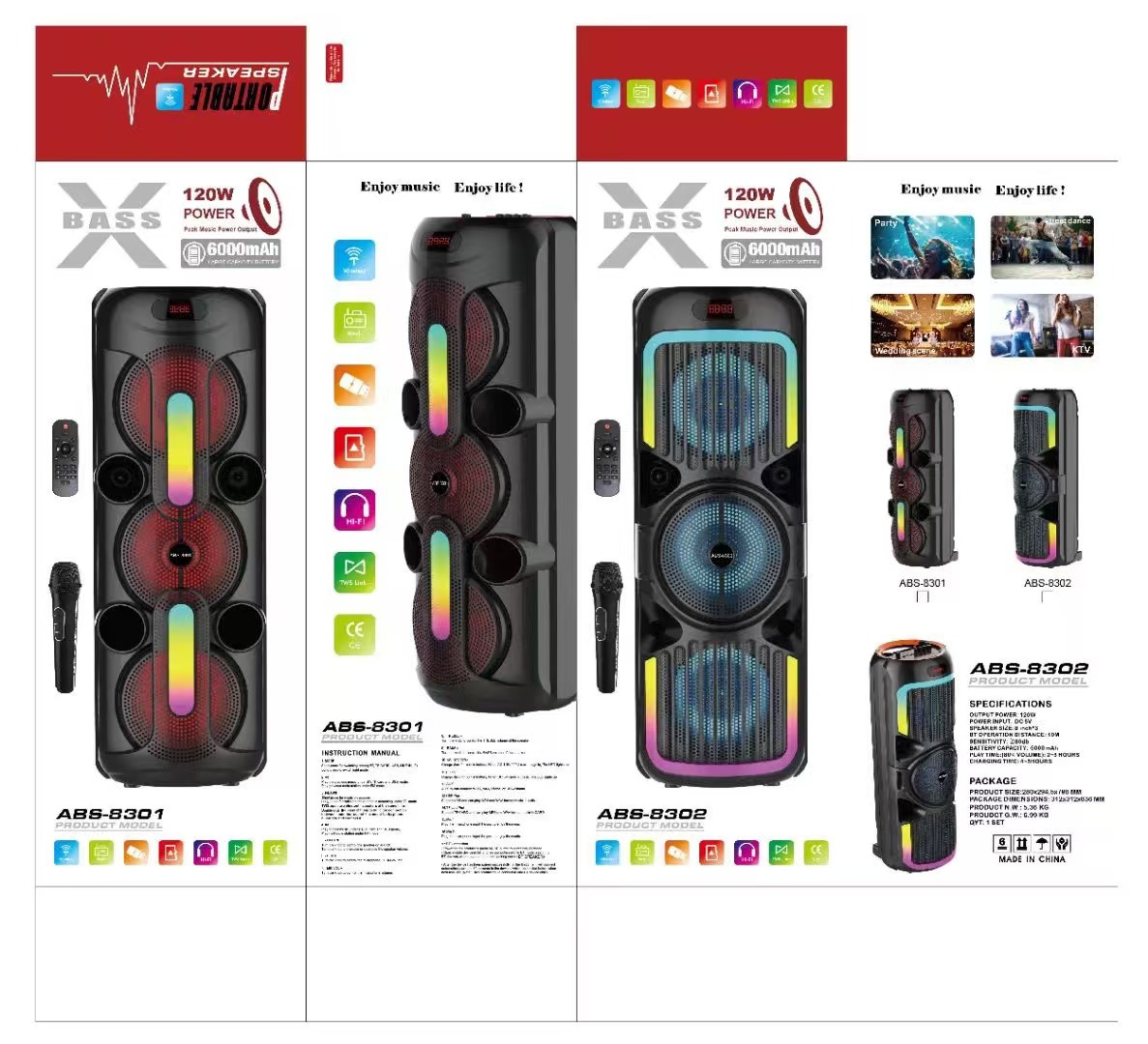 ABS-8301 manufacturer supplies professional square dance speaker, outdoor K singer cart speaker with wireless microphone