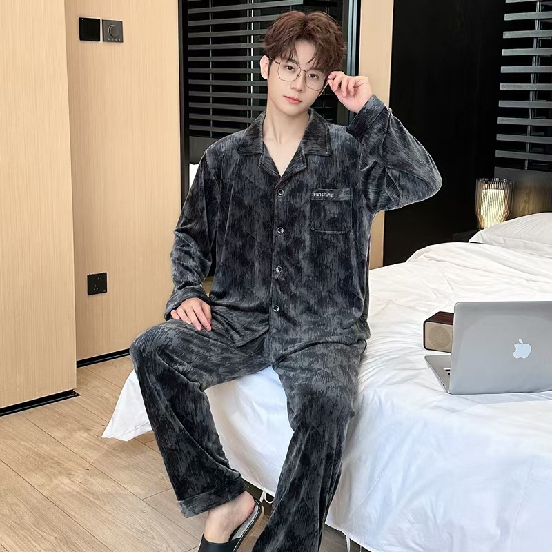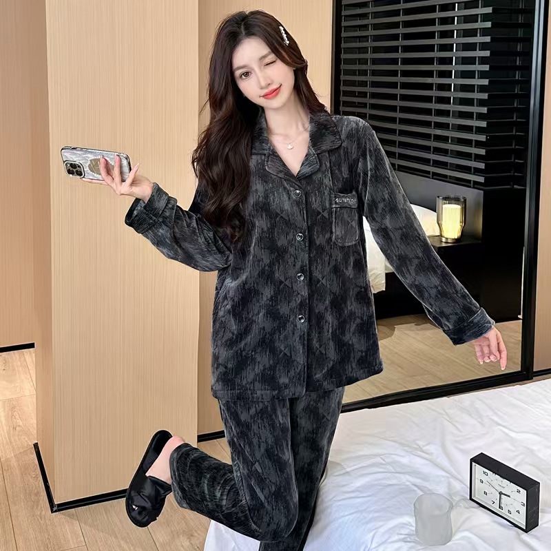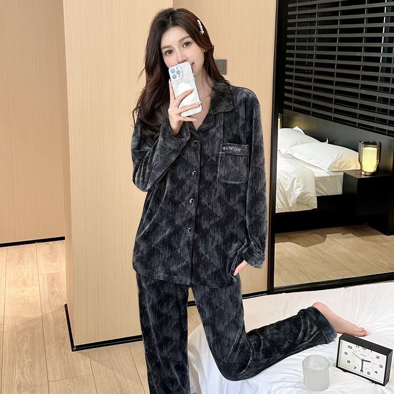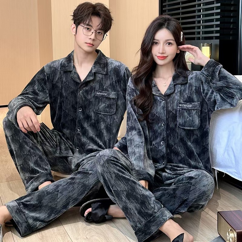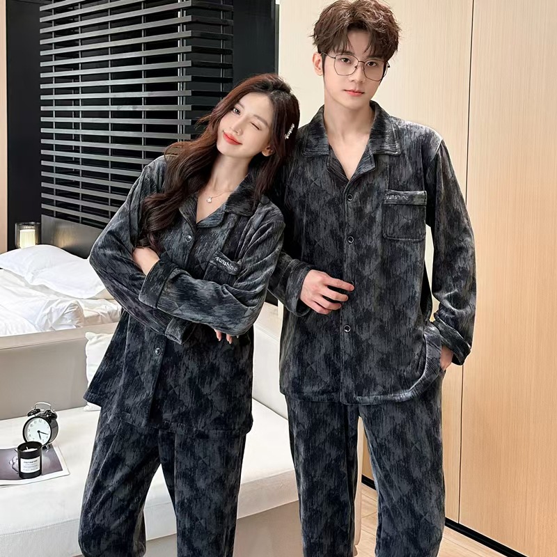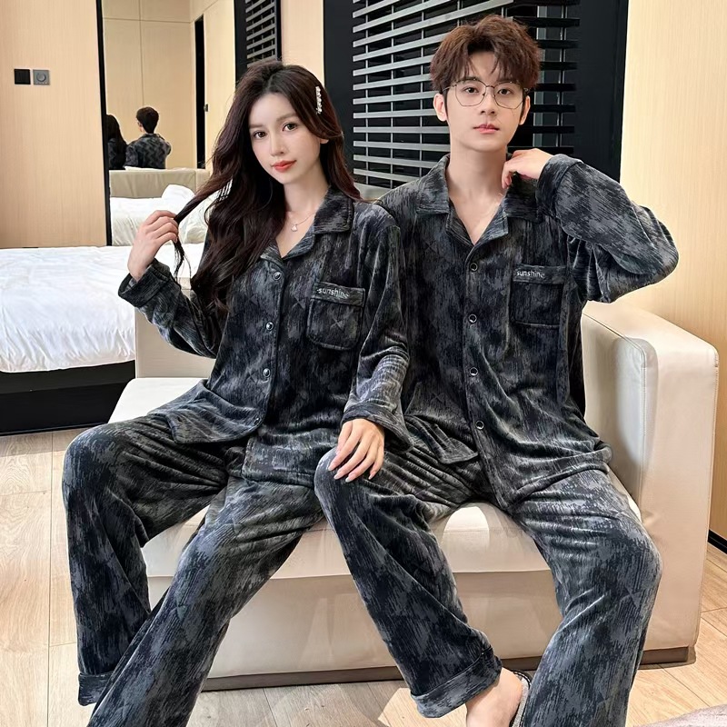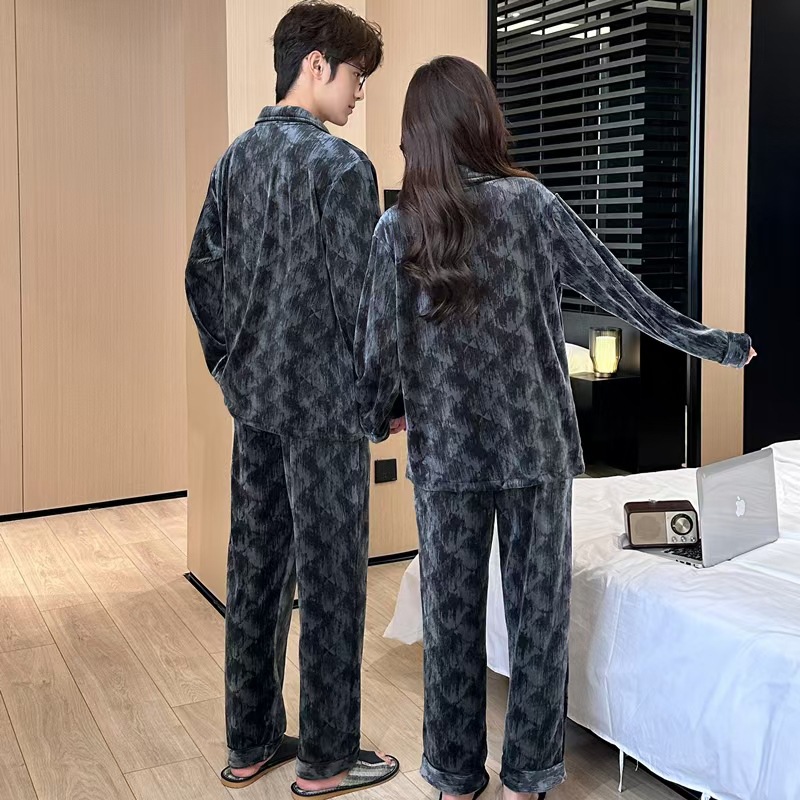 24 개의 새로운 커플 아일랜드 벨벳 더블 바지 포켓 패션 세트 파자마 긴 소매 남성 및 여성 홈 의류 소스 제조업체