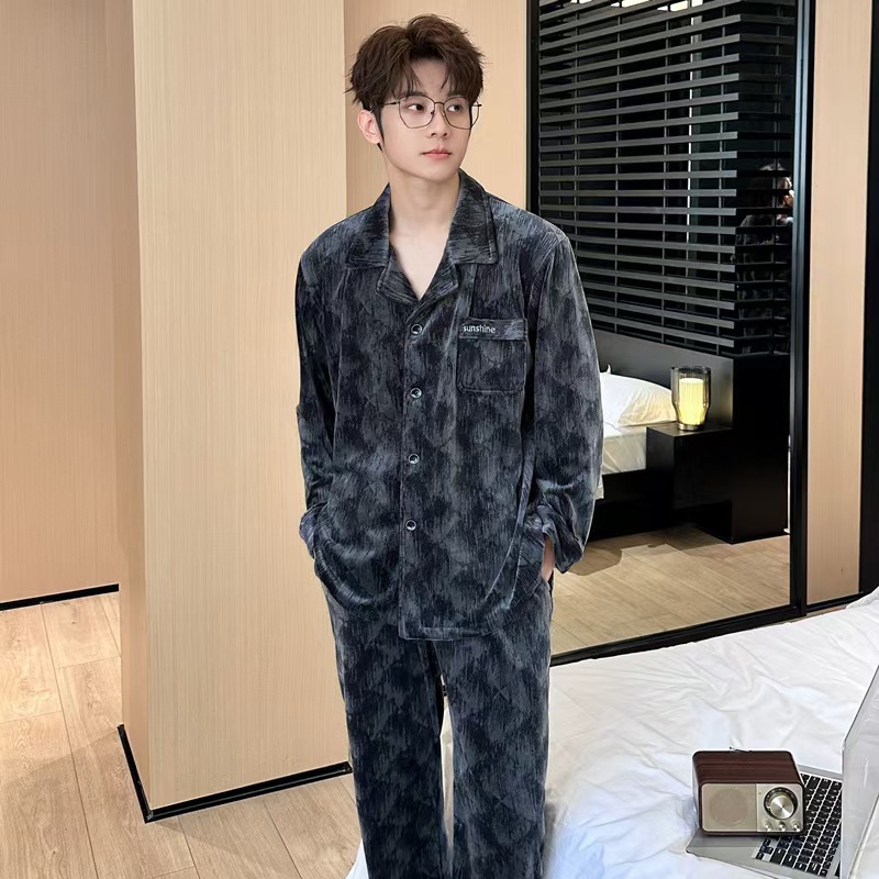 24 개의 새로운 커플 아일랜드 벨벳 더블 바지 포켓 패션 세트 파자마 긴 소매 남성 및 여성 홈 의류 소스 제조업체스토어 가기
