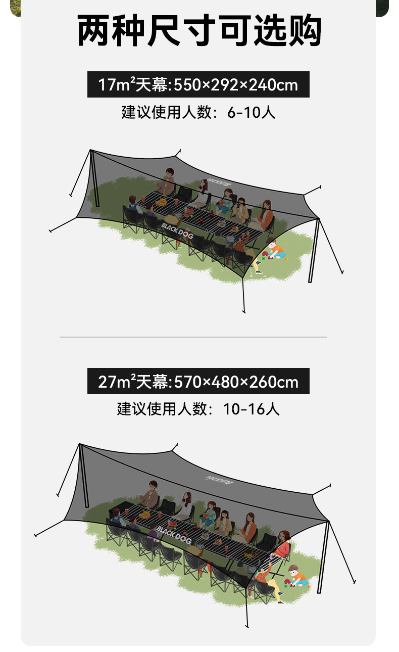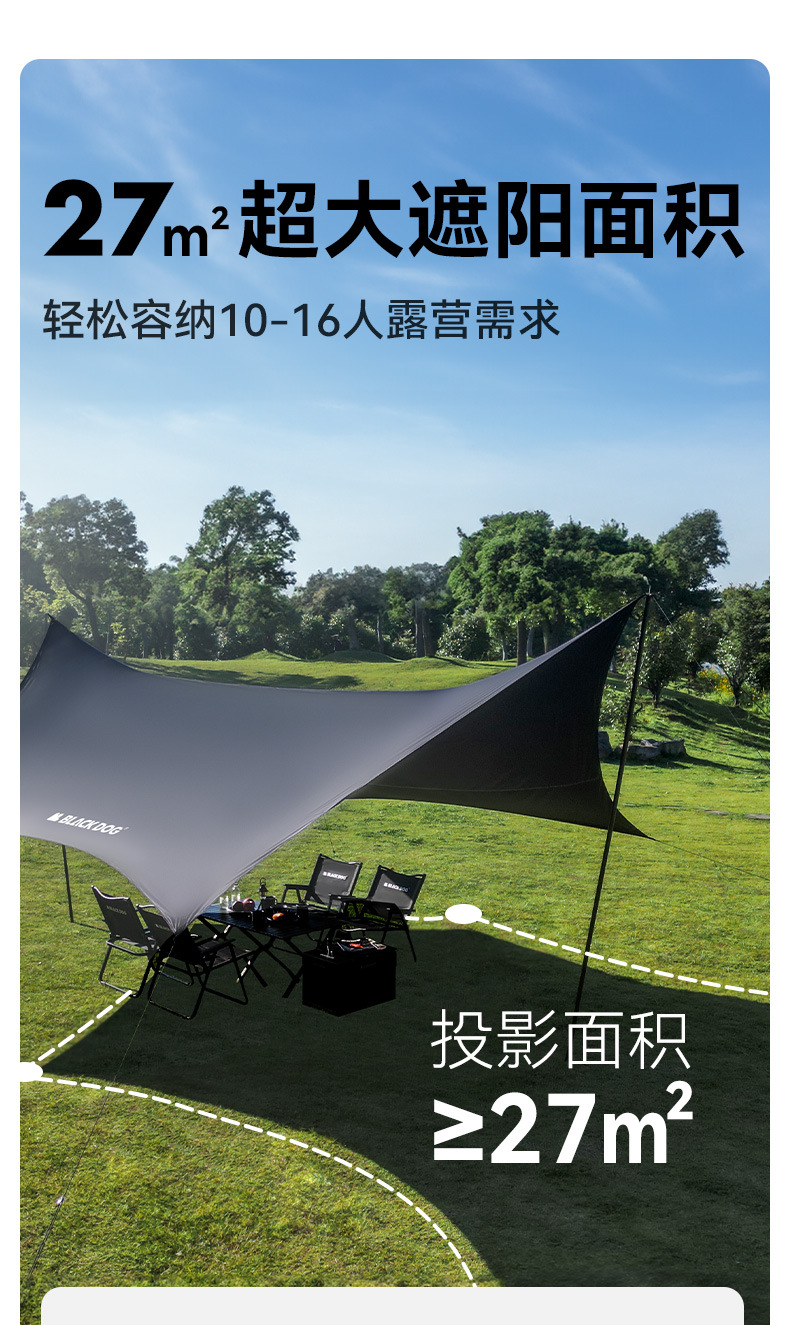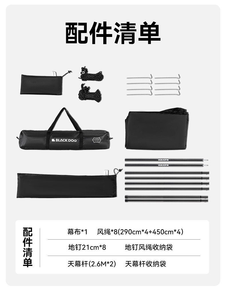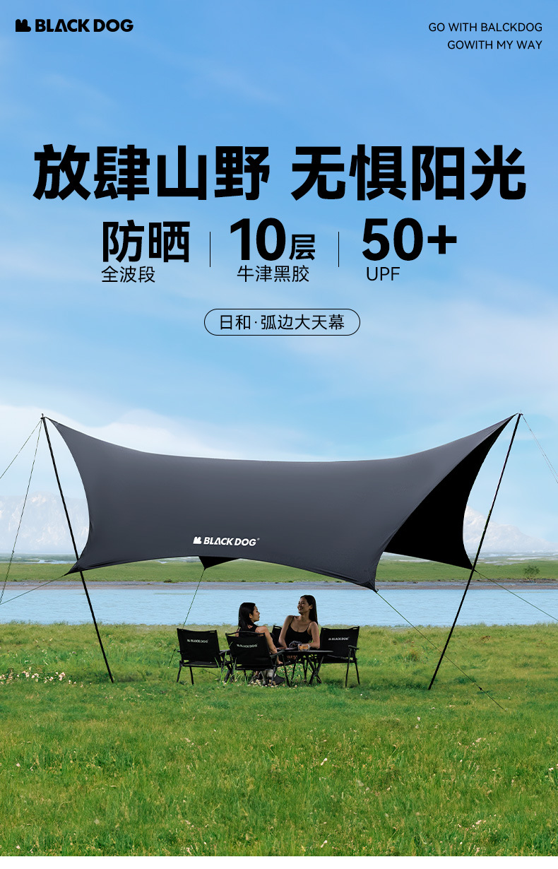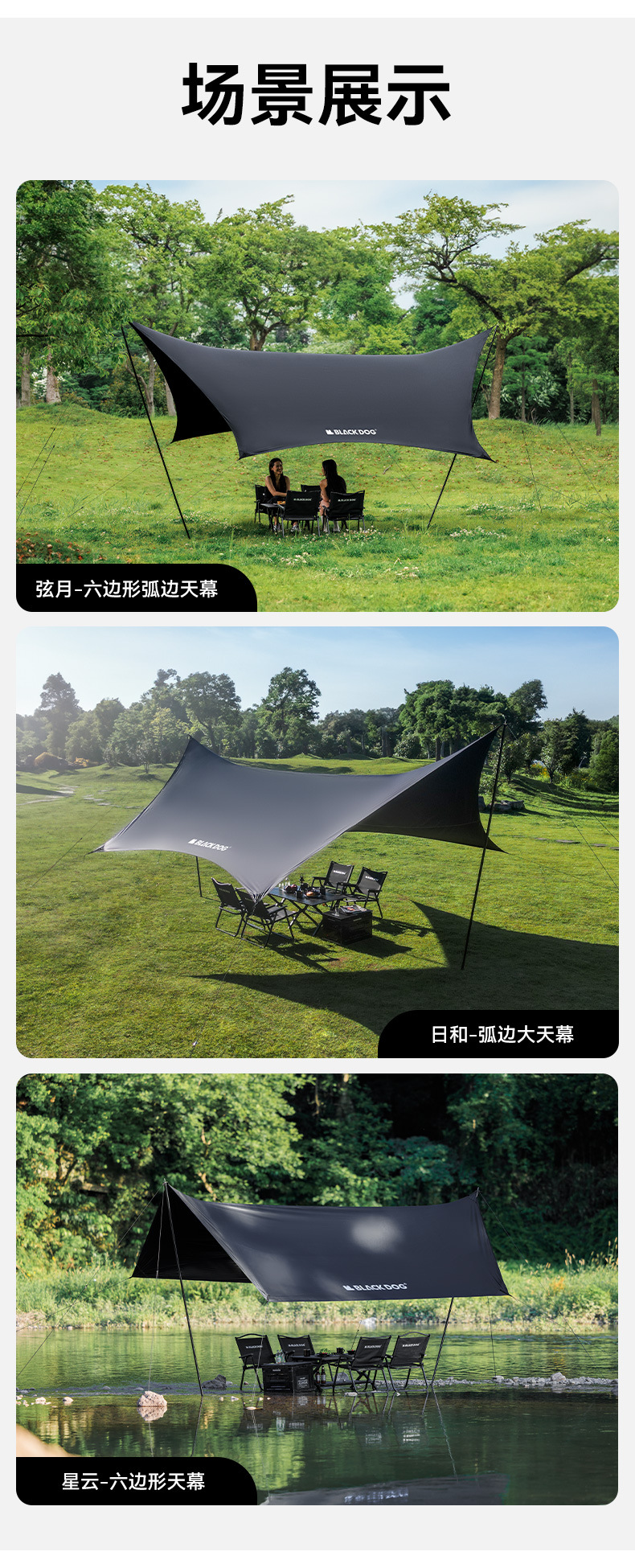 [태양과 대형 비닐 캐노피] 블랙독 검은 개 비닐 캐노피 야외 검은 캠핑 텐트 차양