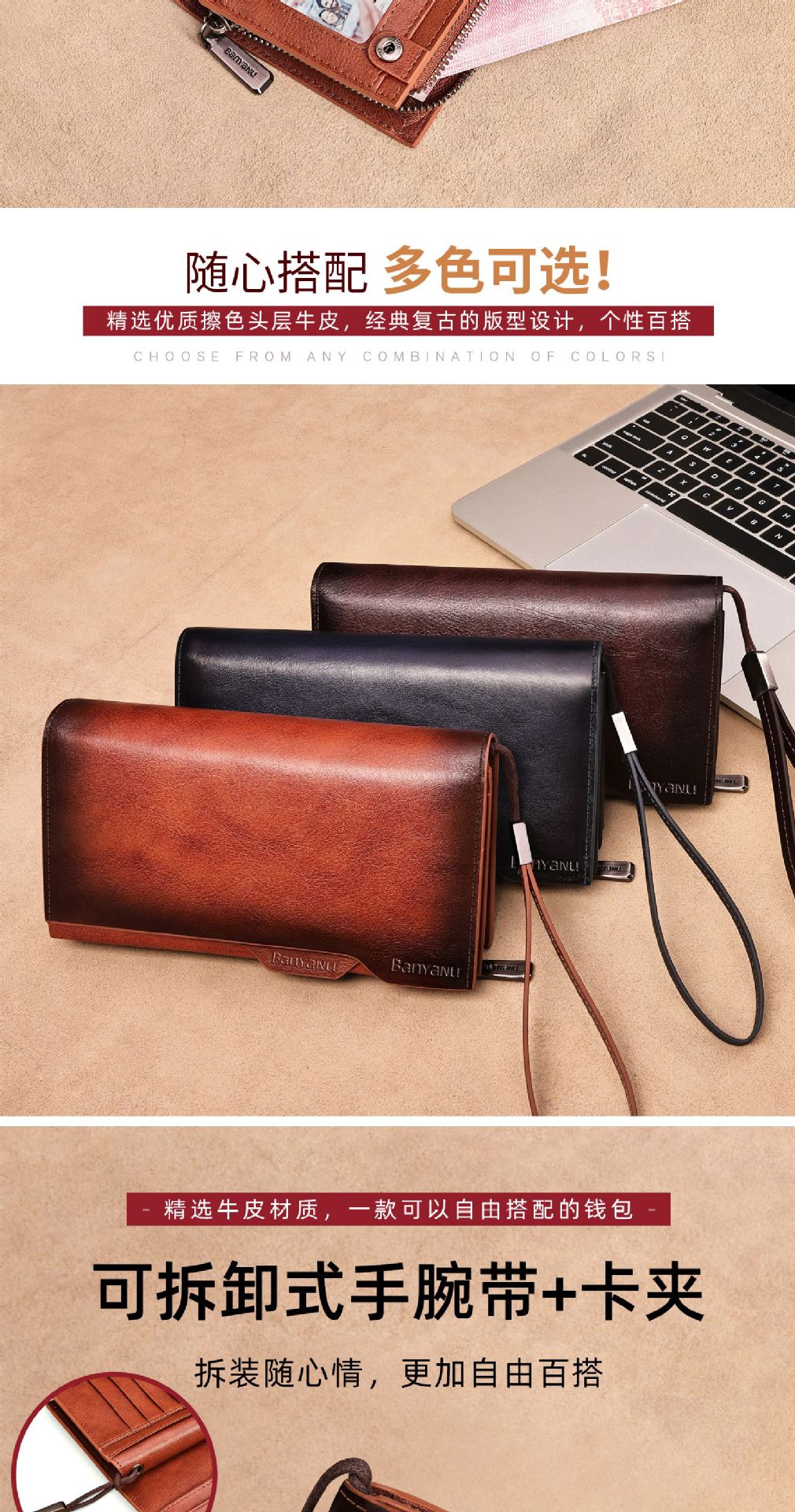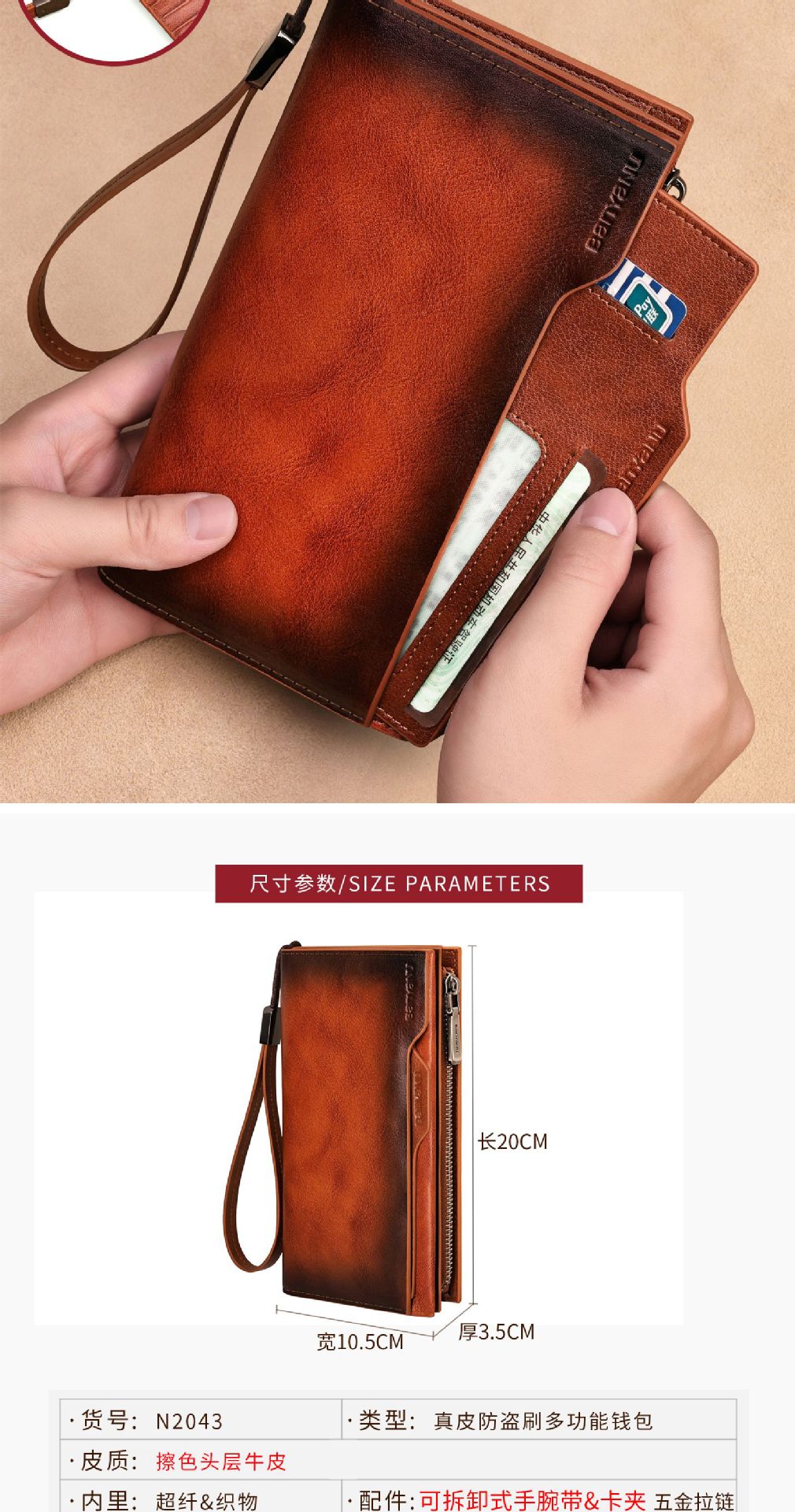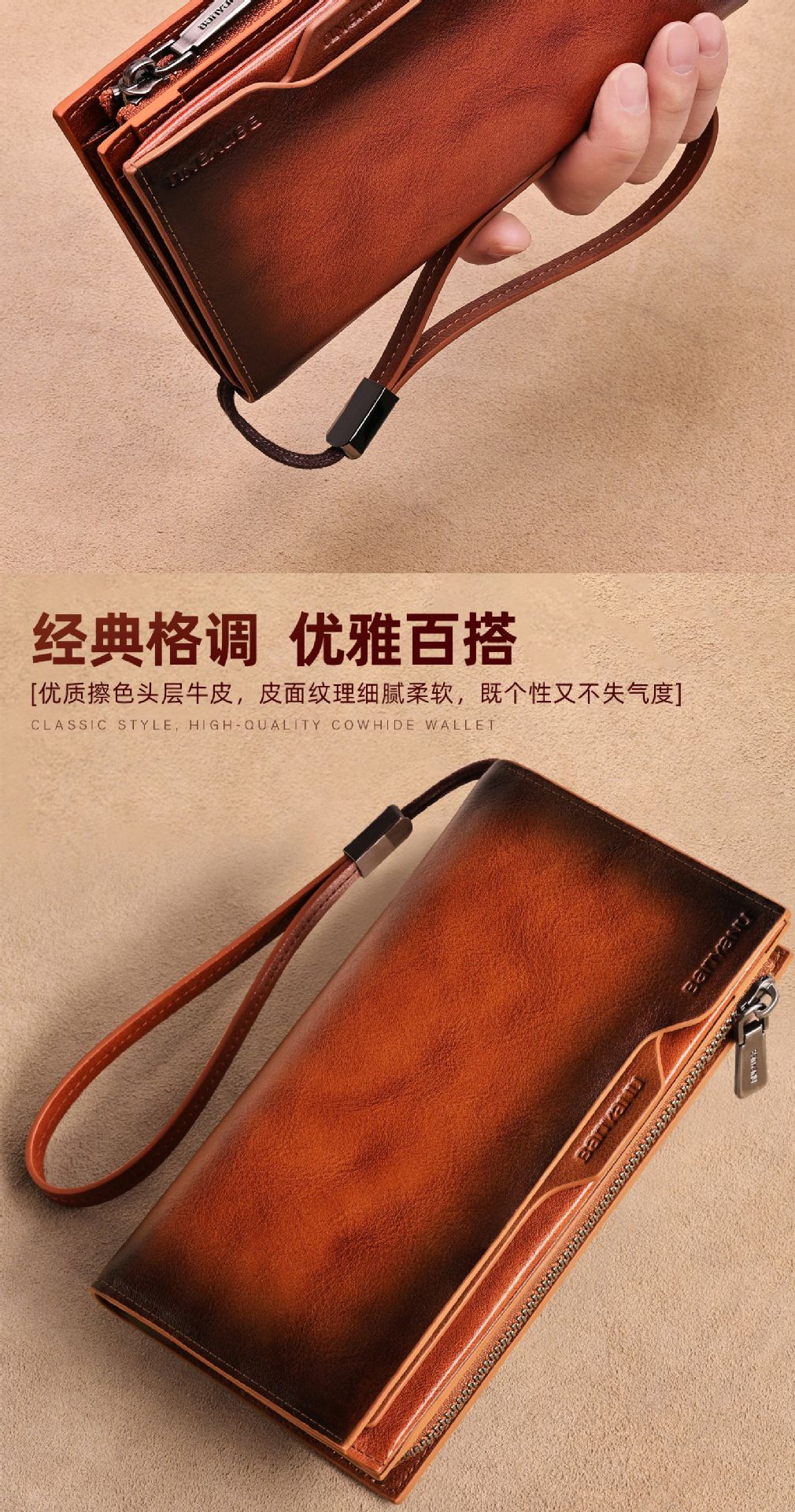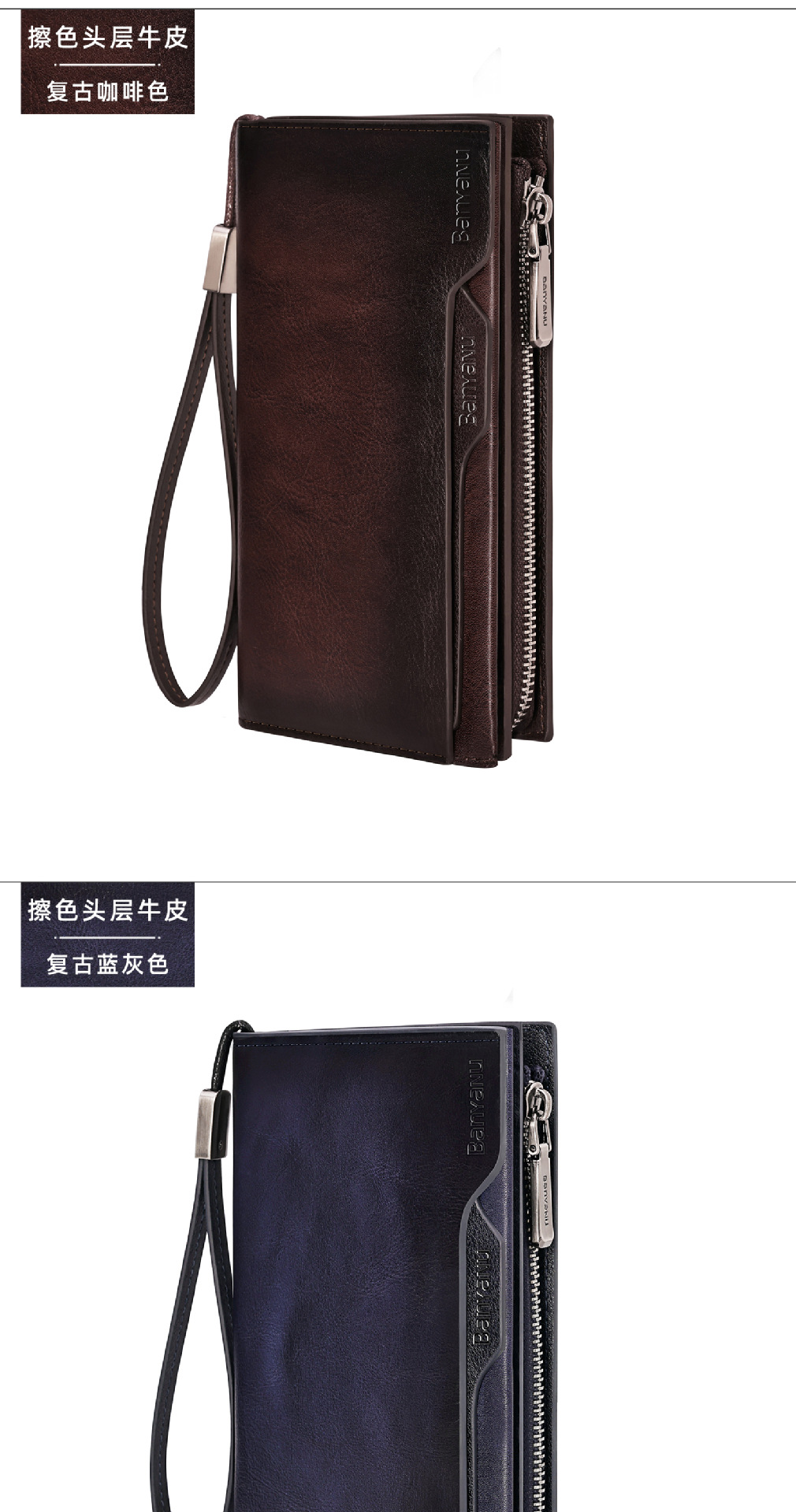 광주 반야누 가죽 공장 지갑 남자의 긴 가죽 탑 레이어 카우보이 빈티지 지갑 브랜드 도매스토어 가기
