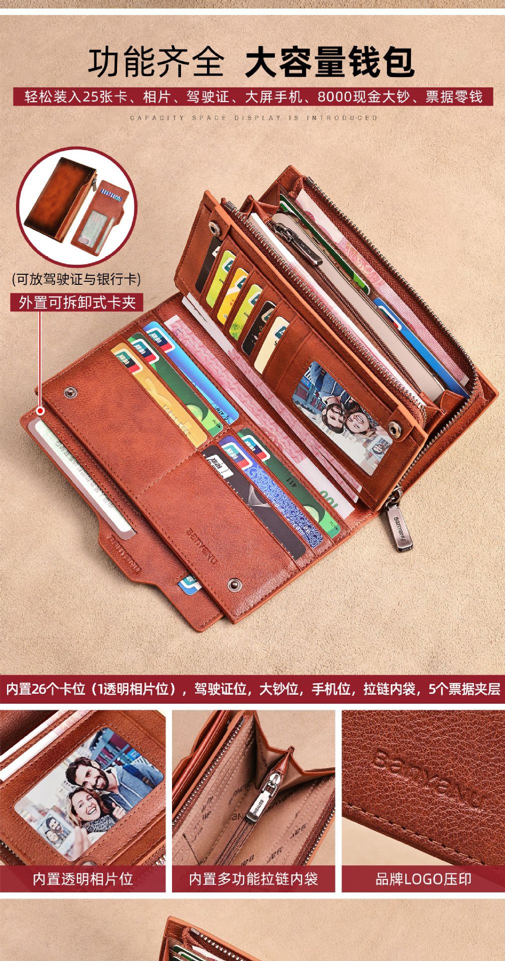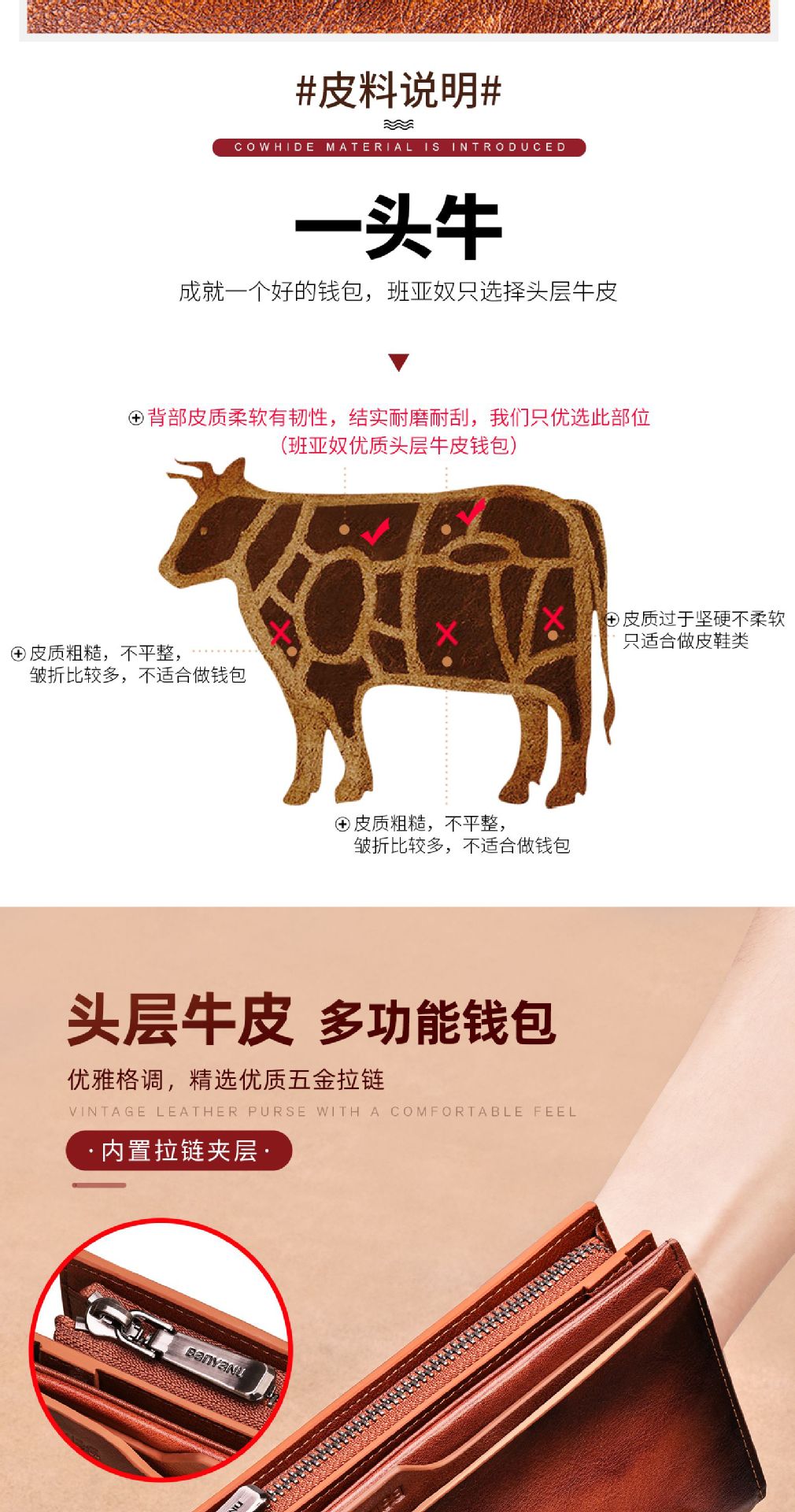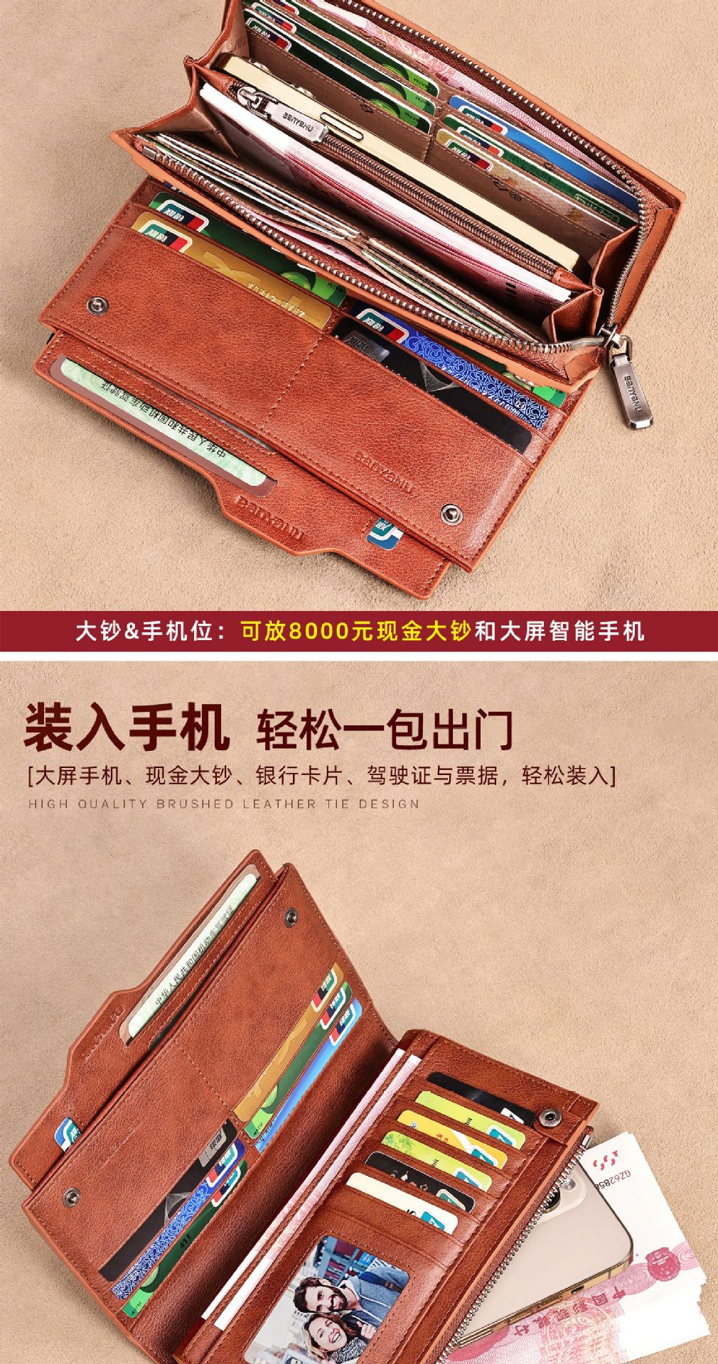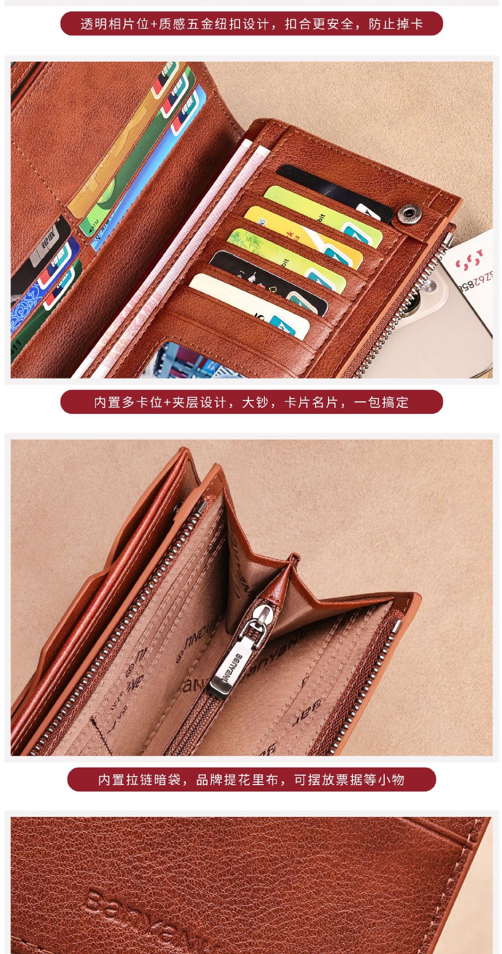 광주 반야누 가죽 공장 지갑 남자의 긴 가죽 탑 레이어 카우보이 빈티지 지갑 브랜드 도매스토어 가기