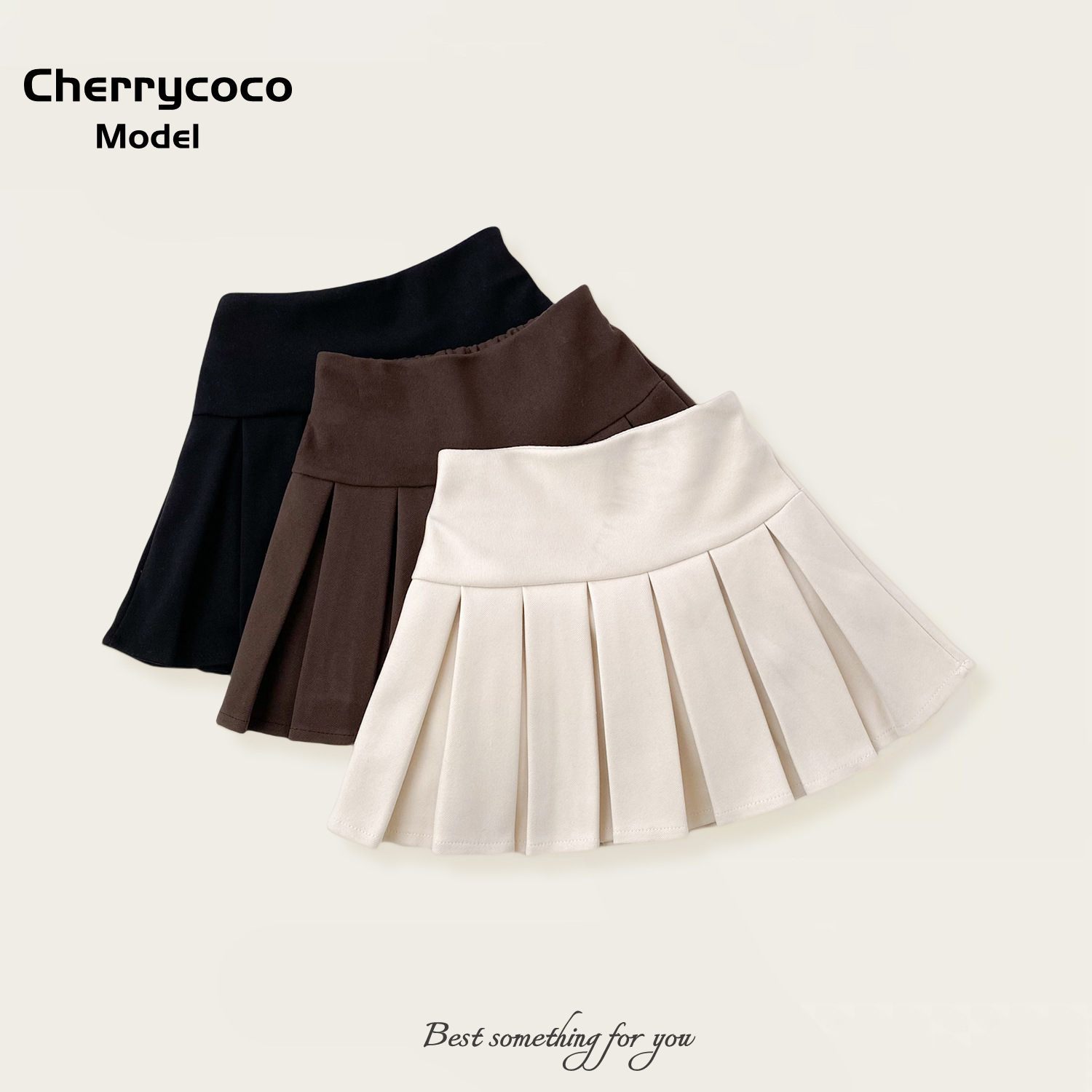 Cherrycoco 아동복 가을과 겨울 24 새로운 높은 허리 A 라인 모직 주름 치마 기모 소녀 절반 길이 스커트 패션스토어 가기