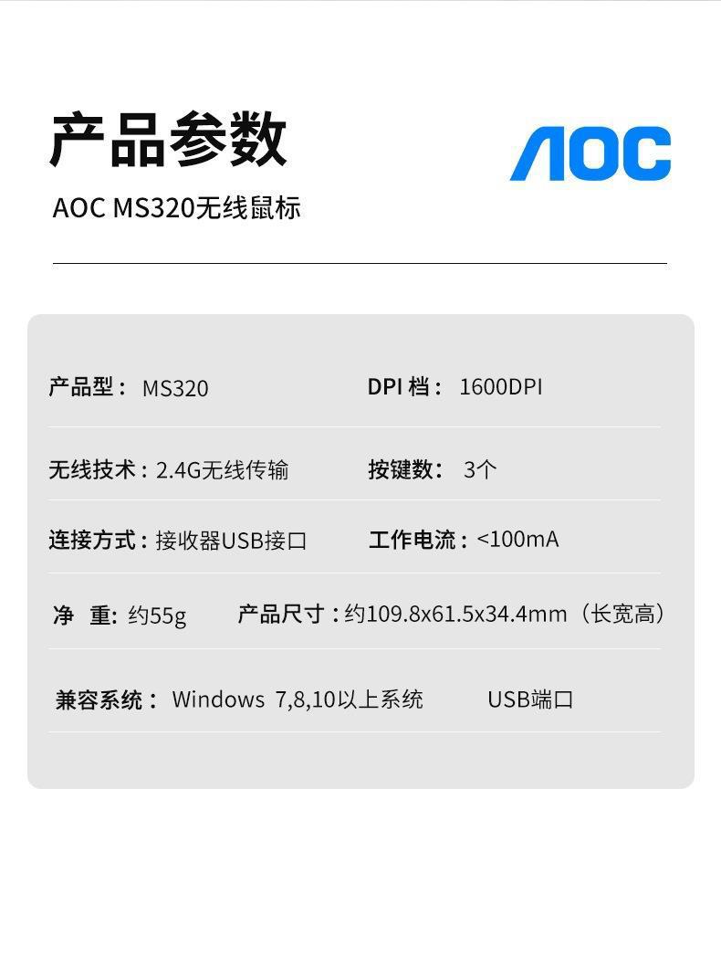 AOC MS320 2.4G 무선 마우스 노트북 기계 사무실 비즈니스 사무실 무선 마우스 제조 업체 도매스토어 가기