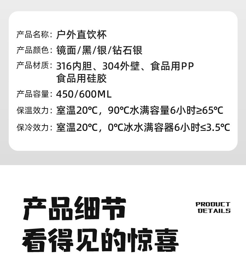316 스테인레스 스틸 휴대용 야외 승마 스포츠 등산 냄비 남녀 비즈니스 연례 회의 복지 선물 동반 선물스토어 가기