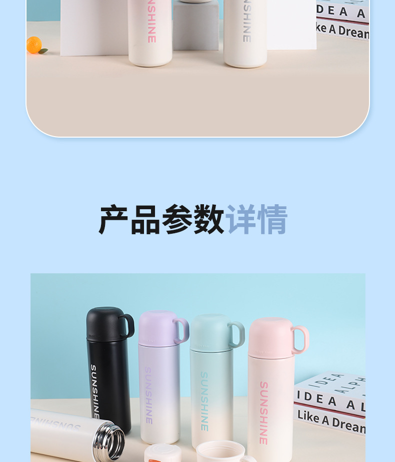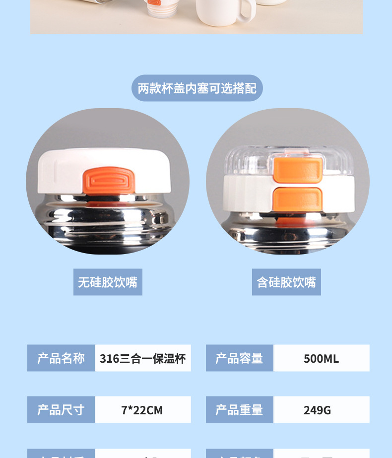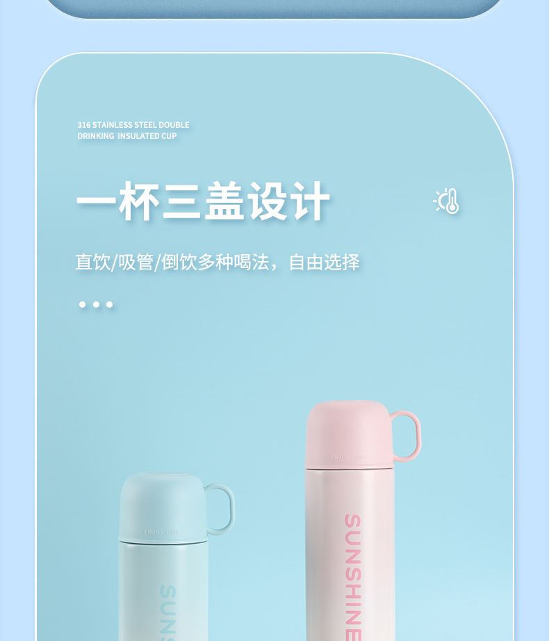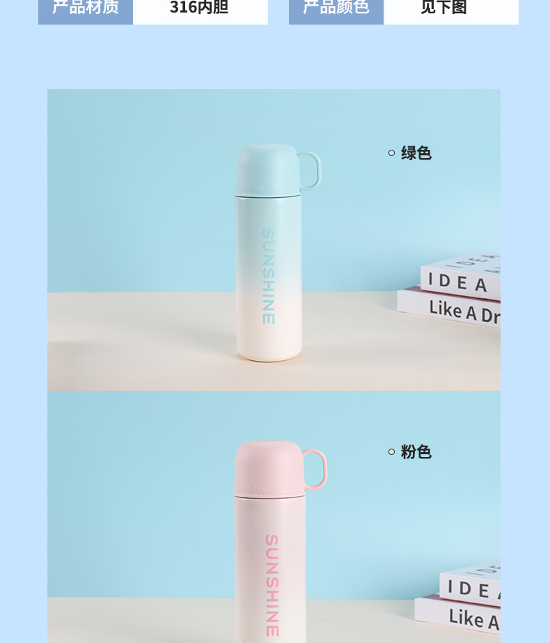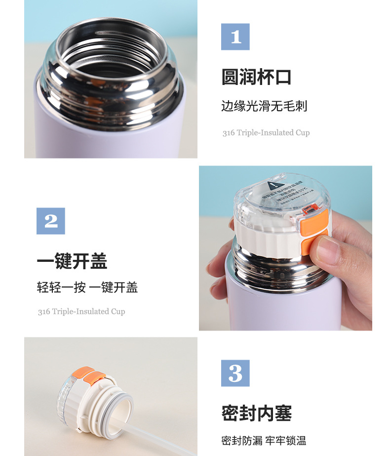 새로운 316 스테인레스 스틸 3 대 1 보온병 컵 높은 색상 가치 야외 휴대용 차 분리 바운스 컵 뚜껑