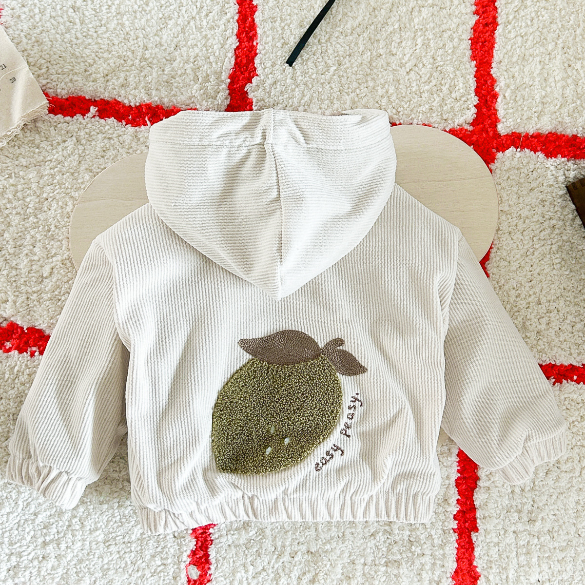 가을과 겨울 아기 귀여운 과일 패치 버튼 후드 긴 소매 기모 두꺼운 따뜻한 편안한 포켓 아기 외부스토어 가기