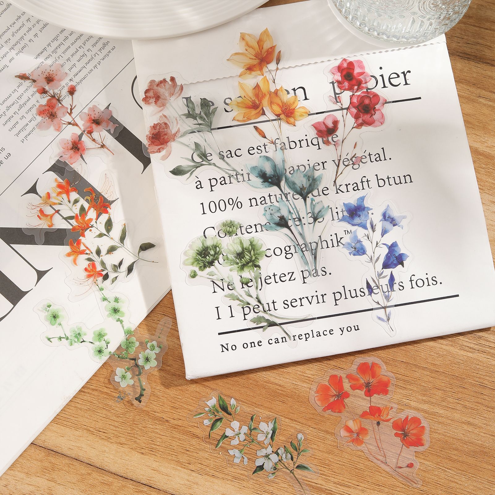 50 잉크 꽃 스티커 가방 방수 투명 PET 창조적 인 손 계정 스티커 DIY 일기 냉장고 휴대 전화 스티커