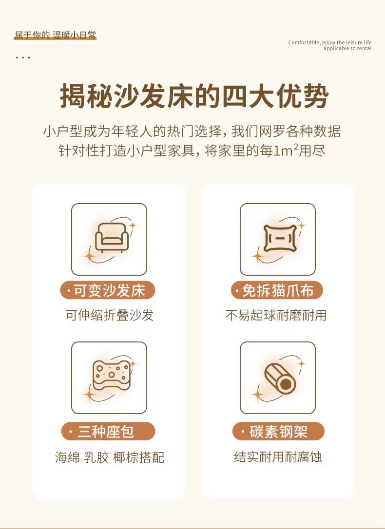 소파 침대 접기 듀얼 사용 2024 새로운 스타일 거실 싱글 발코니 다기능 침대 작은 아파트 인터넷 기념 텔레스코픽 침대스토어 가기