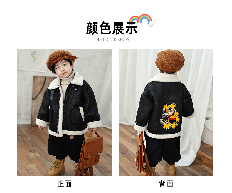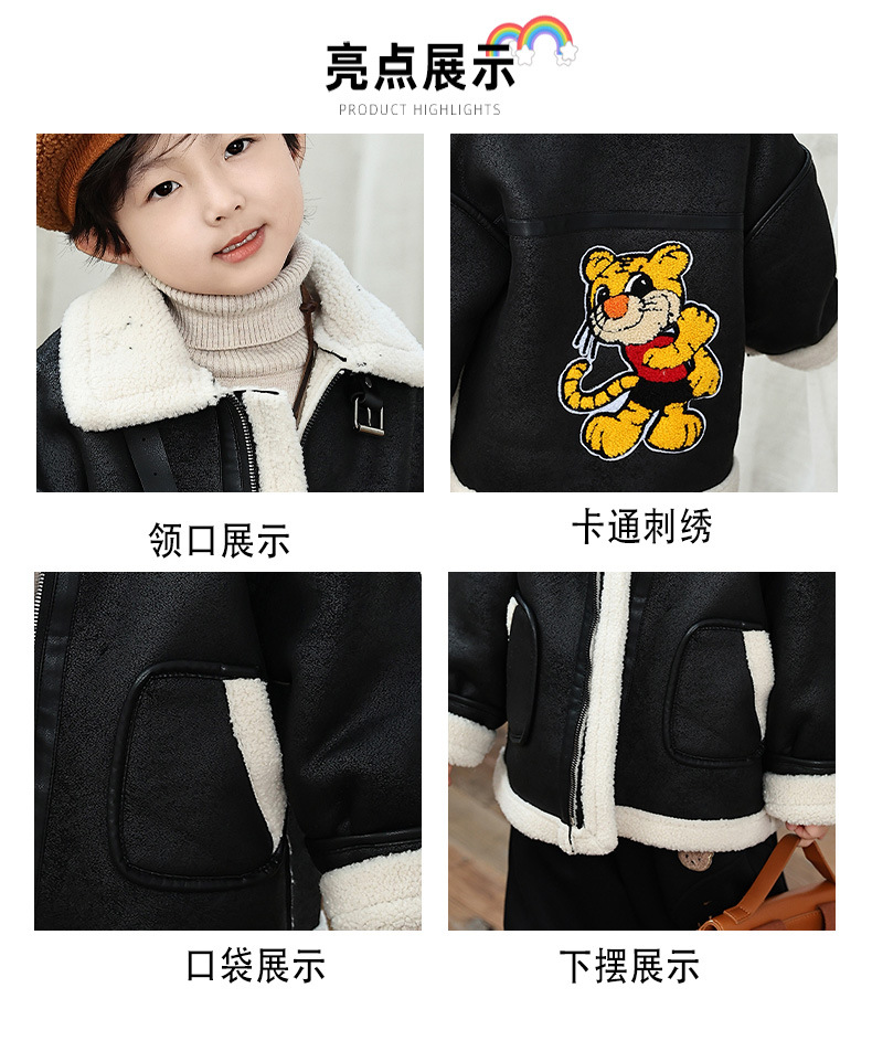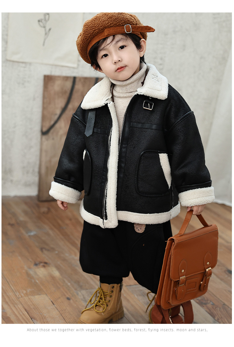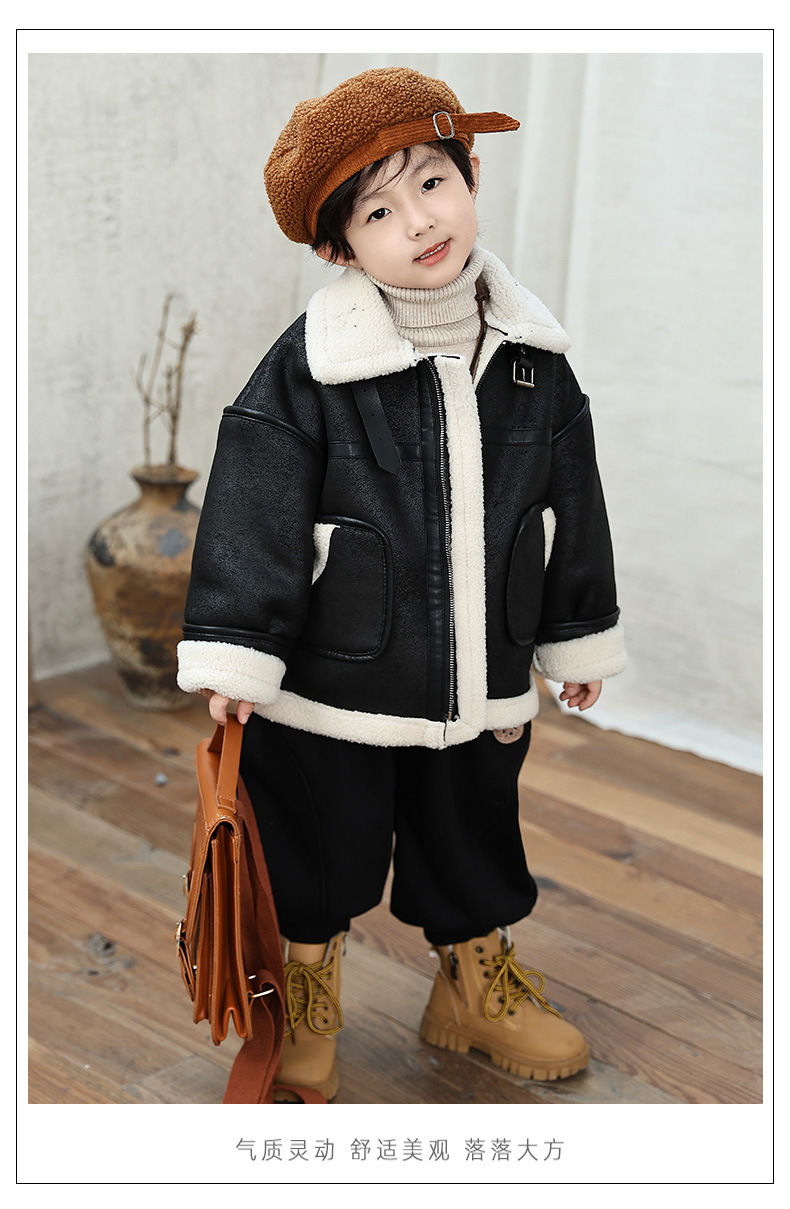 소년 기모 가죽 코트 2024 년 가을과 겨울 새로운 어린이 겨울 모피 한 아기 두꺼운 재킷스토어 가기
