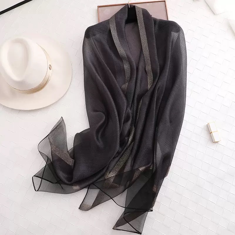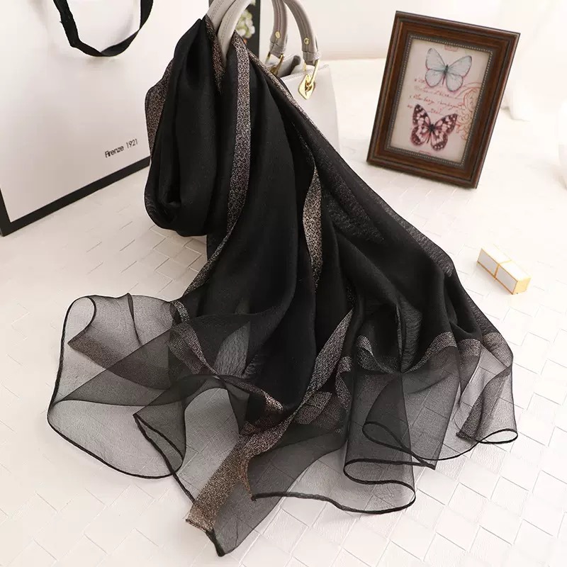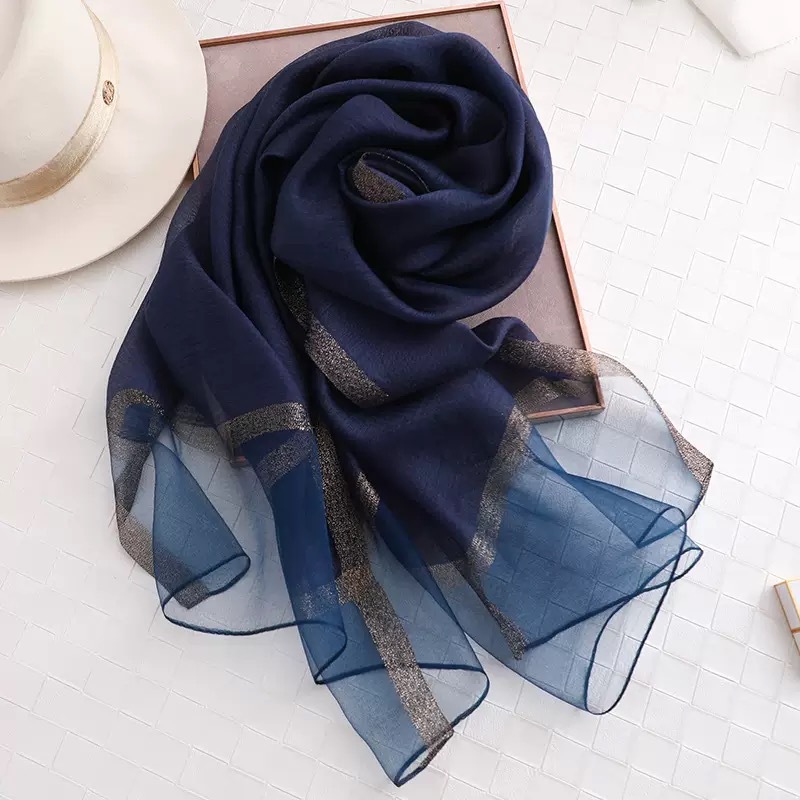 솔리드 컬러 올 매치 여성의 긴 실크 스카프 모조 실크 골드 스팽글 목도리 스카프 하이 엔드 센스 도매스토어 가기